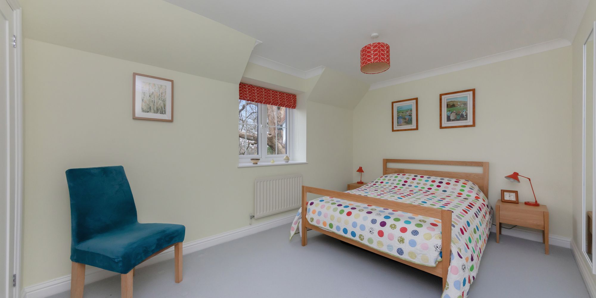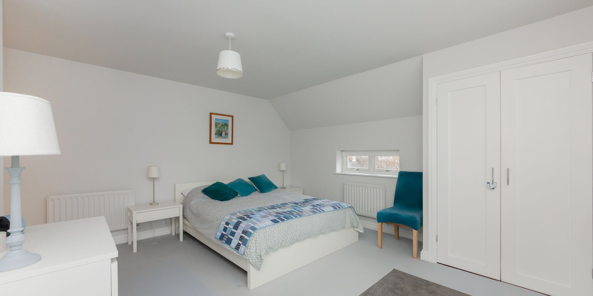 BEDROOM- A generous double room with a window overlooking the rear garden, built-in wardrobe.