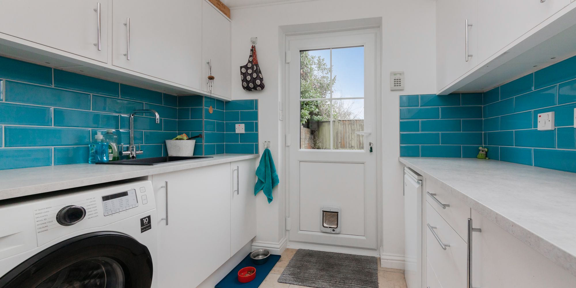 UTILITY ROOM- Fitted units with working surfaces over, black granite composite sink, space for fridge/freezer,/washing machine, door to rear courtyard garden with gated side access.
