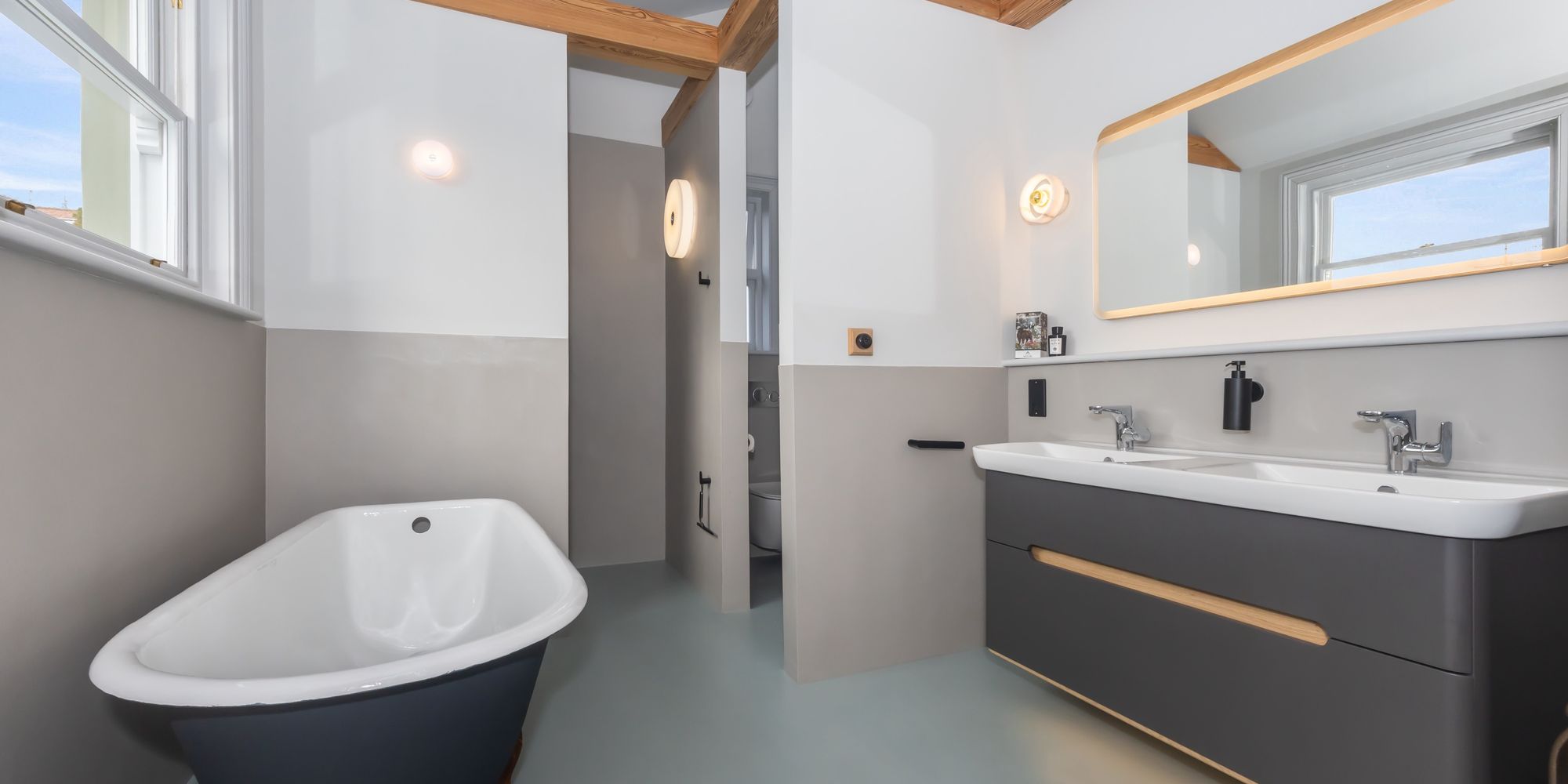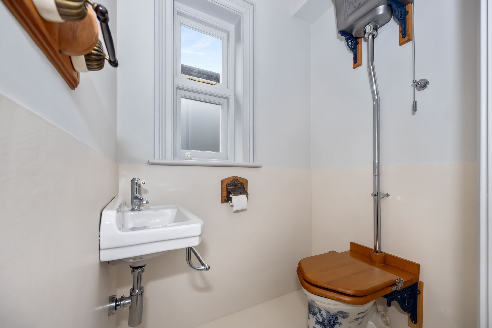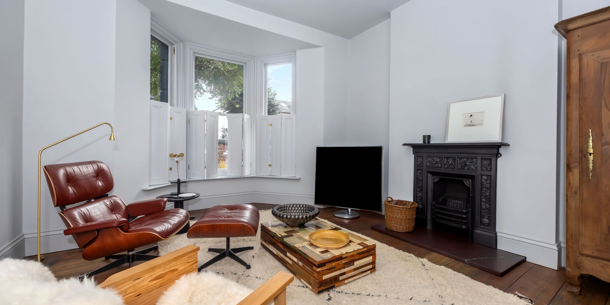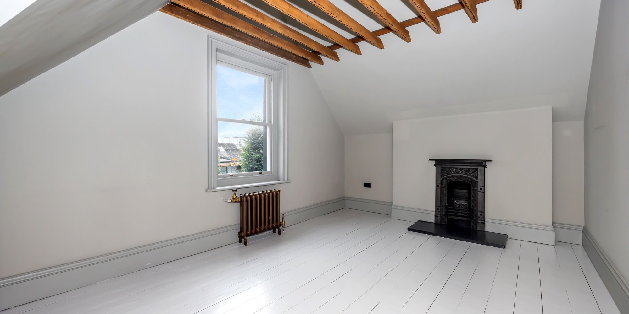 Character elements, such as the reinstated chimneys and six fireplaces, have been tastefully combined with modern touches, like the restored antique cast iron radiators and renovated sash windows fitted with double glazing.