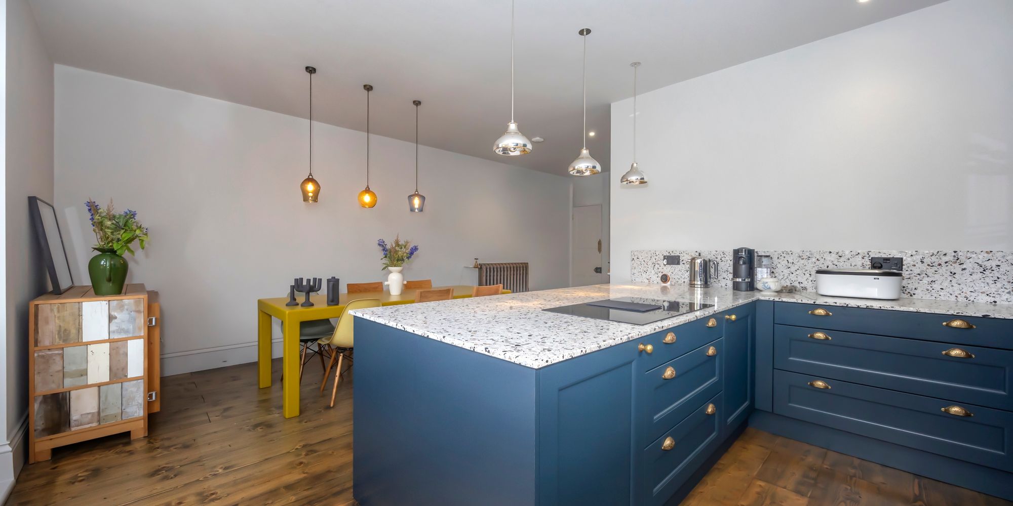 Upon entry, you're welcomed by a spacious through-lounge/dining area at the front, ideal for both entertaining and relaxation. The rear of the home showcases an impressive extension, housing a light-filled, open-plan kitchen with large doors opening onto a private, west-facing garden. The kitchen boasts high-end finishes, including Terrazzo worktops, an ELICA integrated hood induction cooker, Bosch dishwasher, and a frost-free Bosch fridge and freezer. A separate utility room and downstairs W.C. add to the home's practicality, while convenient side access enhances functionality.