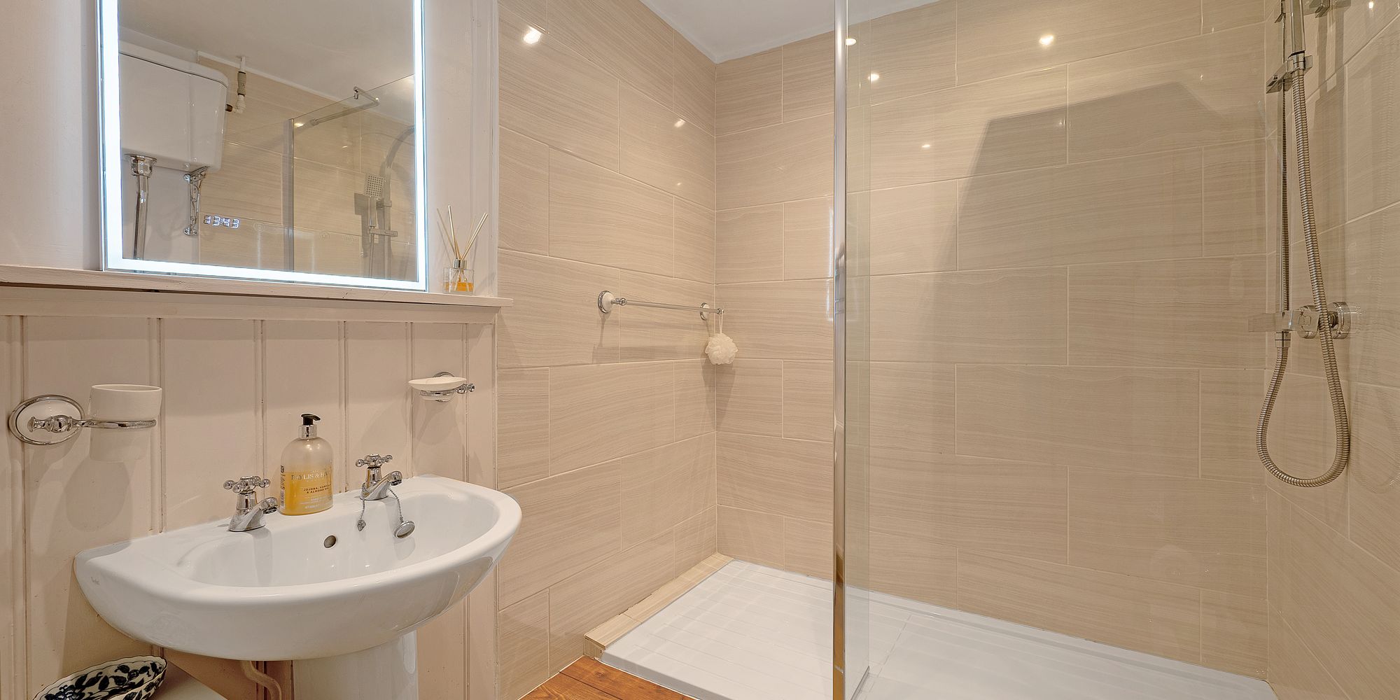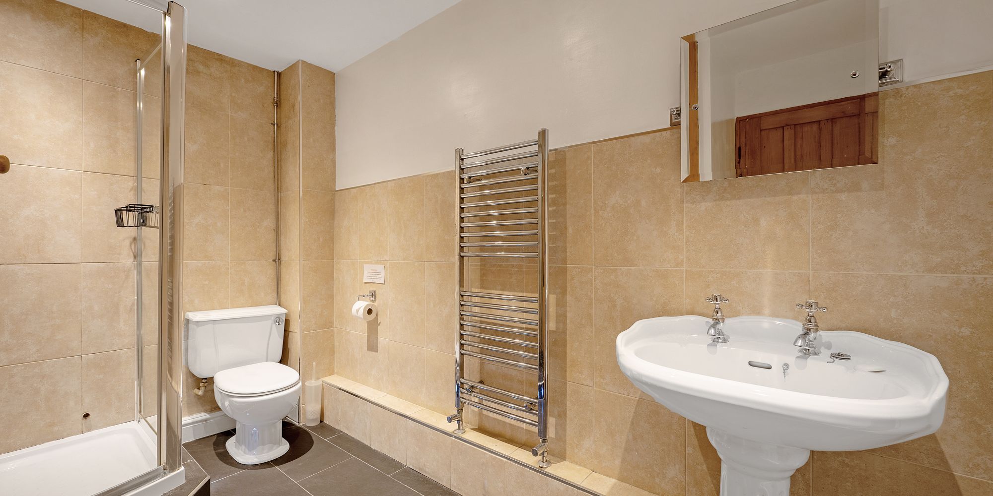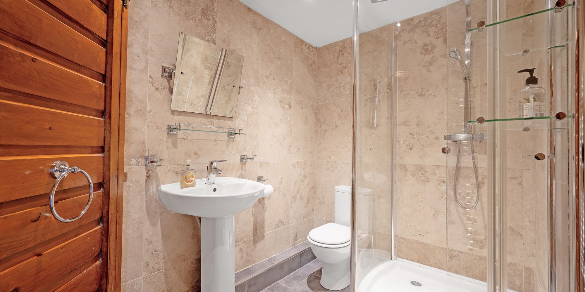 Shower Room- A beautiful modern shower room with shower enclosure, wc and wash hand basin all complimented by modern tiled surrounds.