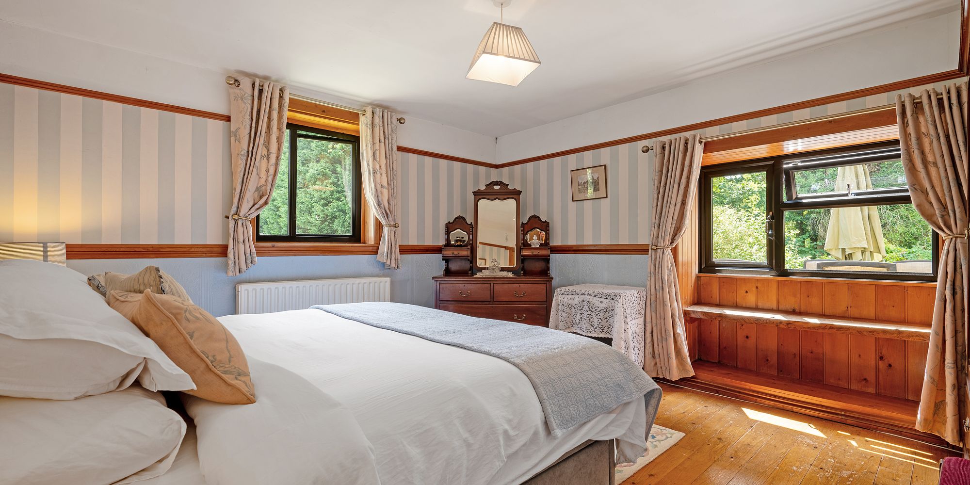Bedroom- A pretty dual aspect double bedroom with exposed floorboards, picture rail and delightful window seat.