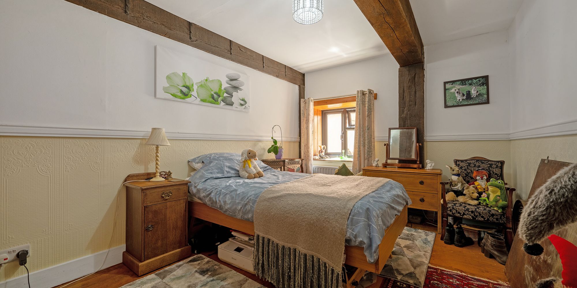 Bedroom- A bedroom full of character with exposed beams and floorboards and enjoying views over the garden