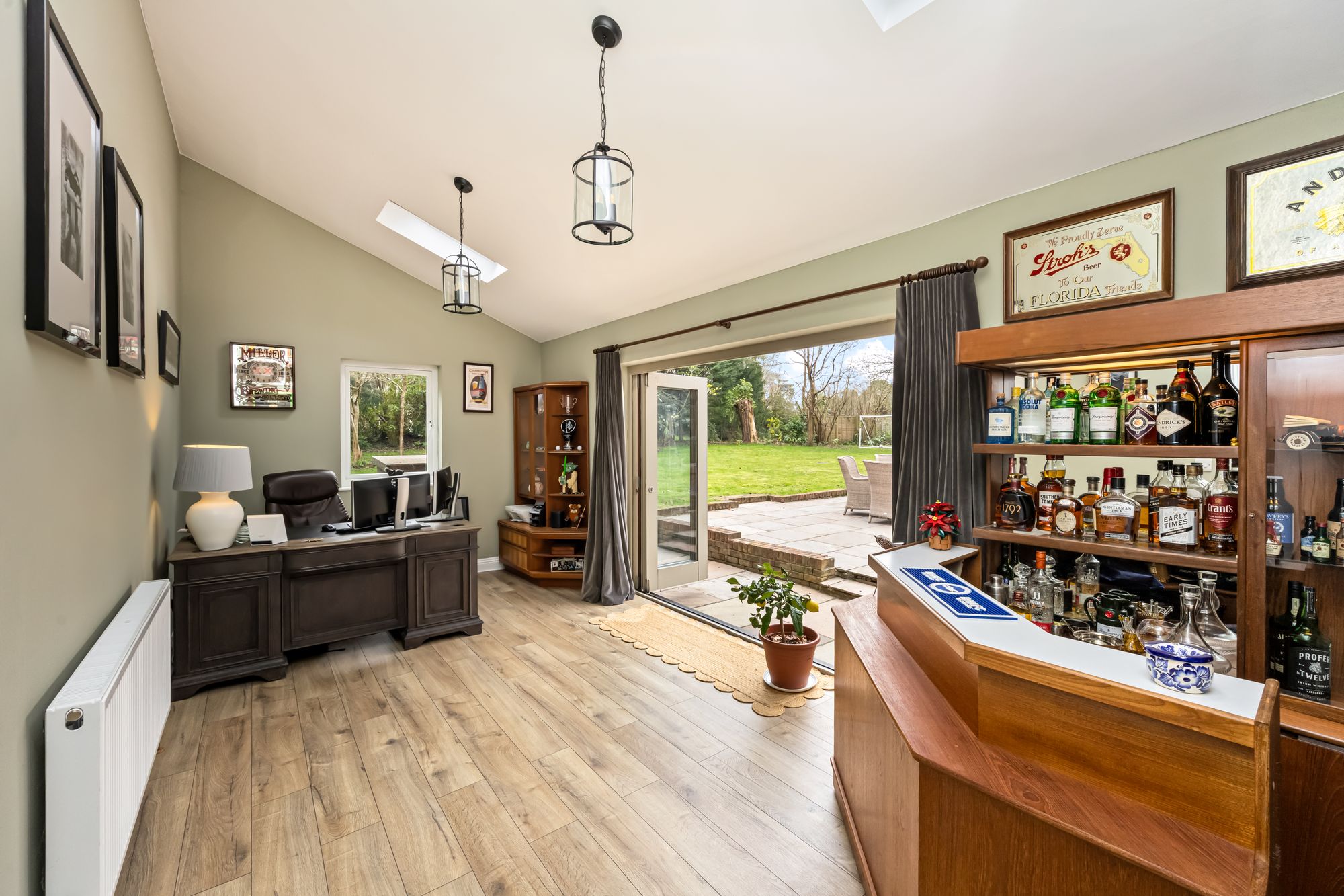 On entering, you are welcomed by a spacious entrance hall with fitted storage for coats and shoes, as well as a separate shower room for added practicality. The stunning refitted kitchen breakfast room features ample wall and base units, superb freestanding island , and a separate utility room with its own access to the front of the house. The formal dining room is ideal for entertaining, while the bright living room boasts a wood-burning stove, access to the garden, and a fitted storage cupboard. There is also a separate study with bi-fold doors, and a further reception room currently used as a snug, featuring large picturesque windows (this space is versatile and could serve as a fourth bedroom if desired).
