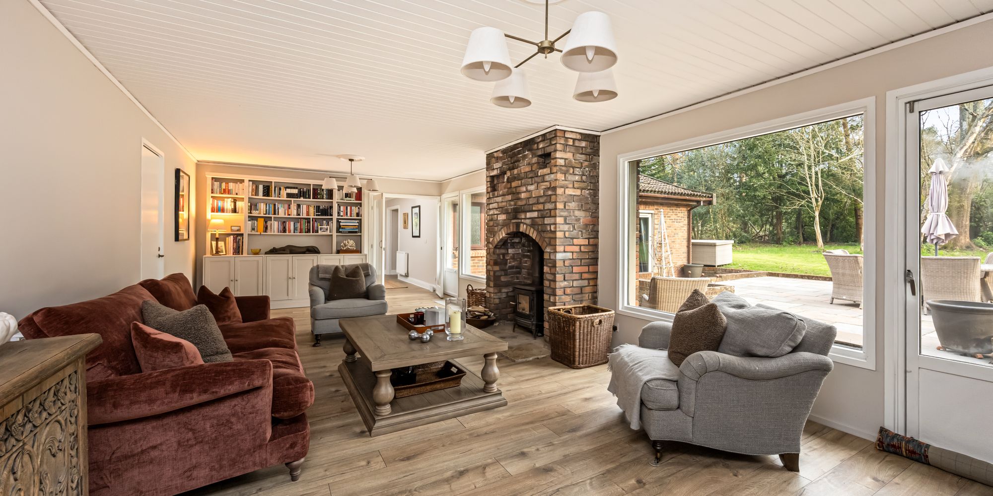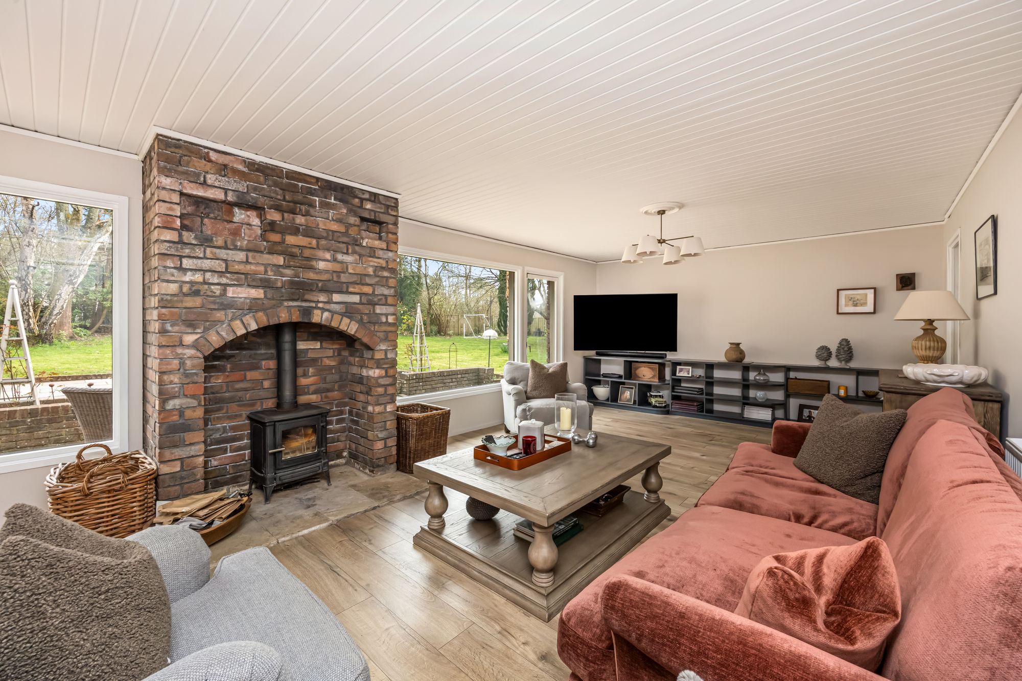 - Bright and spacious living room with woodburning stove