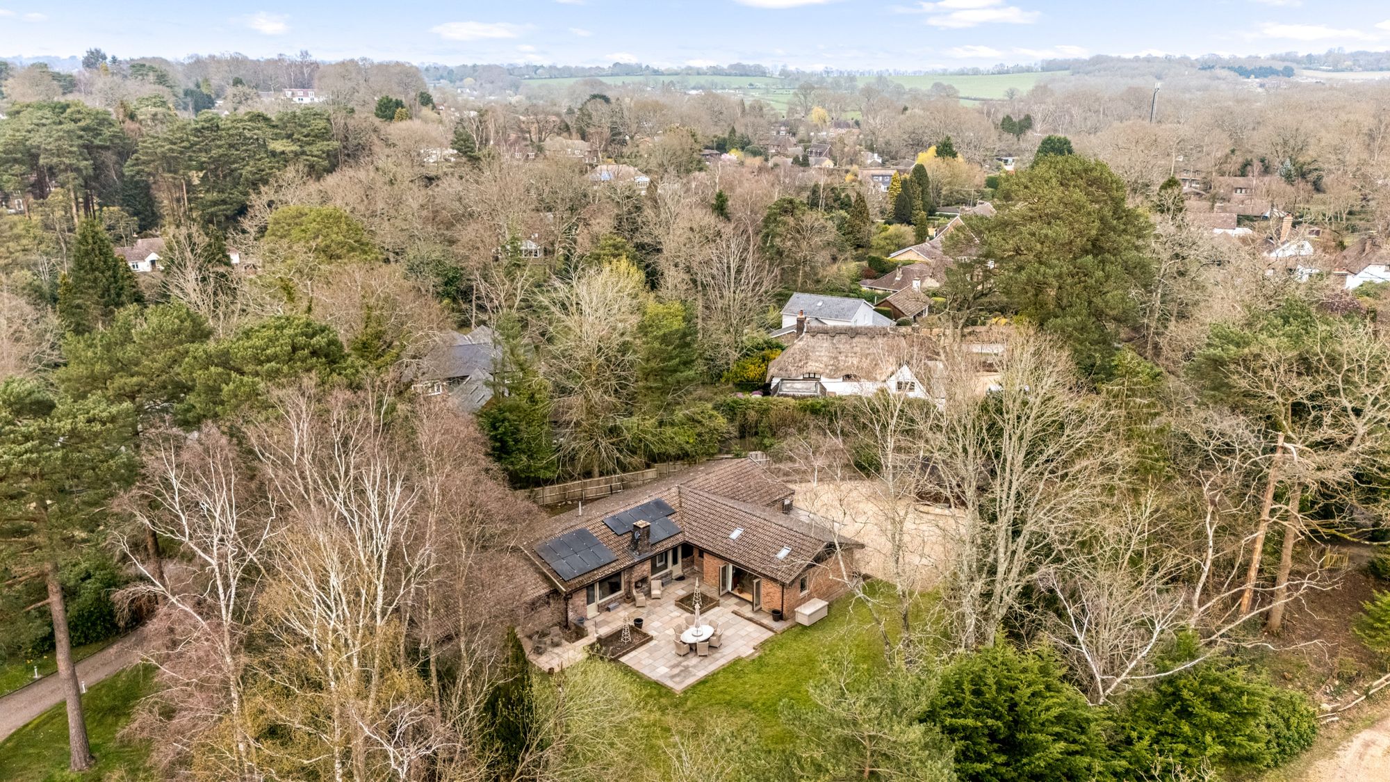 The mature gardens wrap around the entire property, offering a wonderful sense of privacy and space. The generous lawned areas are interspersed with mature trees and established shrubs, creating a tranquil environment for relaxation and play. A large patio area is perfect for alfresco dining and summer entertaining which is South facing, with direct access from the main living areas of the house. The grounds include a dedicated vegetable patch area for those keen on gardening, as well as access on to Fir Tree Lane for added convenience. The combination of the extensive plot, mature planting, and versatile outbuilding ensures this home is perfectly equipped for family life in a sought-after village setting. With scope to further enhance the property (subject to planning), this is a rare opportunity to secure a substantial home with exceptional outside space in West Chiltington.