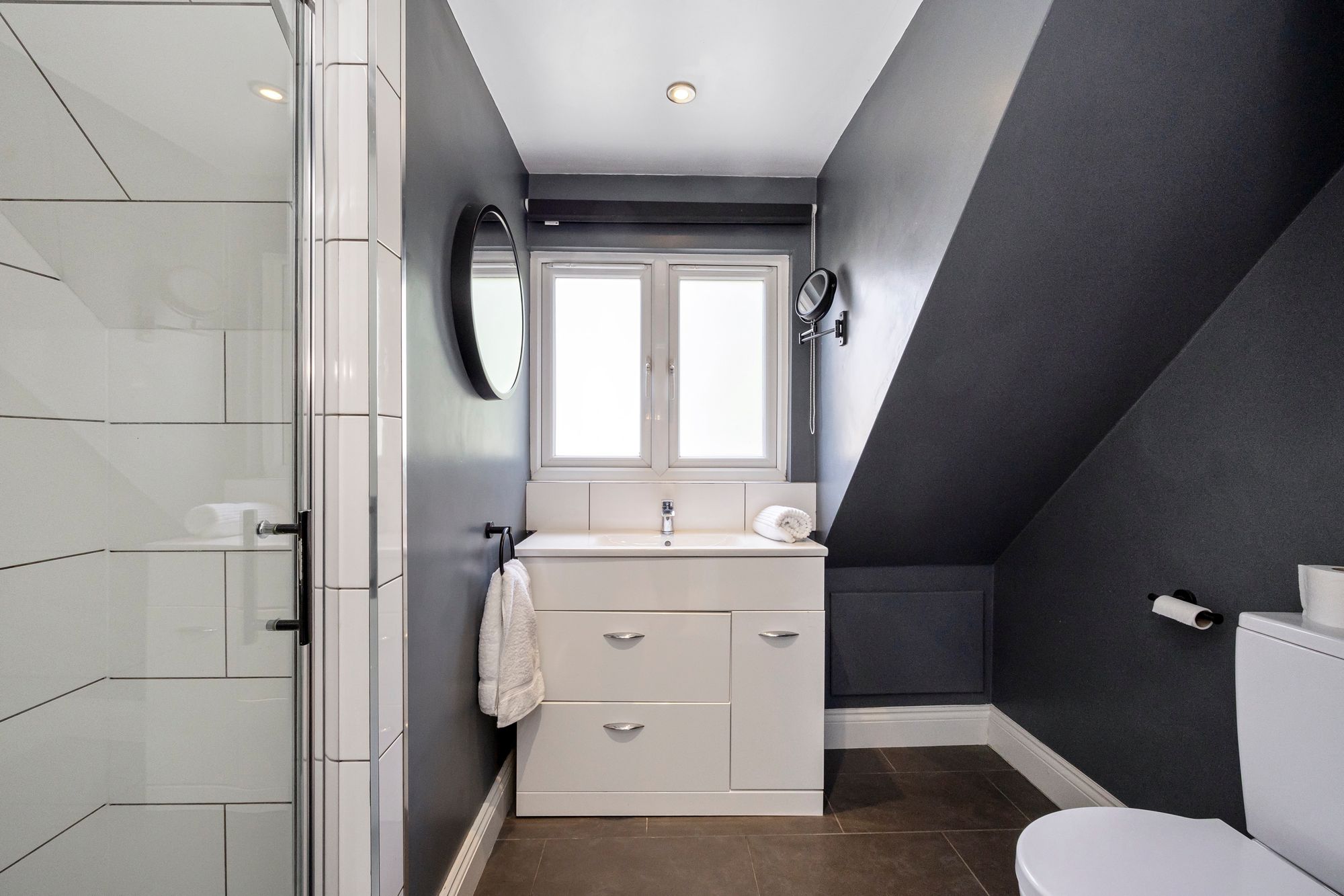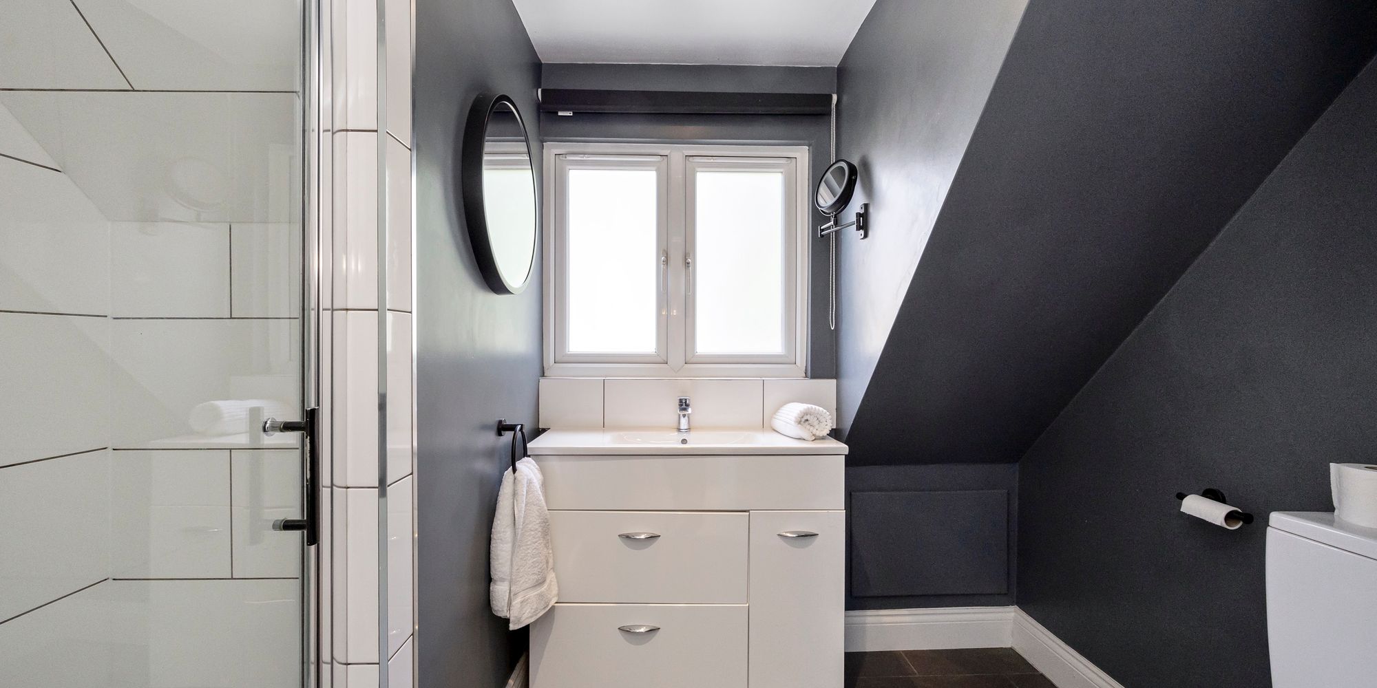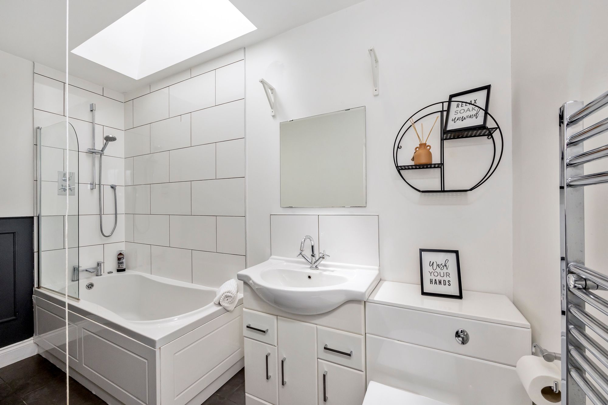 The first floor accommodates five generous double bedrooms with bedrooms one and two benefitting from an en-suite bathroom and shower room respectively whilst the remainder are serviced by a sleek family bathroom featuring a back to wall freestanding bath tub, separate walk-in rainfall shower, heated towel rail, vanity mirror and sink unit with under basin storage along with all essentials.