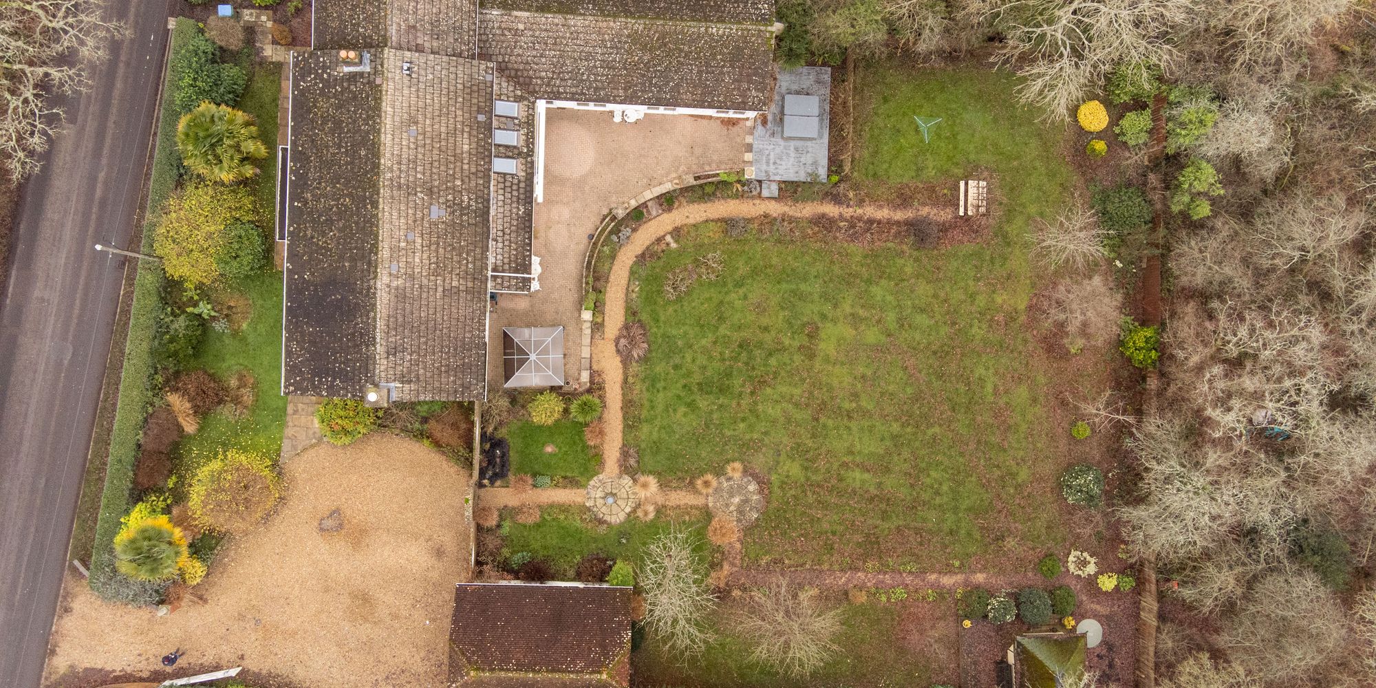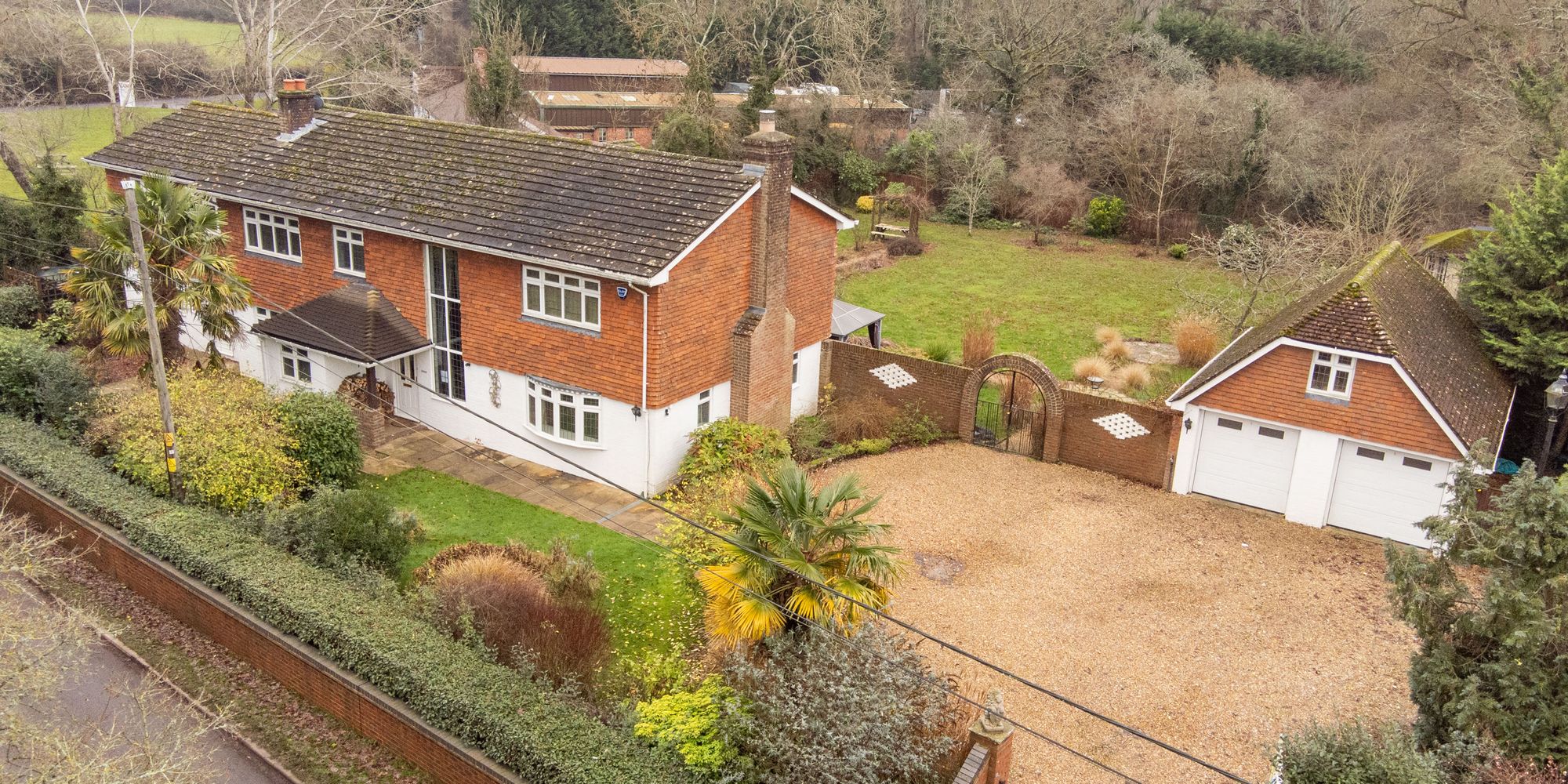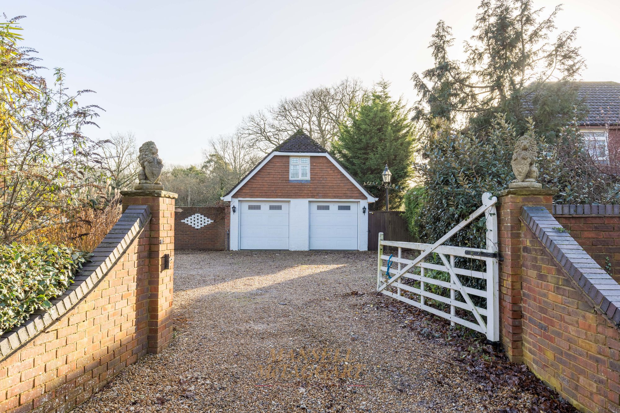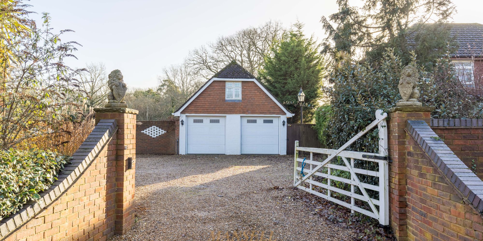 - Driveway with detached double garage