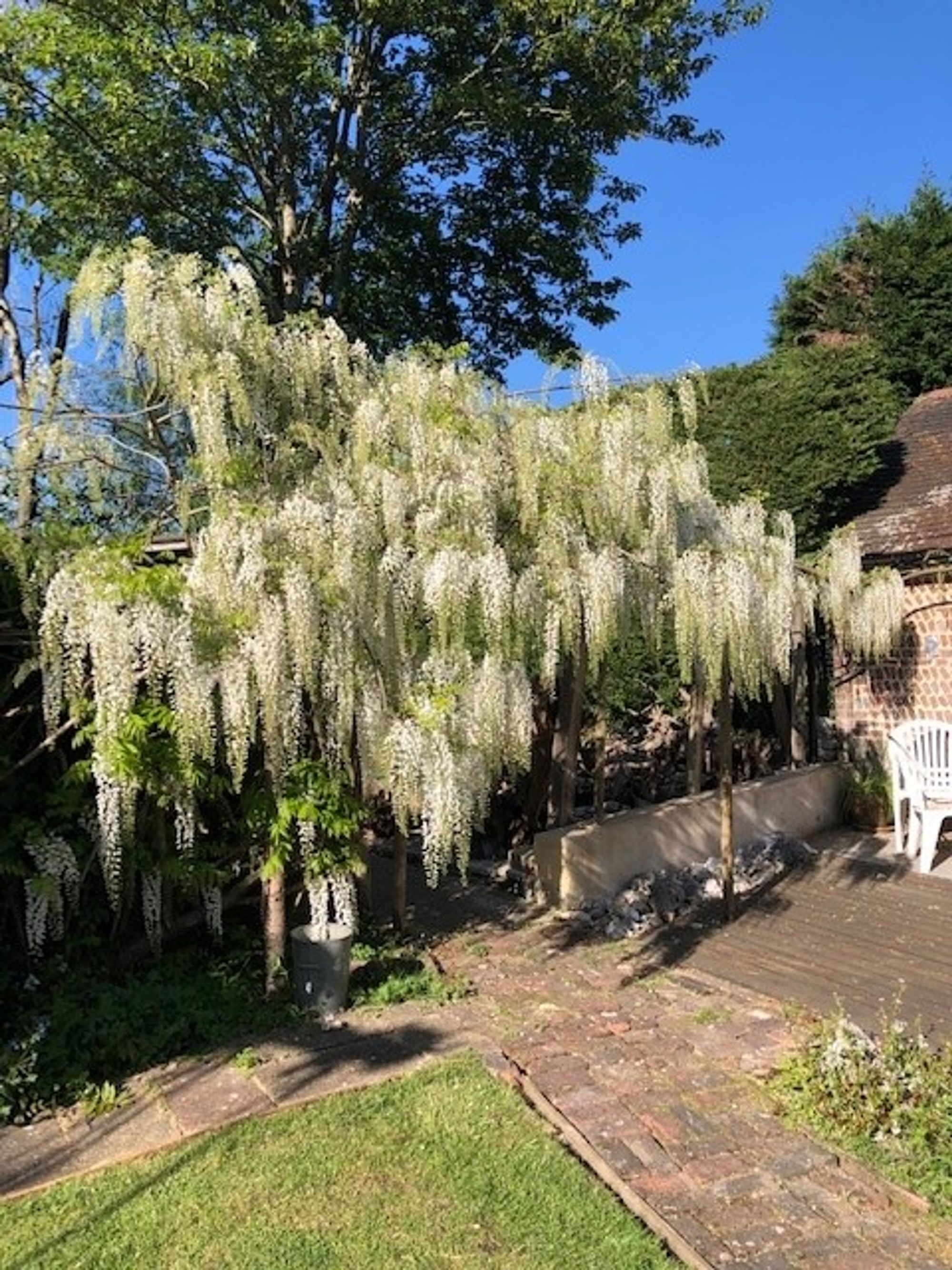 - Mature gardens with wisteria, fruit tree, shrubs, flower beds and more