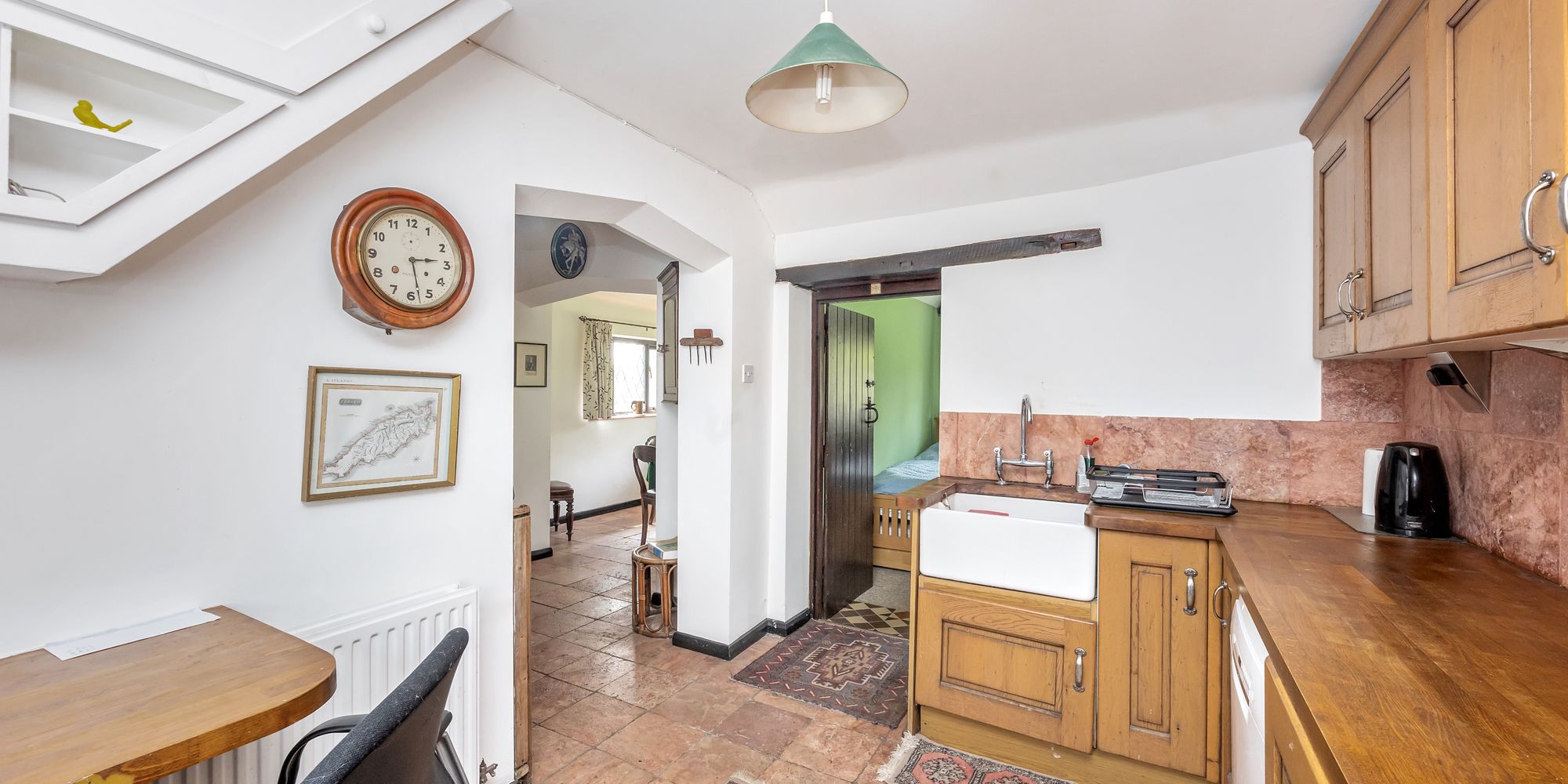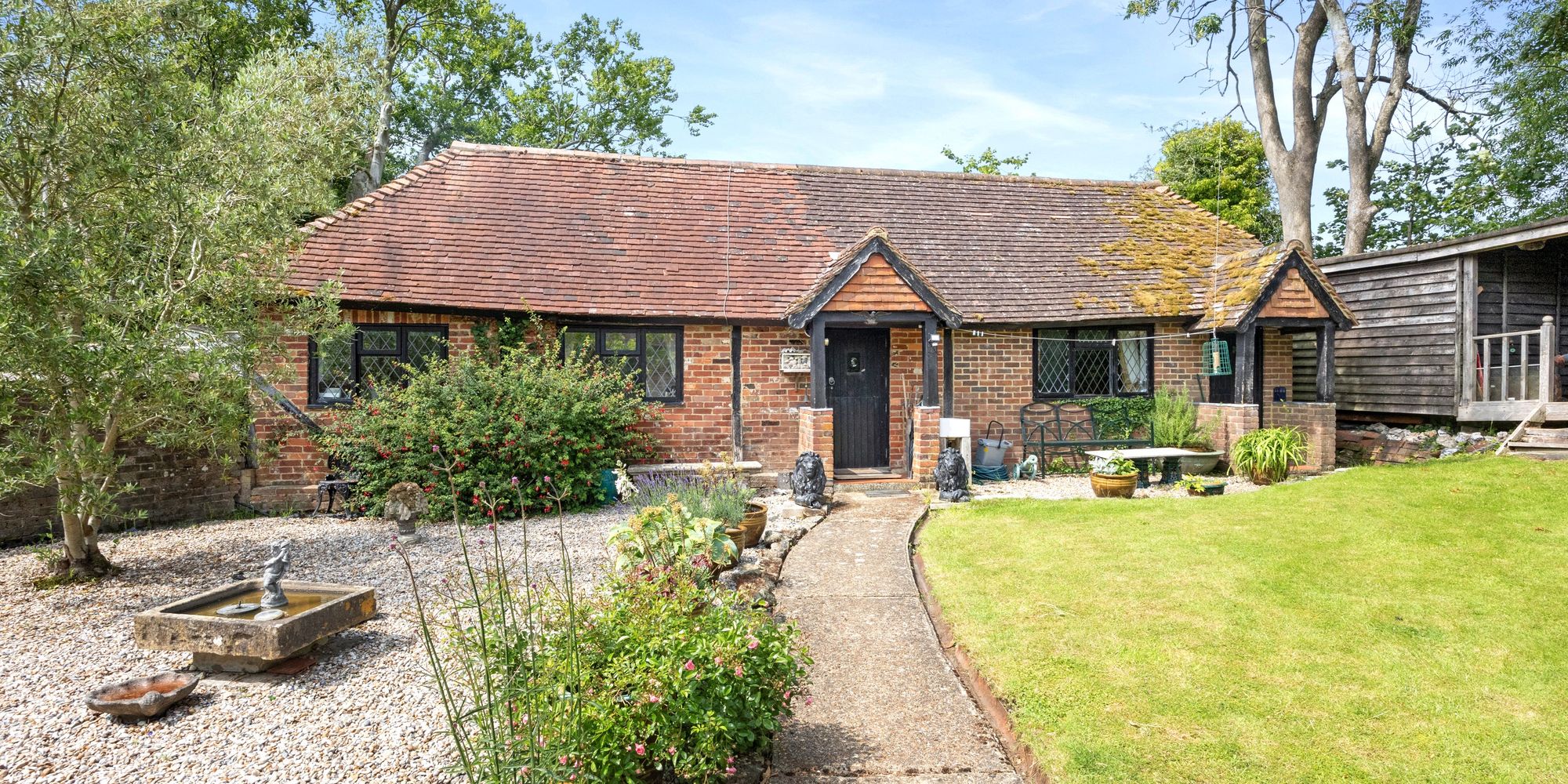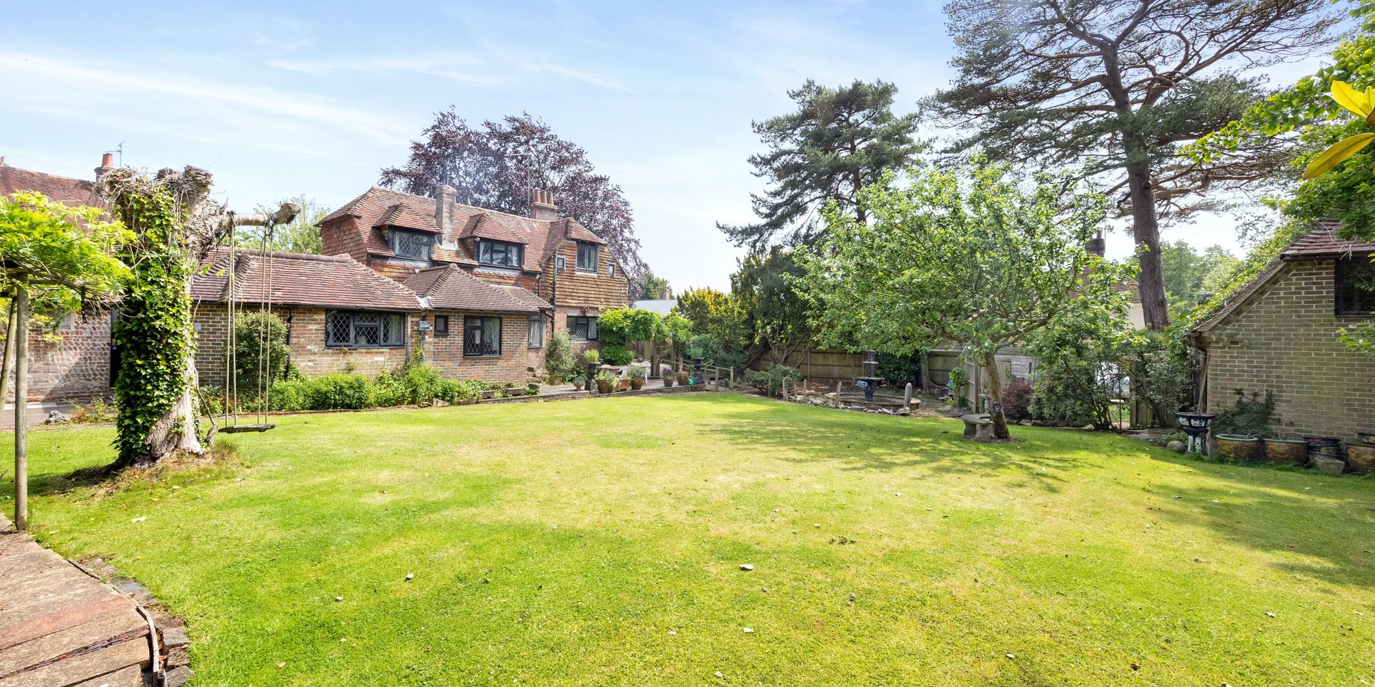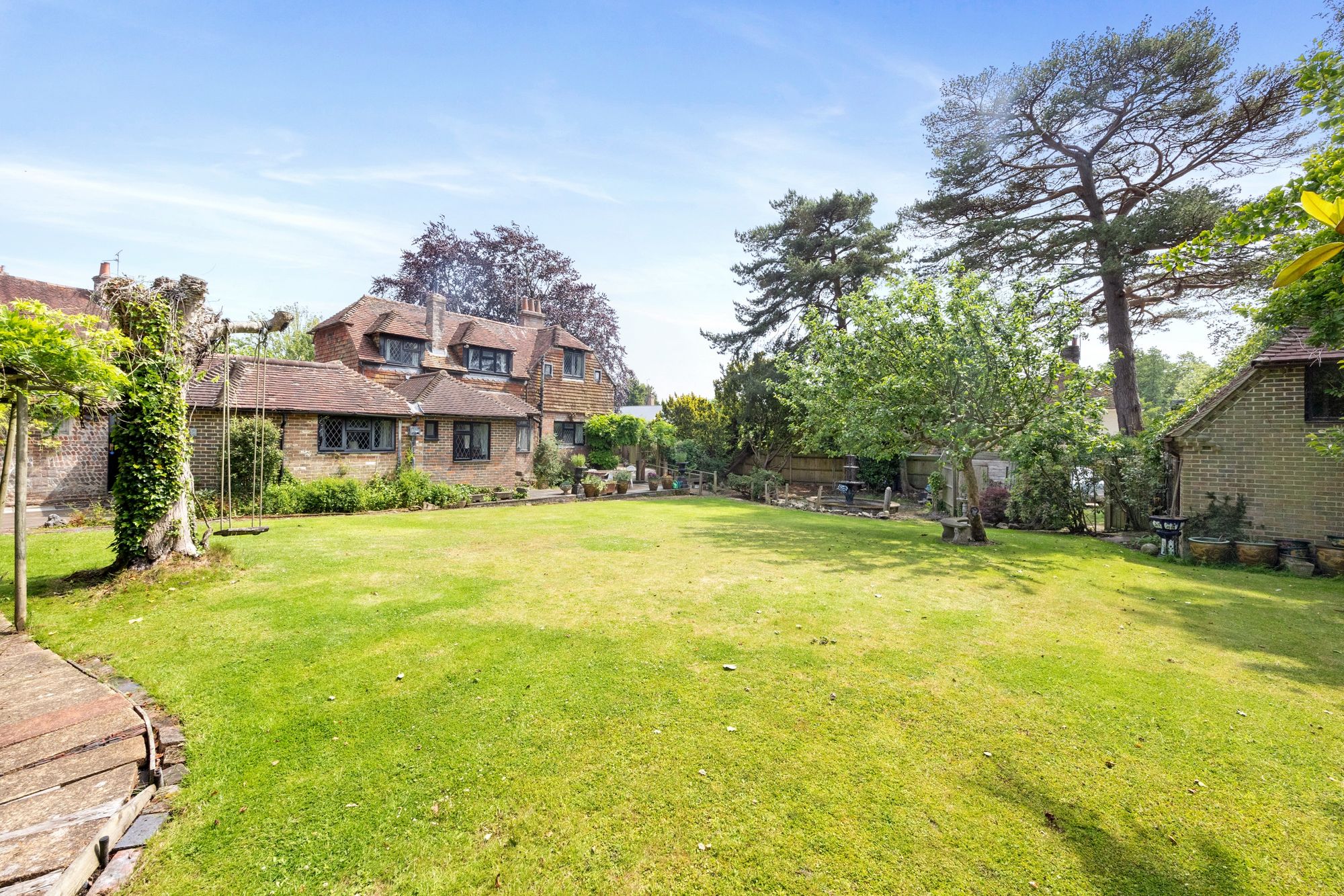 An adjoining secluded, self-contained cottage, The Apple House, set discreetly in its own secret garden. Ideal for an individual occupier, student accommodation or to generate an income from letting. Includes a further area of garden with mature apple tree, small pond and a double-storey garage with lapsed planning permission to convert to residential use.