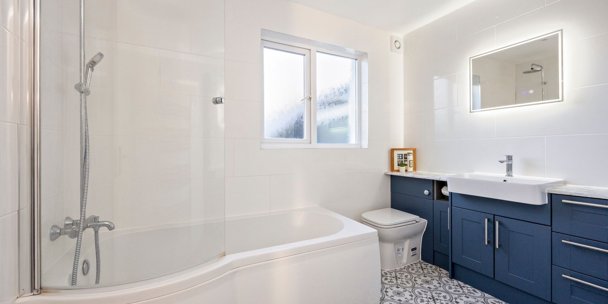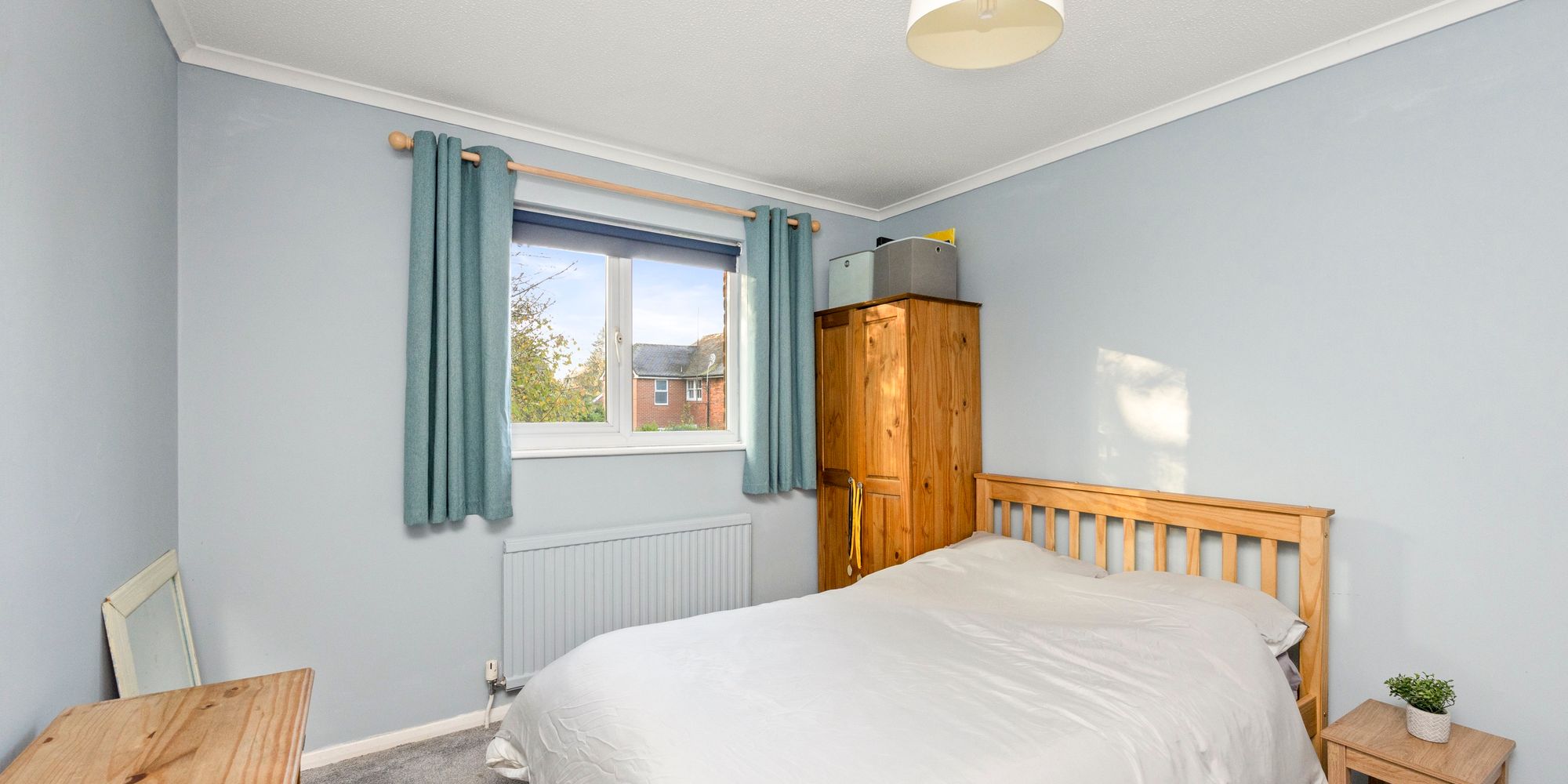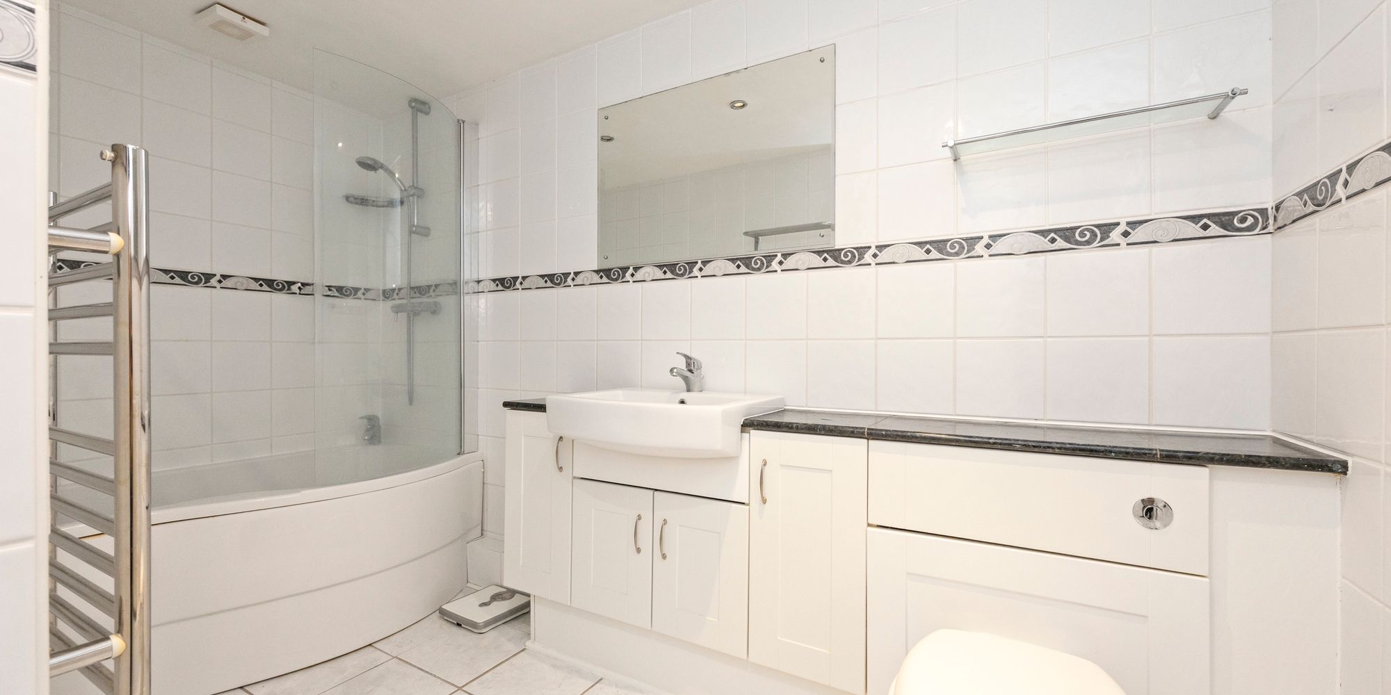 Ascending the main staircase, set beneath Art Deco–style balustrades and complemented by a feature window, the first floor presents four well-proportioned bedrooms. The principal bedroom includes fitted wardrobes and an en-suite. The main family bathroom has been recently refitted to a high standard.