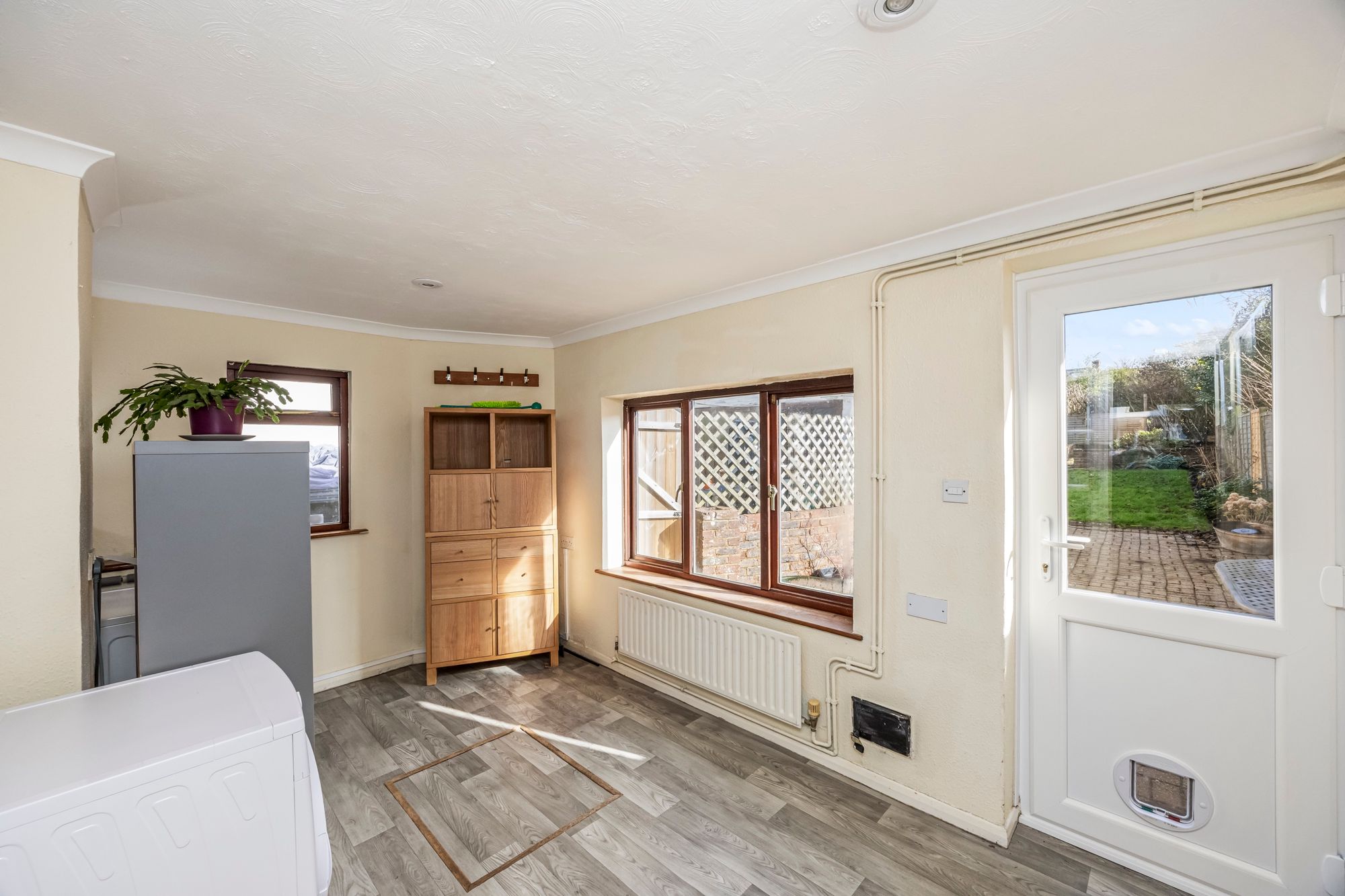 The rear of the property has been extended to include a shower room and space/plumbing for a washing machine and space for a tumble drier.