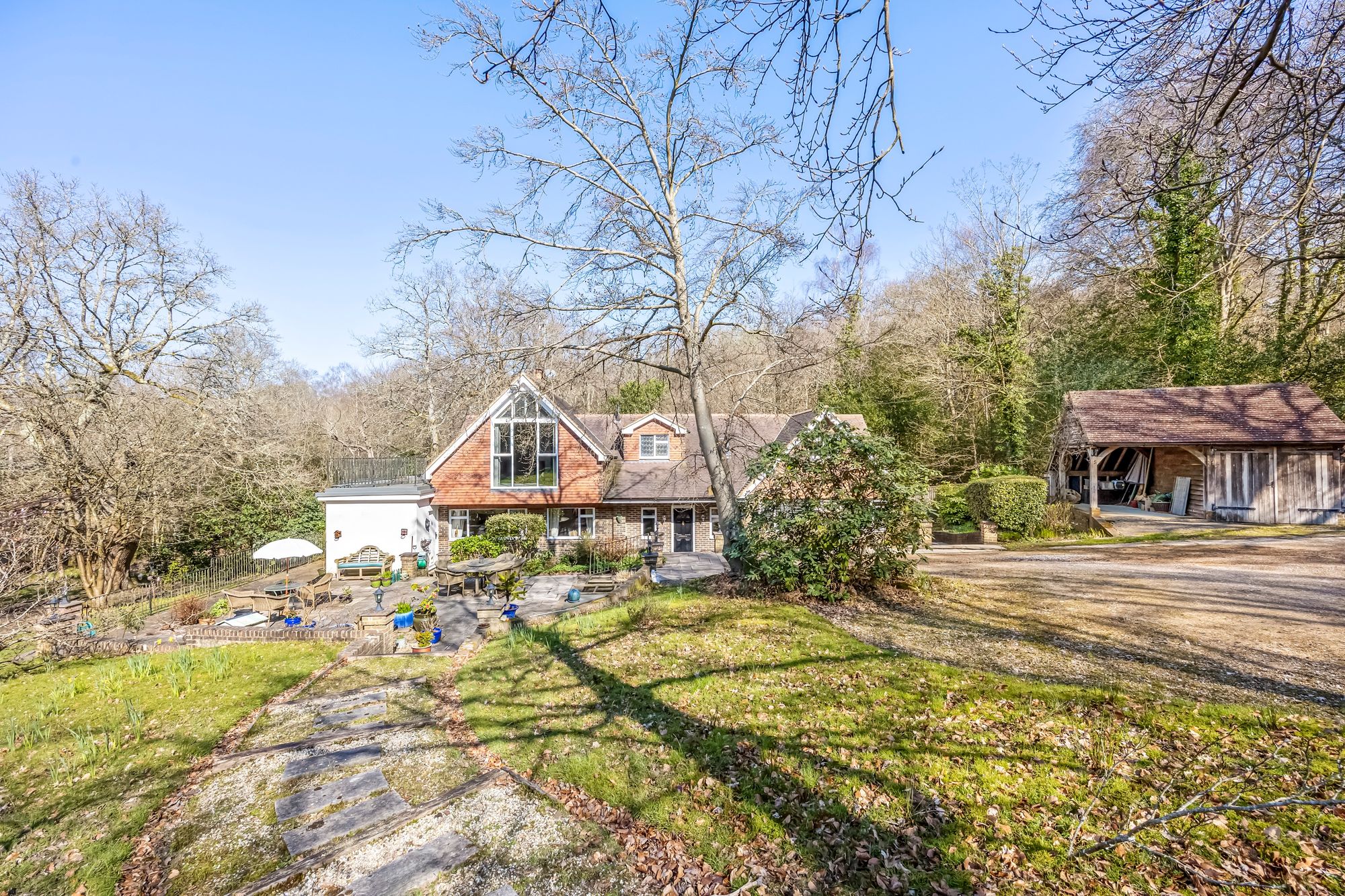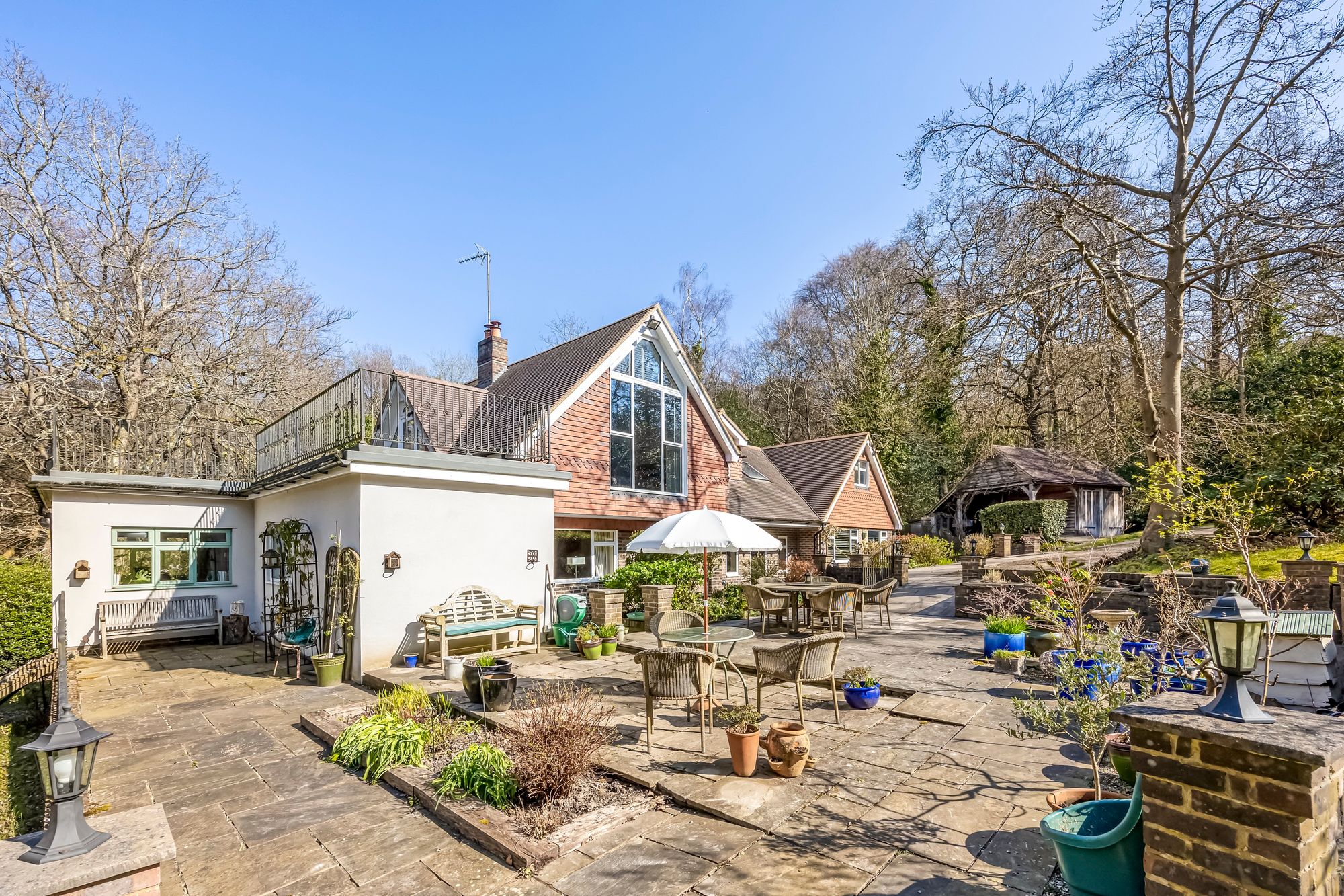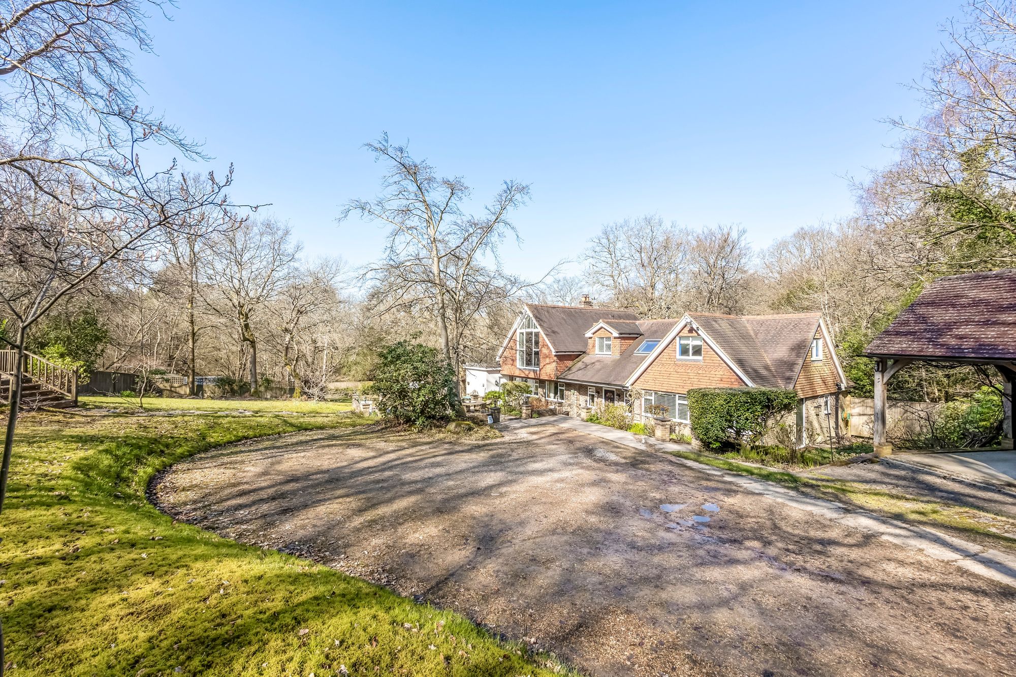 Surrounded by the breathtaking Ashdown Forest a fabulous 4 bedroom (4 bath/shower rooms) detached house occupying gardens and grounds extending in excess of 1.5 acres located in an idyllic and peaceful position. This fine country house has been beautifully extended and improved and provides versatile accommodation extending to 3,264 sq ft and could incorporate a self-contained annex ideal for a relative or holiday let potential. The grounds provide a stunning and secluded backdrop and surround the house on all sides laid predominately to rolling lawn with an area of light woodland, the whole immediately adjoining the forest with fine scenic walks, the inspiration behind A.A Milne’s Winne The Pooh books. The house is approached via twin electronic gates which lead to a large parking area and a detached double garage. The light and spacious accommodation extends to 3,236 sq ft and comprises in brief on the ground floor a wide reception hall, a cloakroom, a separate study, a sitting room with wood burner, a separate dining room with glazed double doors opening to the gardens, a stunning open plan and triple aspect kitchen/breakfast room with fine views across the forest and a separate utility room. Also on the ground and with a separate entrance is a office/potential annexe with bedroom, dressing area, en-suite shower and a sitting area/large home office. The first floor has a fabulous vaulted master bedroom with full height glazing overlooking the grounds, a large roof terrace, wood burner and en-suite bath/shower room, a guest bedroom with en-suite, a further double bedroom and a family bathroom. Within the grounds there are a range of sheds and storage buildings as well as a fully enclosed cottage garden with greenhouse. EPC Band D.
