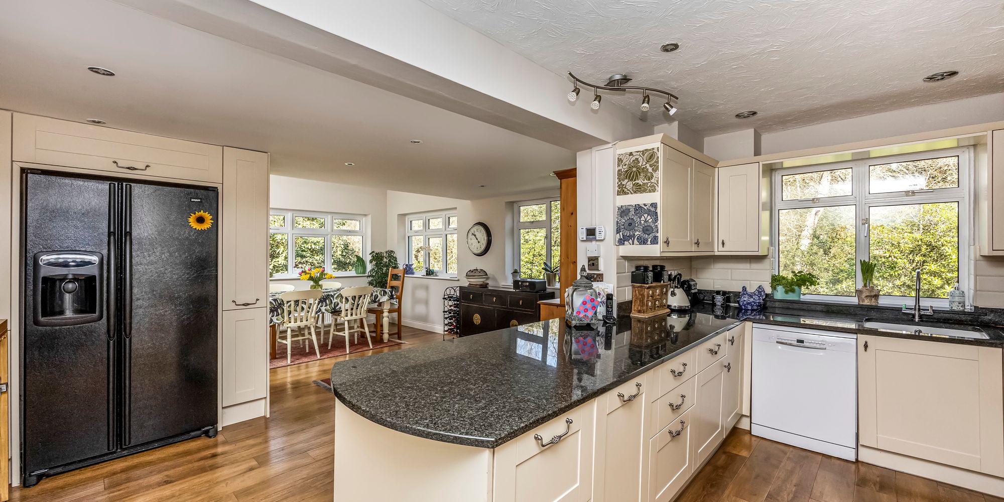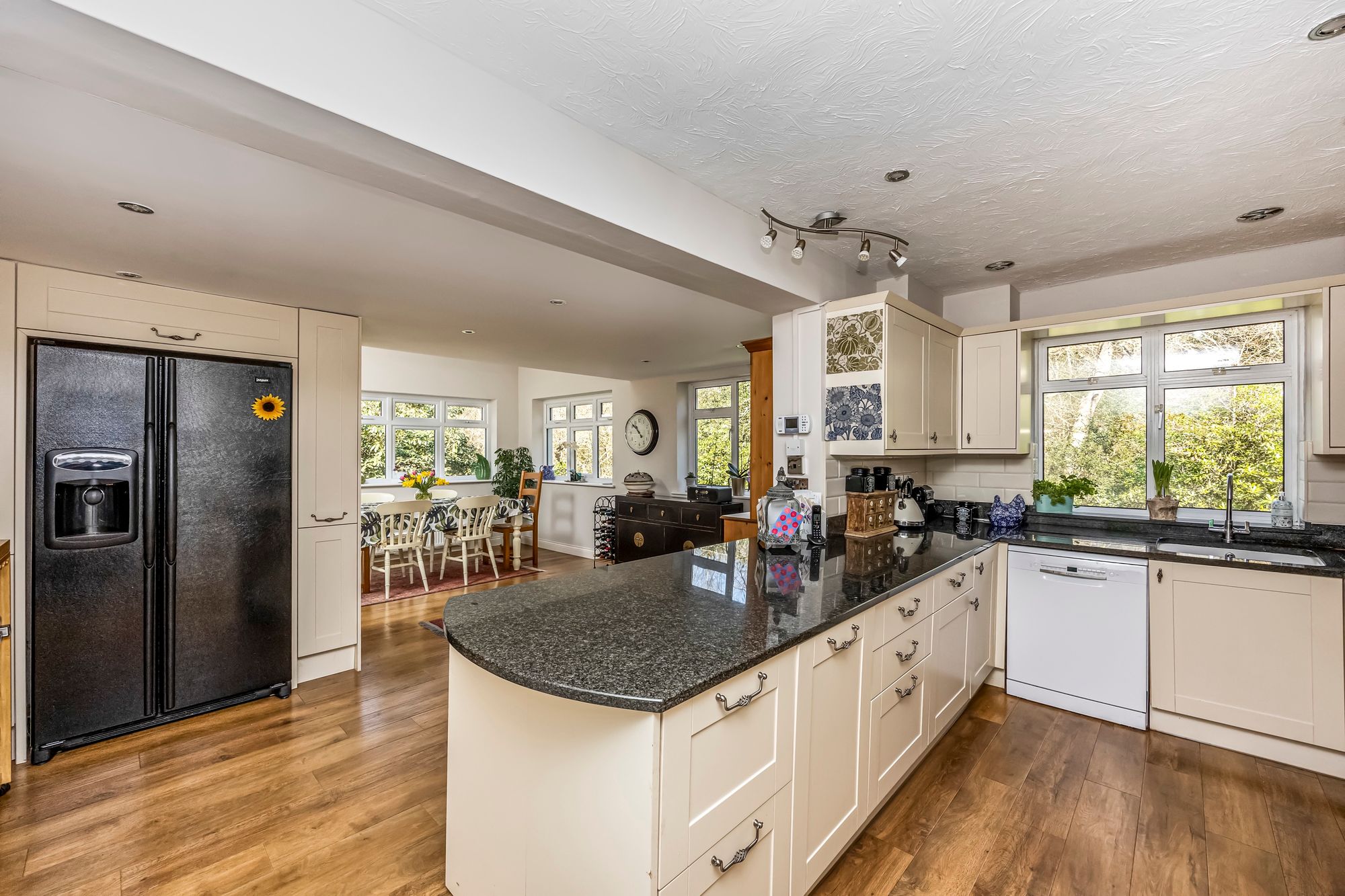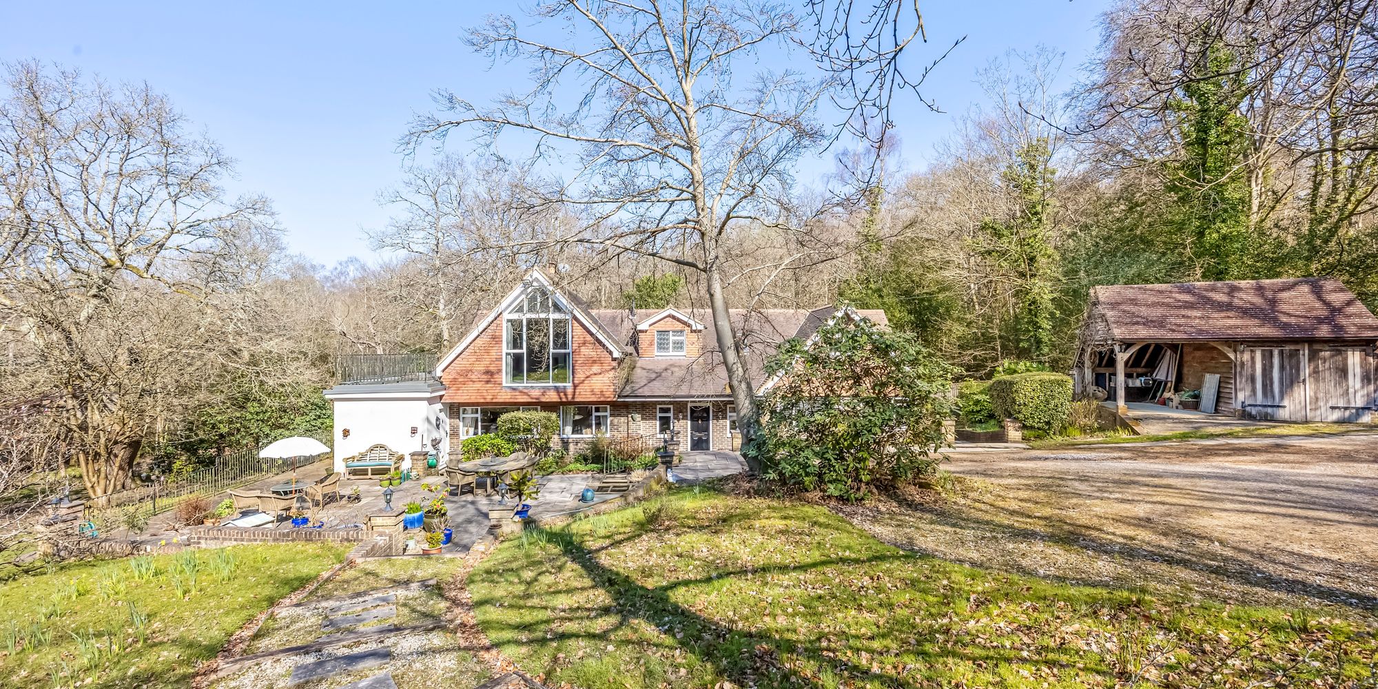 Surrounded by the breathtaking Ashdown Forest a fabulous 4 bedroom (4 bath/shower rooms) detached house occupying gardens and grounds extending in excess of 1.5 acres located in an idyllic and peaceful position. This fine country house has been beautifully extended and improved and provides versatile accommodation extending to 3,264 sq ft and could incorporate a self-contained annex ideal for a relative or holiday let potential. The grounds provide a stunning and secluded backdrop and surround the house on all sides laid predominately to rolling lawn with an area of light woodland, the whole immediately adjoining the forest with fine scenic walks, the inspiration behind A.A Milne’s Winne The Pooh books. The house is approached via twin electronic gates which lead to a large parking area and a detached double garage. The light and spacious accommodation extends to 3,236 sq ft and comprises in brief on the ground floor a wide reception hall, a cloakroom, a separate study, a sitting room with wood burner, a separate dining room with glazed double doors opening to the gardens, a stunning open plan and triple aspect kitchen/breakfast room with fine views across the forest and a separate utility room. Also on the ground and with a separate entrance is a office/potential annexe with bedroom, dressing area, en-suite shower and a sitting area/large home office. The first floor has a fabulous vaulted master bedroom with full height glazing overlooking the grounds, a large roof terrace, wood burner and en-suite bath/shower room, a guest bedroom with en-suite, a further double bedroom and a family bathroom. Within the grounds there are a range of sheds and storage buildings as well as a fully enclosed cottage garden with greenhouse. EPC Band D.