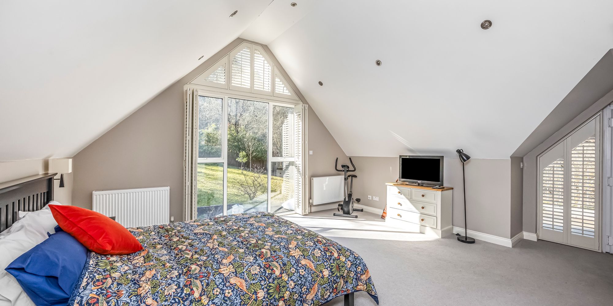- Stunning vaulted master bedroom with en-suite, built-in wardrobes and large private balcony with views across the forest