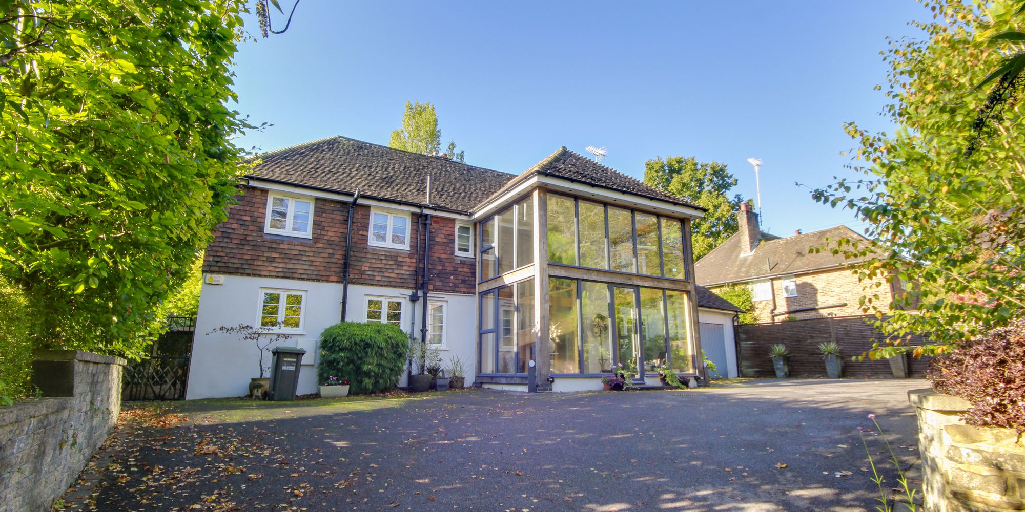 OUTSIDE: The property is approached over a PRIVATE DRIVEWAY with plenty of parking for several vehicles leading up to the INTEGRAL GARAGE (partially converted into a gym) with plenty of room to build an additional garage if required (STPP).