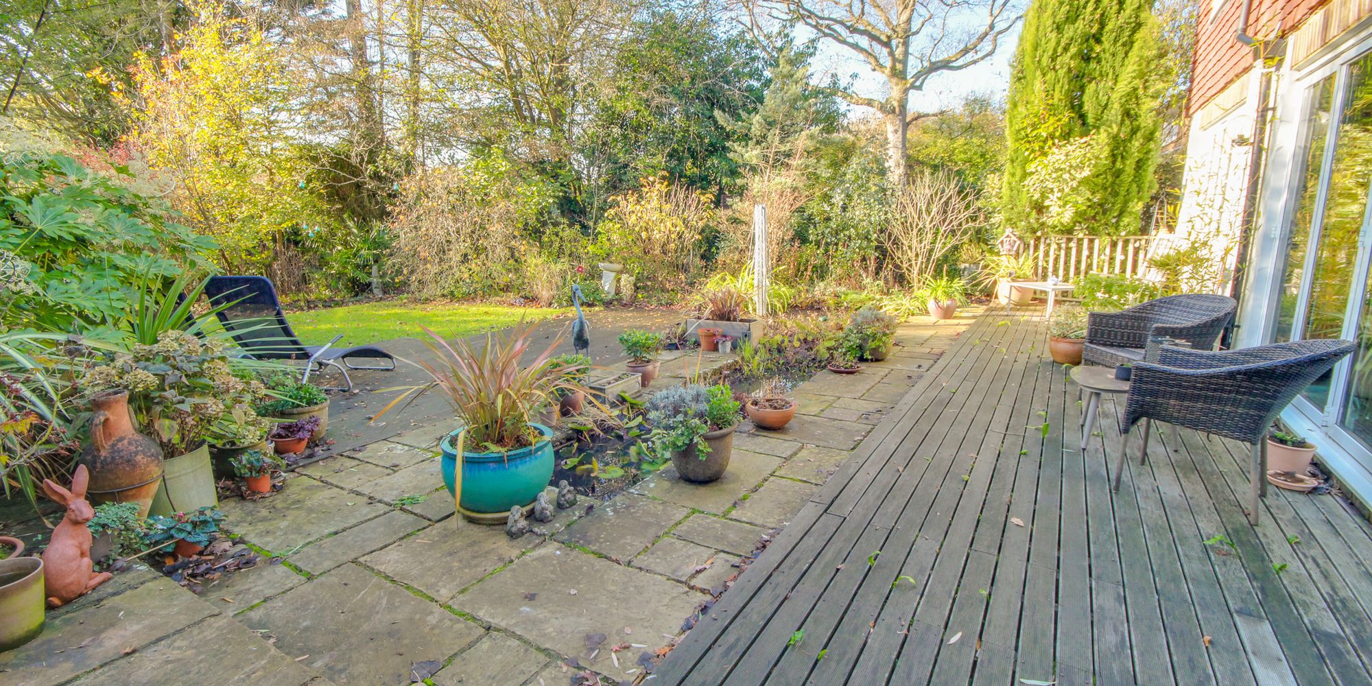 The REAR GARDEN measures approximately 200' x 60' which has been beautifully laid out, just as the house, with several well-maintained and individual areas to provide a higher degree of privacy. Adjoining the rear of the house is a FULL WIDTH SOUTH-FACING TERRACE which leads onto the LAWNS with planted beds, a productive VEGETABLE GARDEN and numerous shrubs. The plot is fully enclosed by fencing and provides almost complete privacy from neighbouring properties whilst extending to 0.4 ACRES in all.