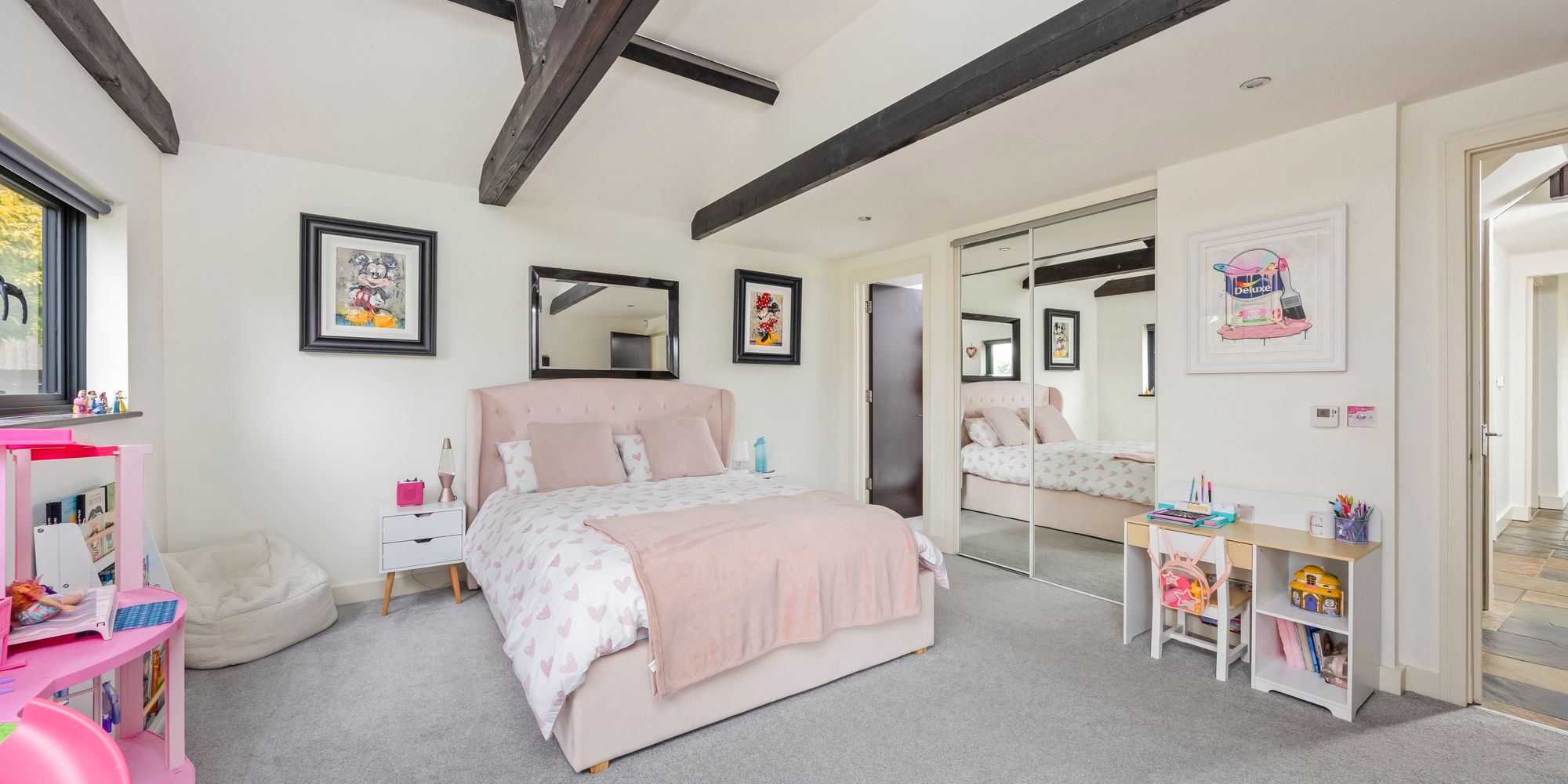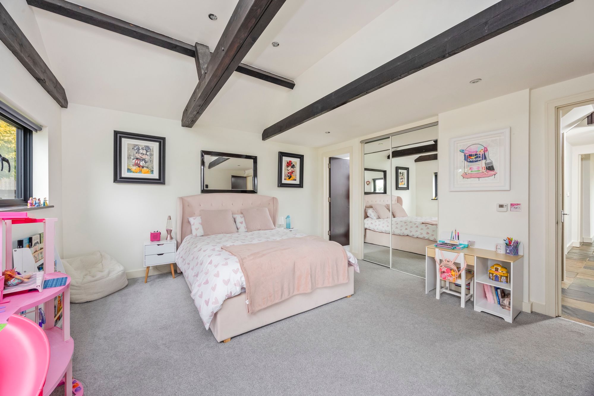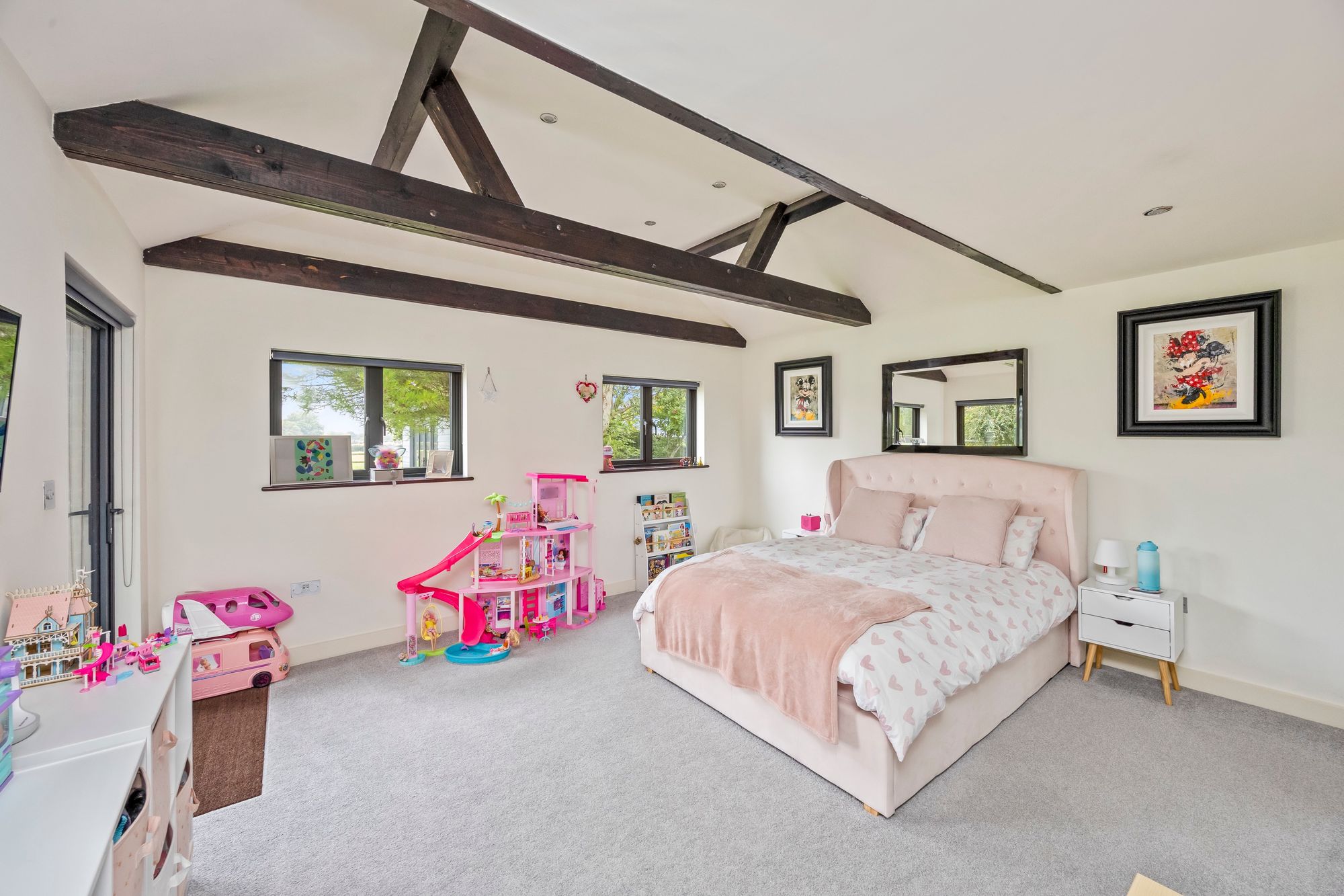 Three generous double bedrooms are located on the ground floor, two of which are serviced by a plush family bathroom finished with quality fittings, while a further guest bedroom benefits from its own contemporary en-suite shower room.