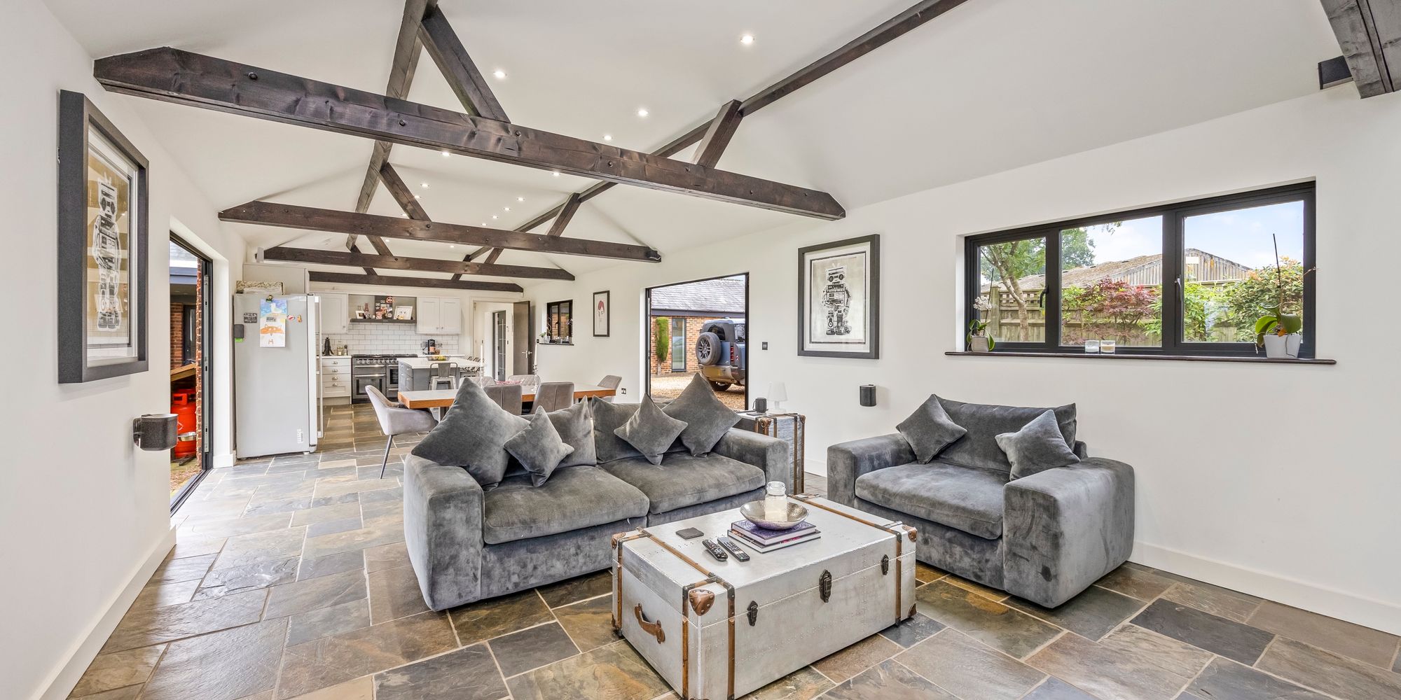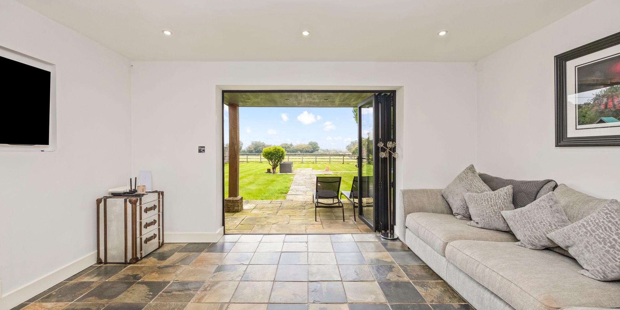 The property is situated in prime Sussex countryside, offering immediate access to walking and rural pursuits, yet is conveniently located just fifteen minutes from the vibrant city of Brighton and Hove.