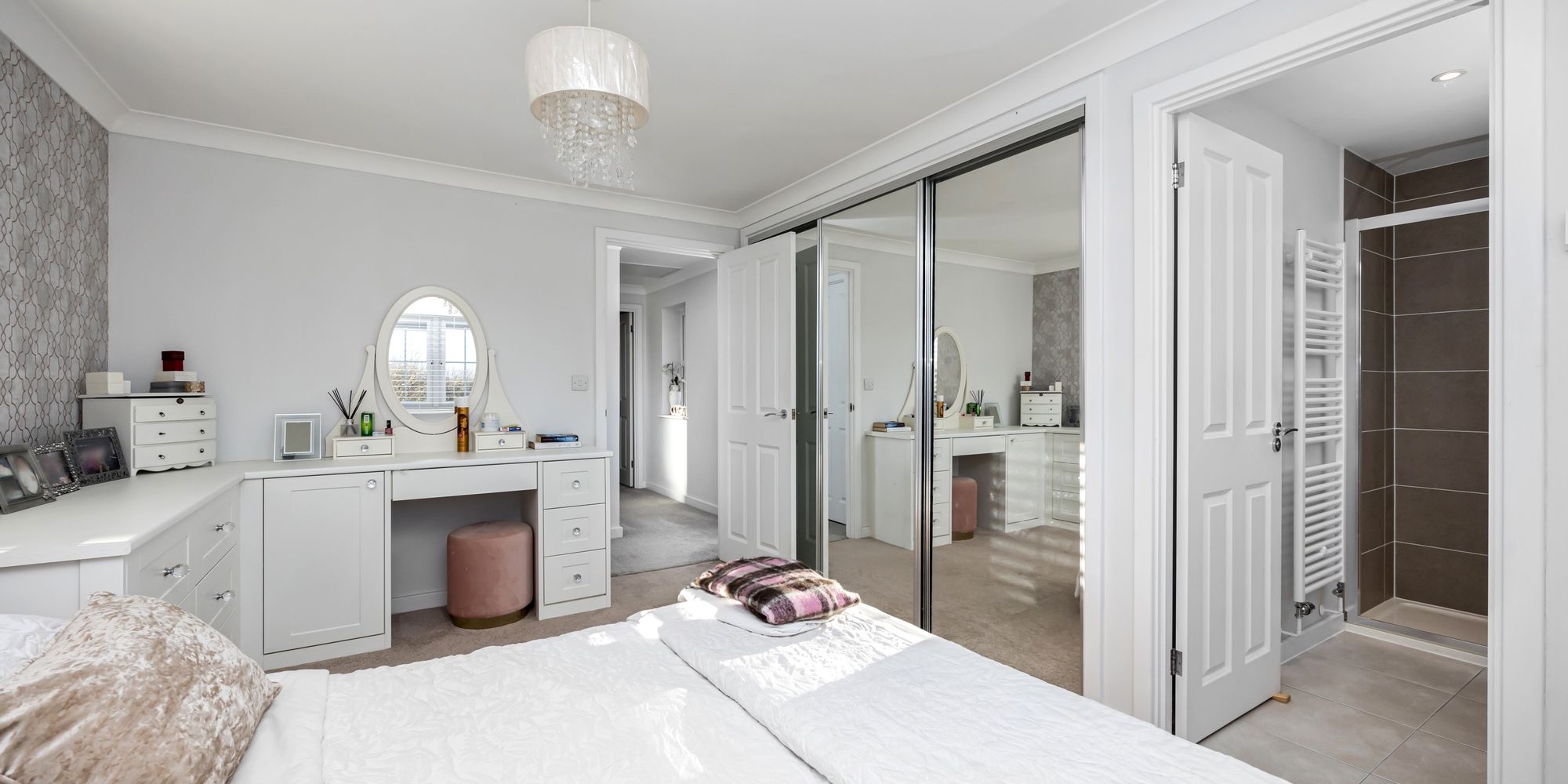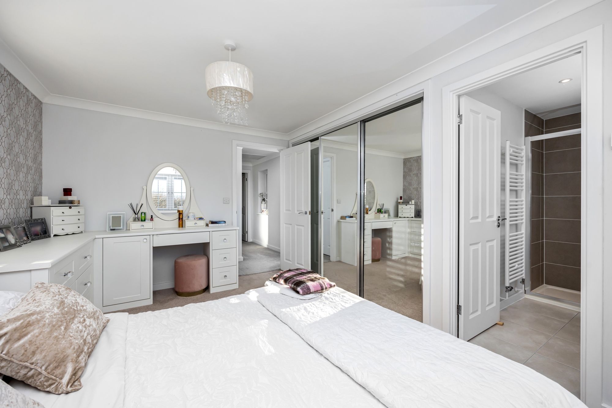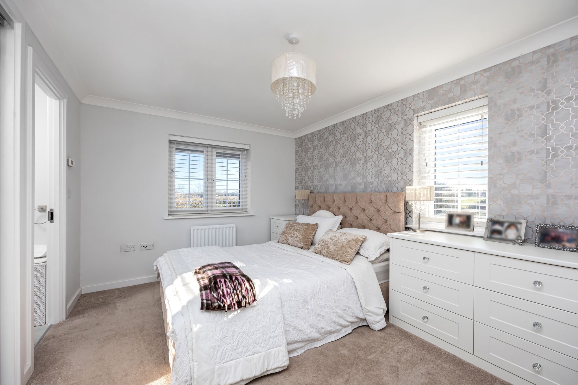 Upstairs, the home continues to impress with spacious, comfortable living. All four bedrooms come complete with built-in wardrobes, ensuring plenty of storage. The master bedroom and second bedroom both boast en-suite bathrooms, while the remaining two bedrooms share the stylish family bathroom. All showers are equipped with Aqualisa units, and the bathrooms are beautifully fitted with high-quality fixtures.