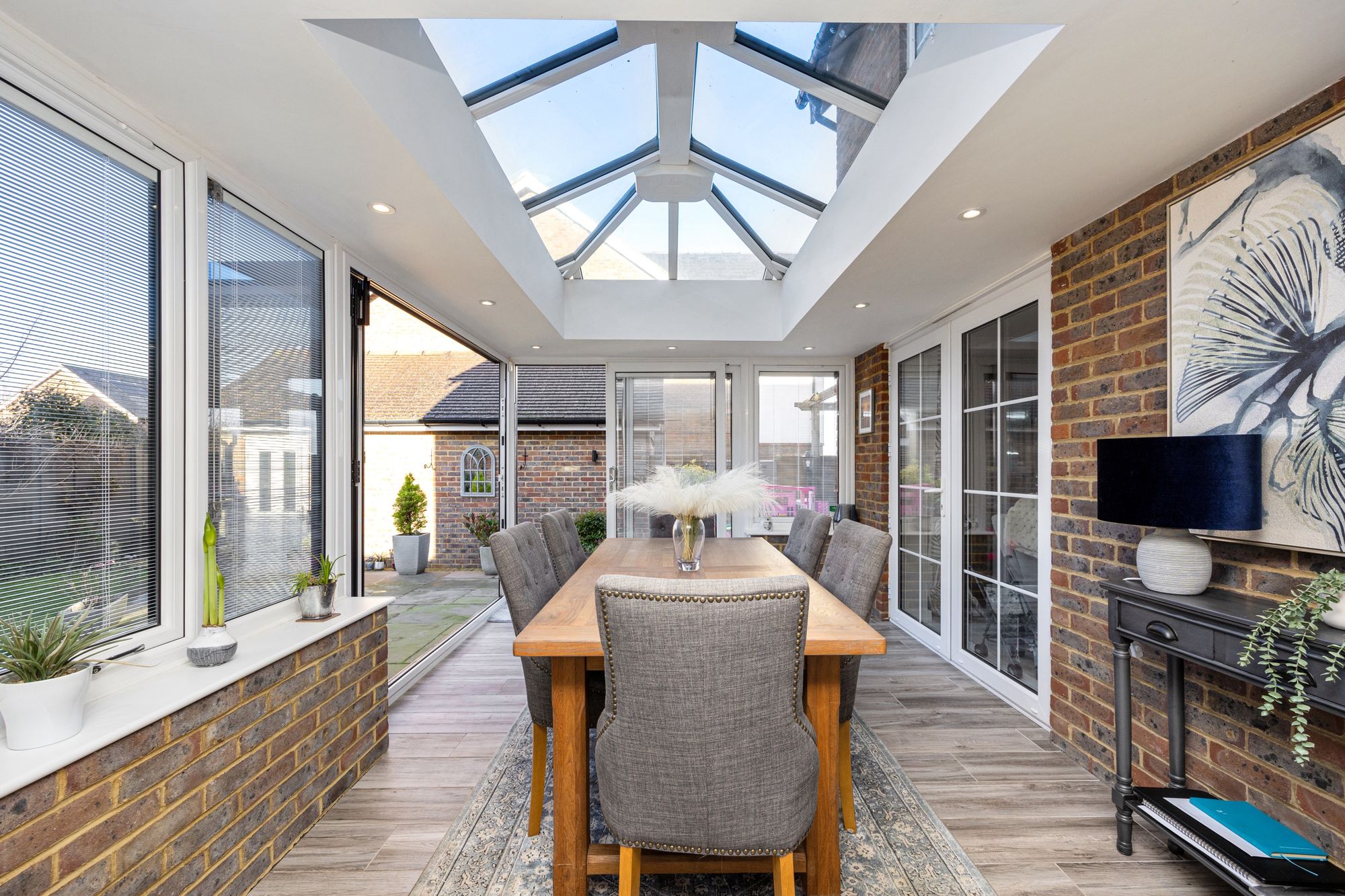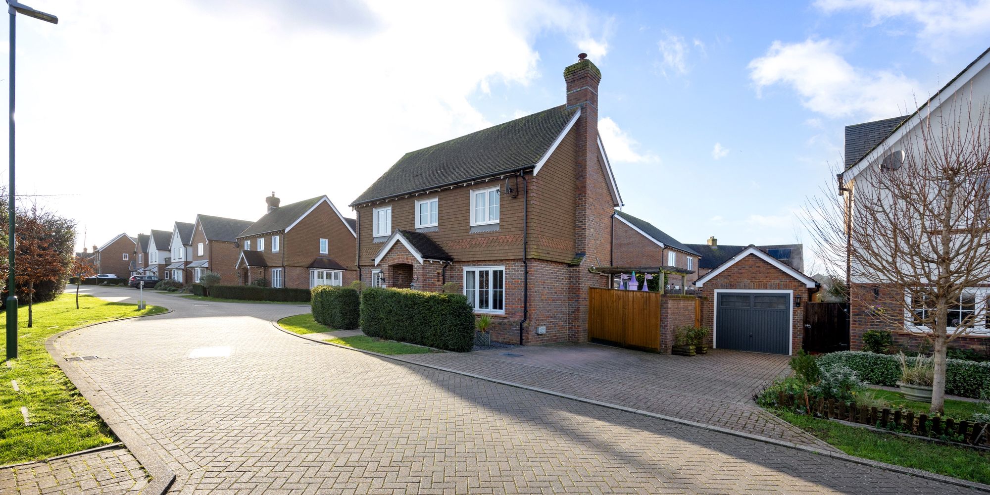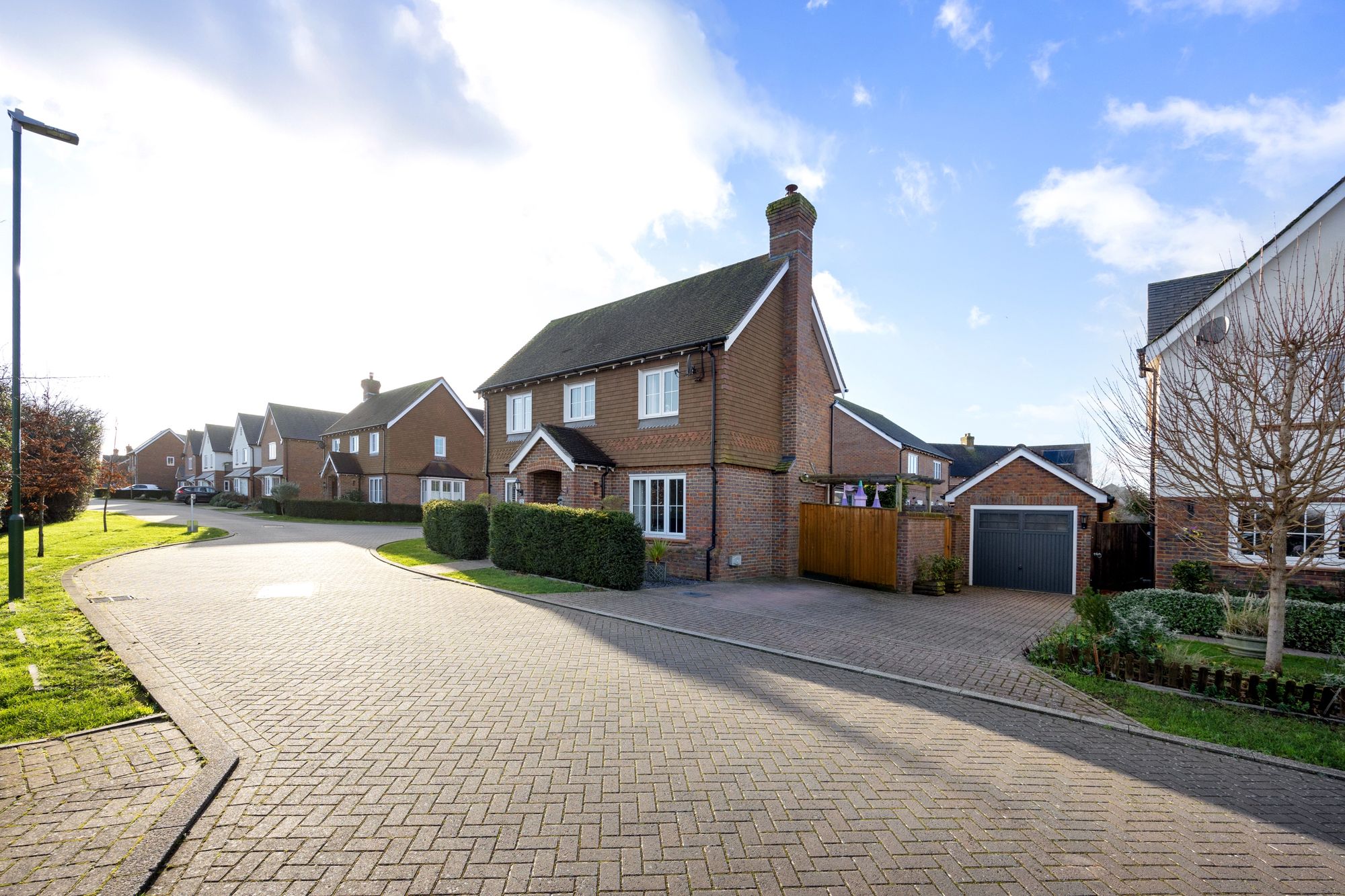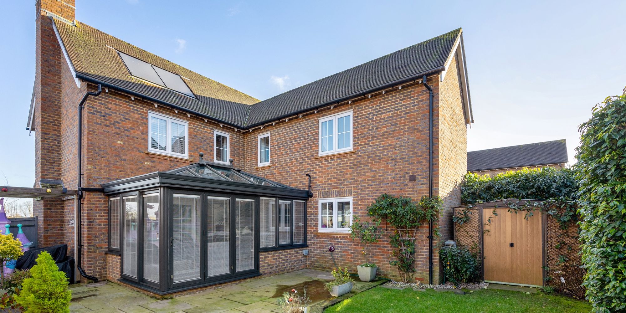 This beautifully presented four-bedroom, three-bathroom detached modern home is nestled within a tranquil, friendly private estate in Henfield. Boasting uninterrupted rural views across open fields, it is just a short stroll to the heart of the village. Offering a garage, private driveway, and a unique feature on the estate – a stunning orangery – this home combines modern living with peaceful surroundings.