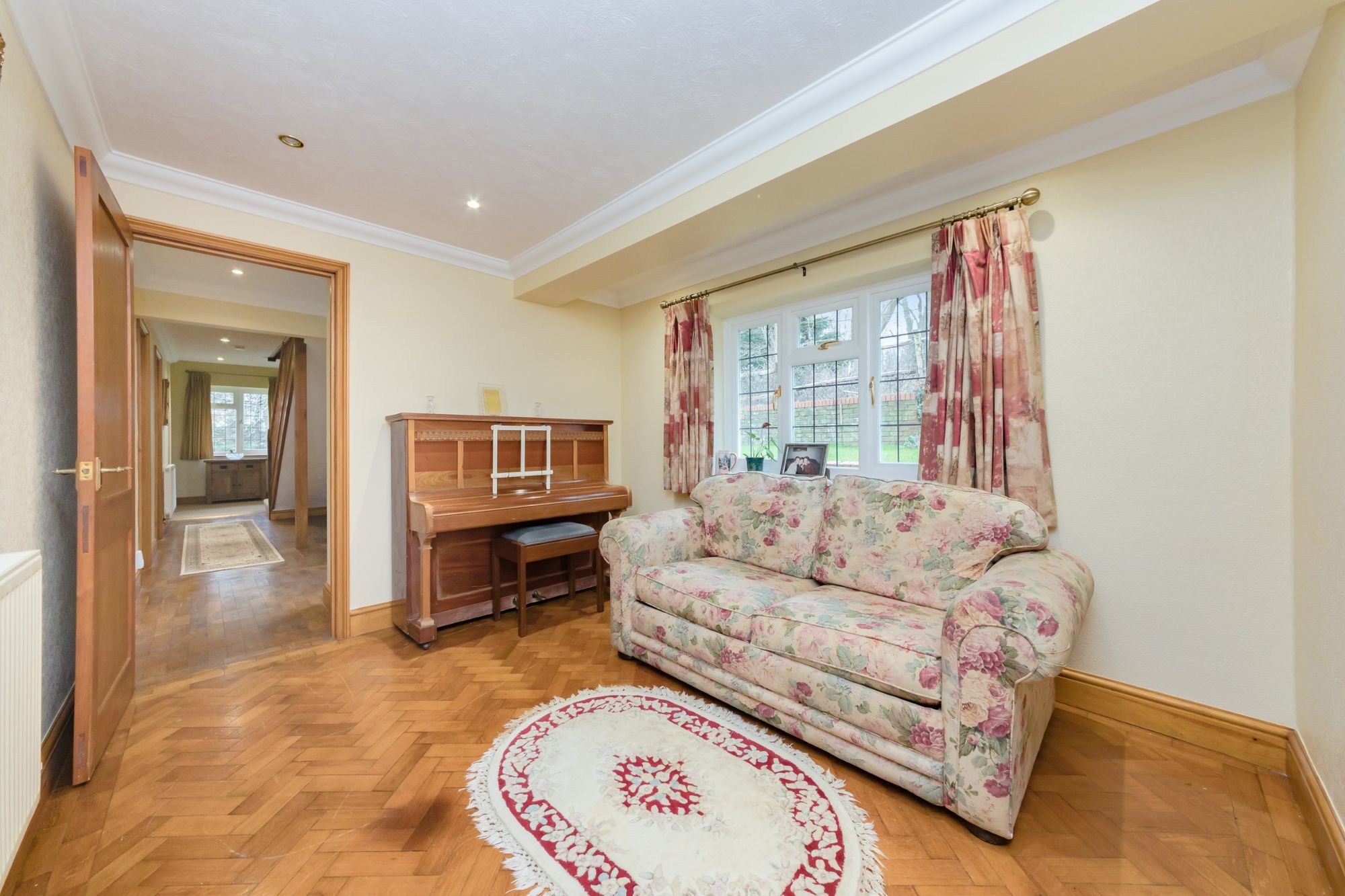 Reception Room- Presented as a comfortable snug with window to the rearand beautiful parquet floors.