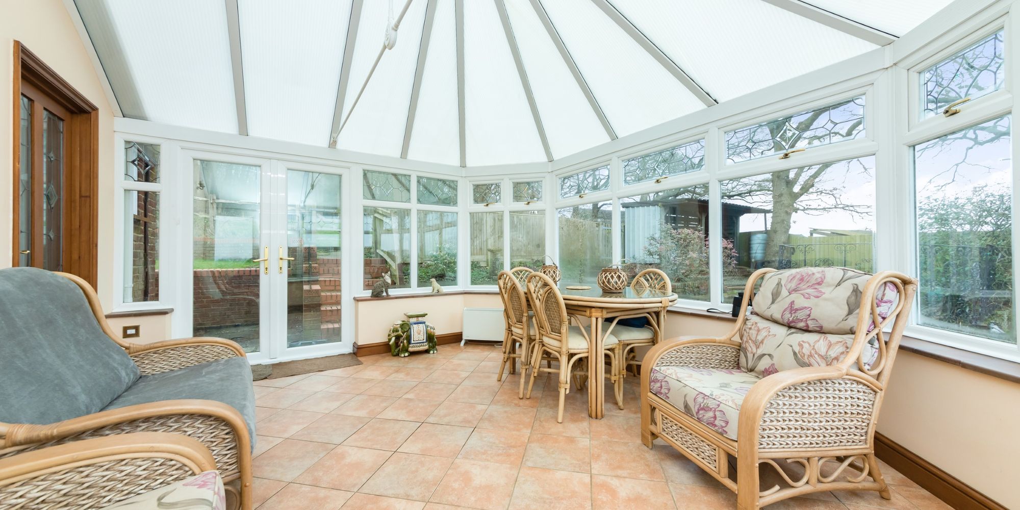 Conservatory- A triple aspect conservatory with roof window and doors to garden. The conservatory takes full advantage of the stunning views.