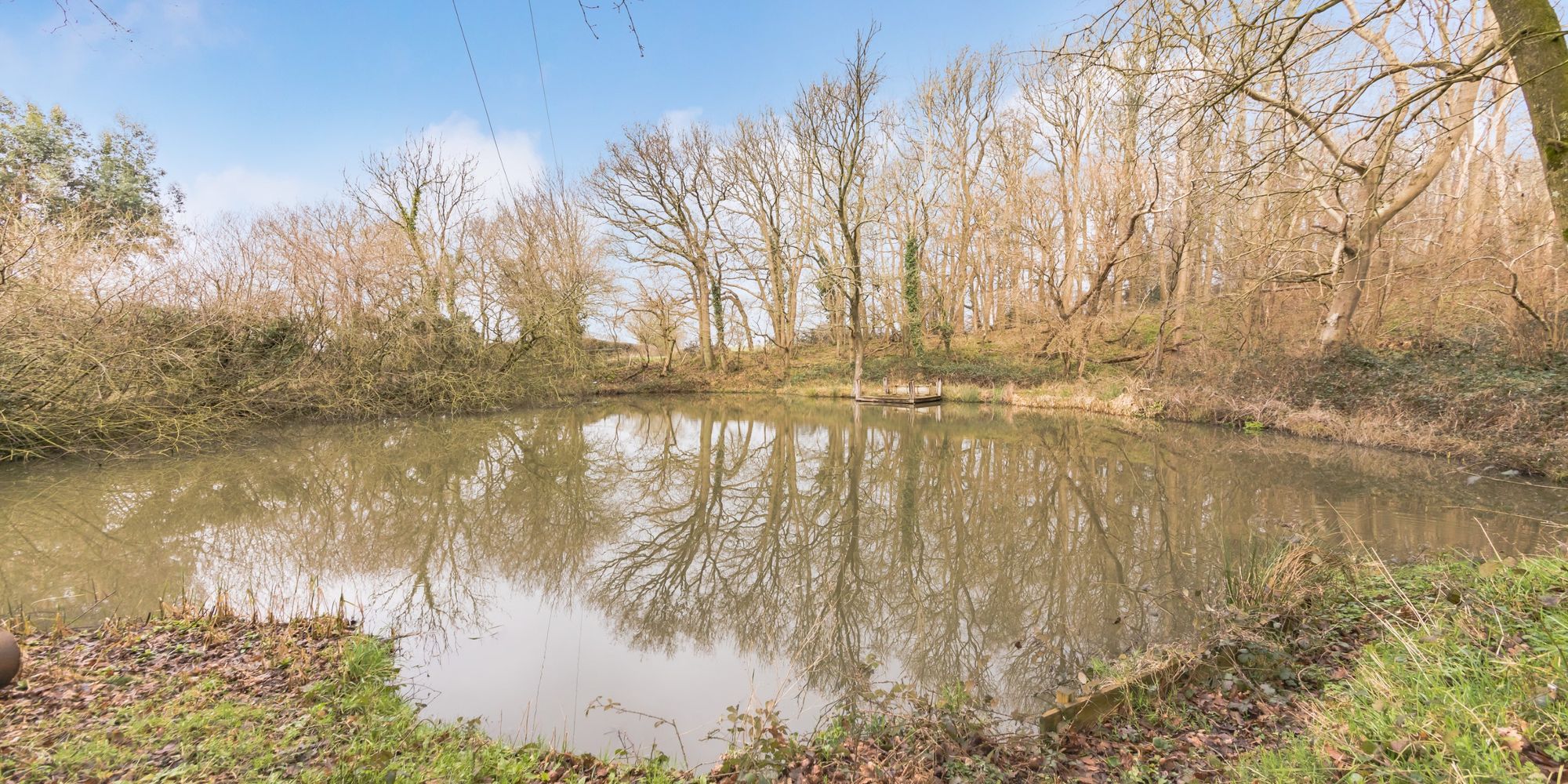 Lake- An impressive wildlife lake enclosed by fenced boundaries with timber built pontoon.