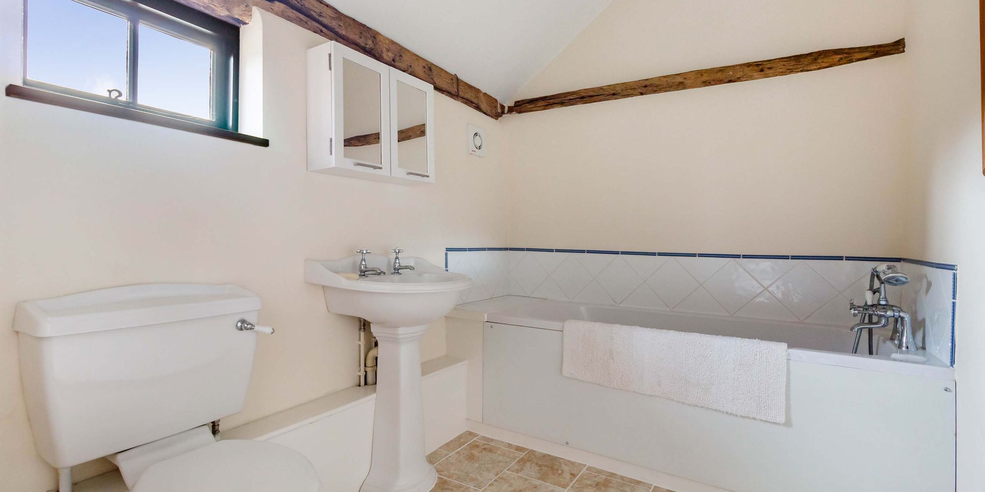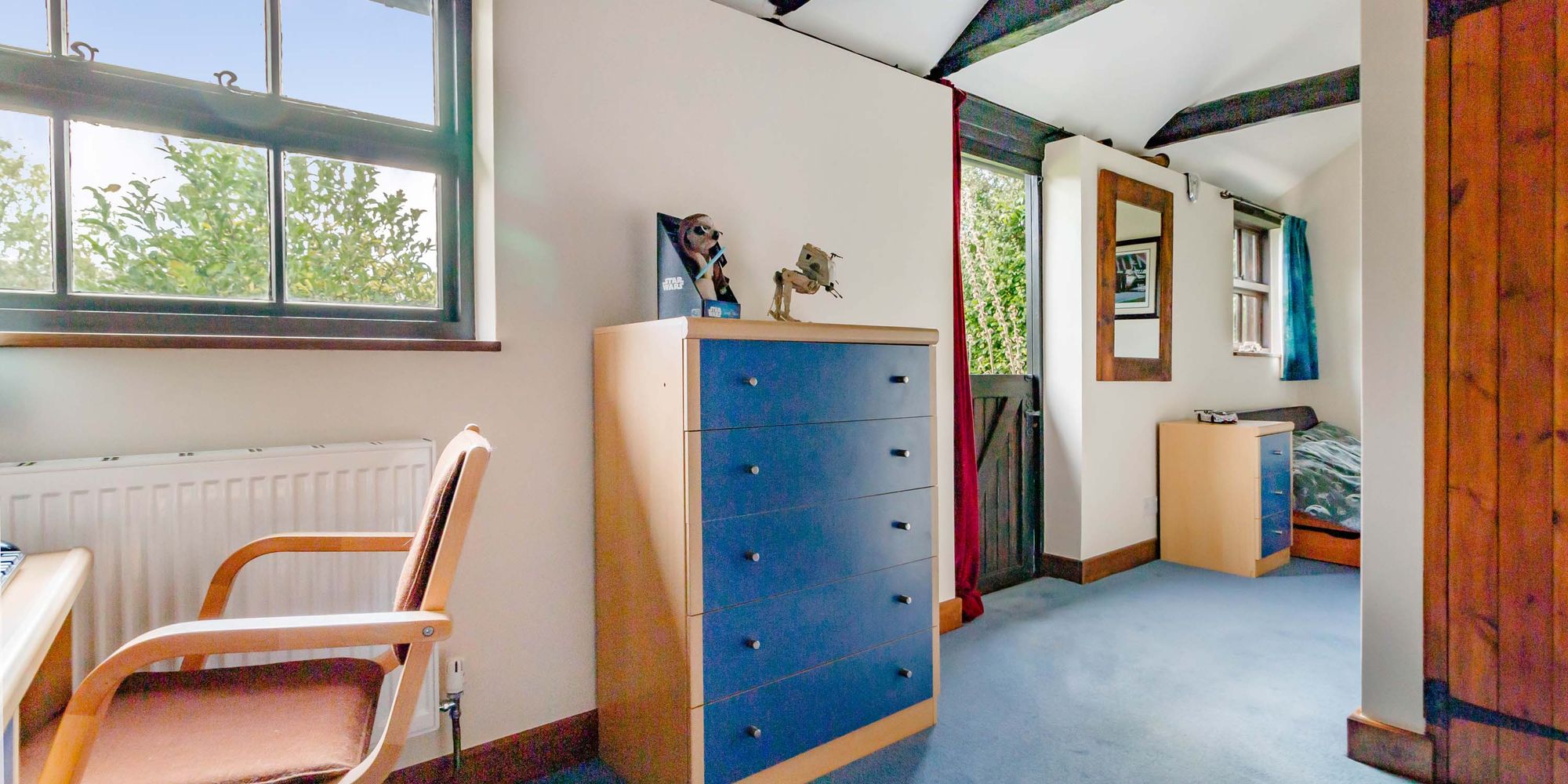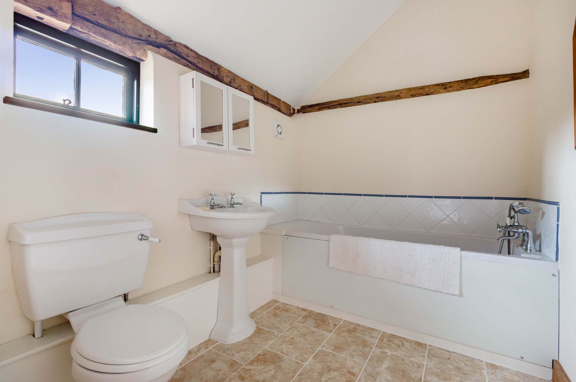There are three bedrooms and three bath/shower rooms on the ground floor, two of which are en-suite and bedroom 3 could be divided to provide a fourth bedroom. The bedrooms form a single storey portion of the barn, all rooms have a personal door giving access to the formal garden and the attractive large pond.