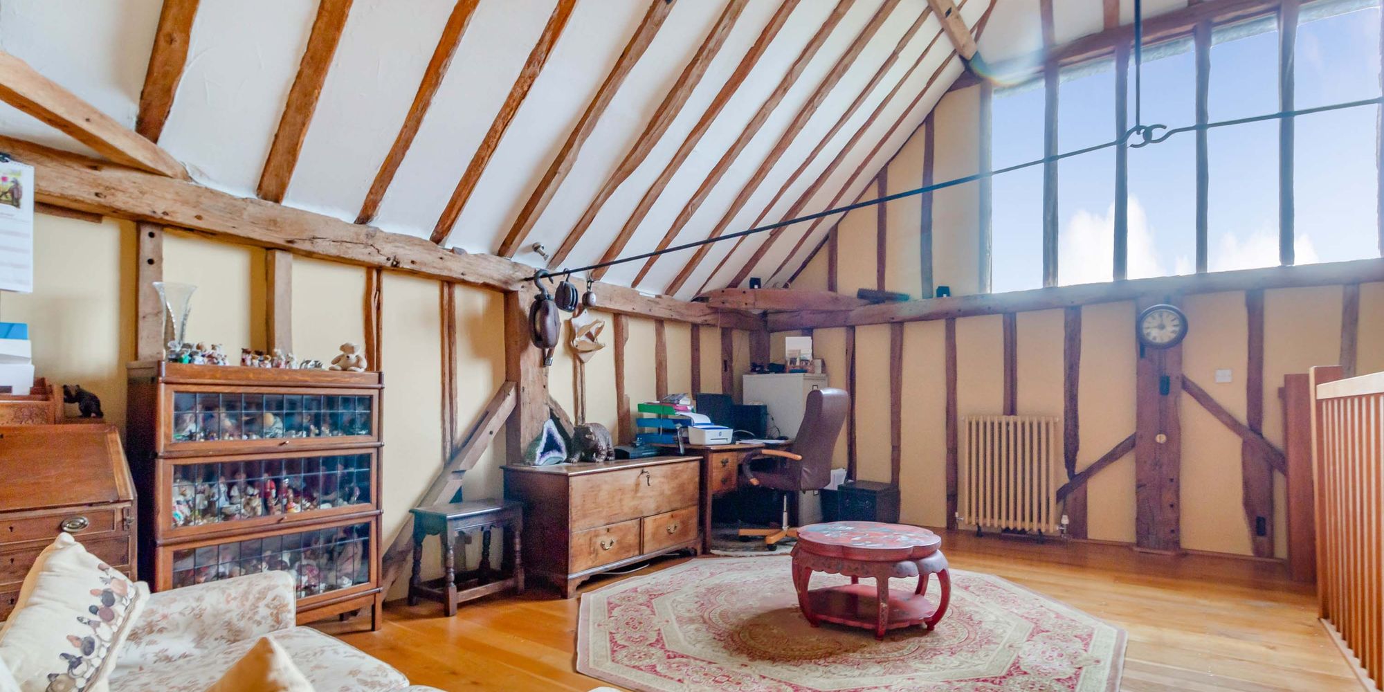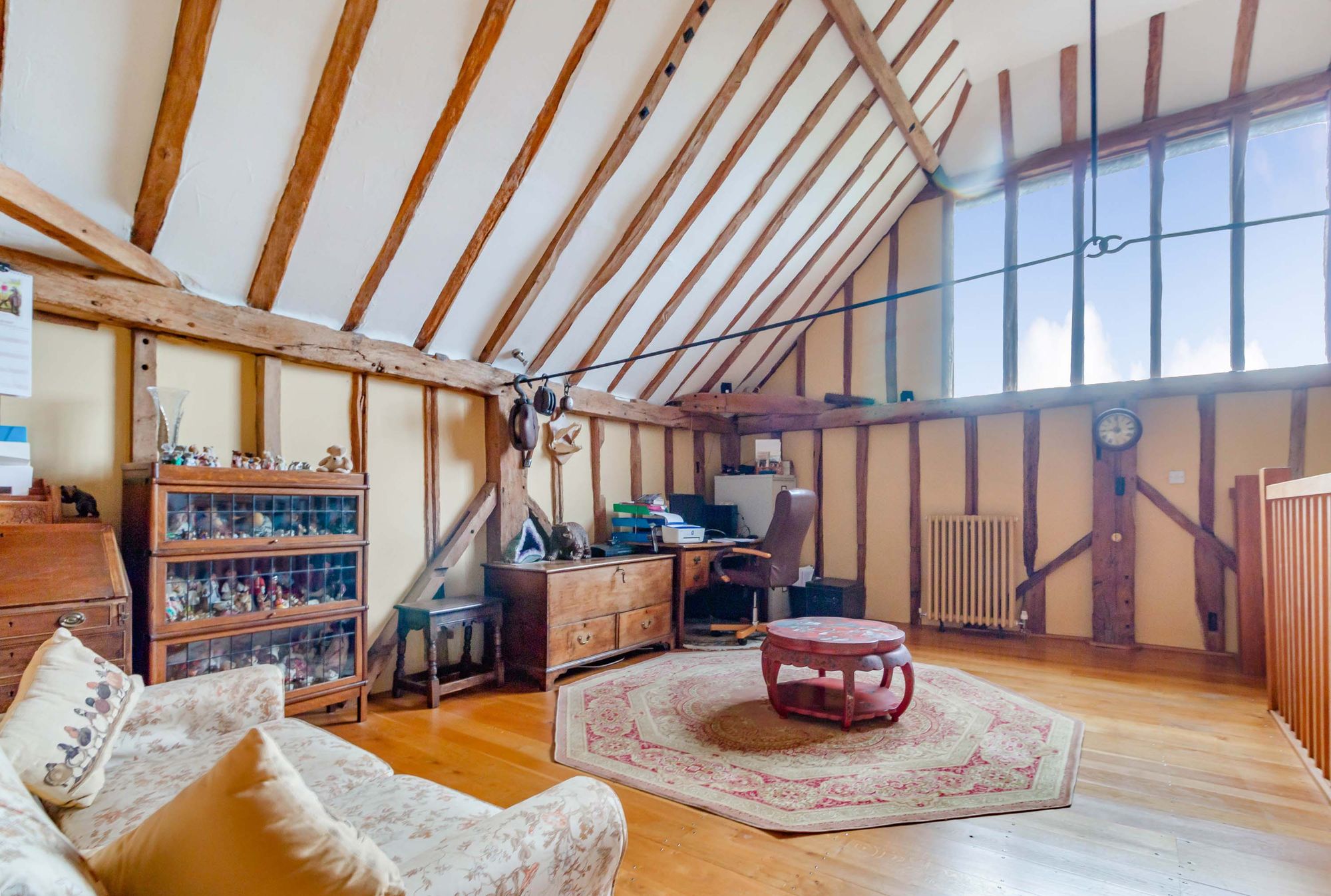The accommodation is versatile, extending to 3758 sq ft, made by an impressive largely open plan sitting/dining/family room with a fireplace and wood burning stove and a staircase rises to a galleried study. The principal bedroom enjoys a double aspect and en-suite bathroom featuring a roll top bath and shower cubicle.