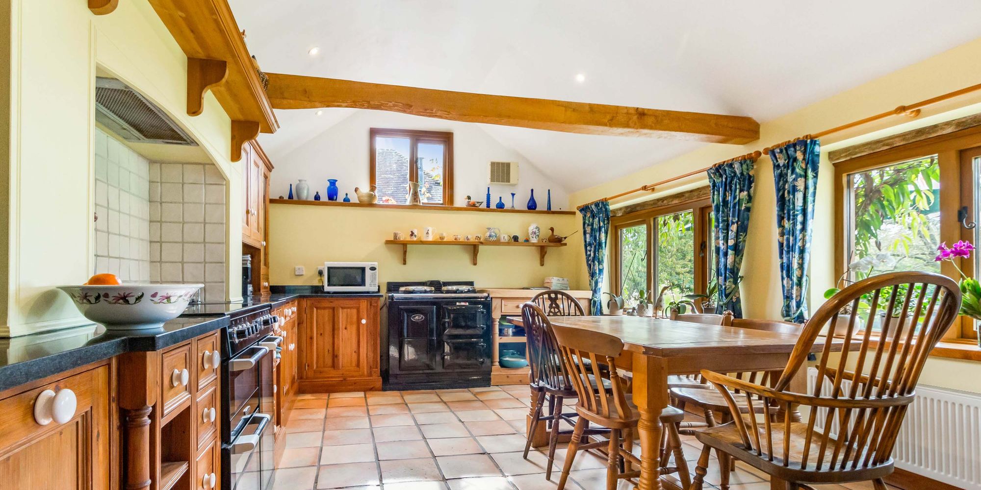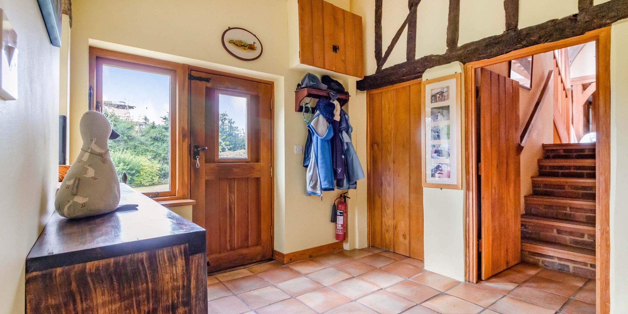 Continuing on the ground floor there is a garden room, wonderful for entertaining with a central set of French doors, a wood burning stove and loft/storage area. There is a farmhouse style kitchen/breakfast room, a utility room and cloakroom found nearby.