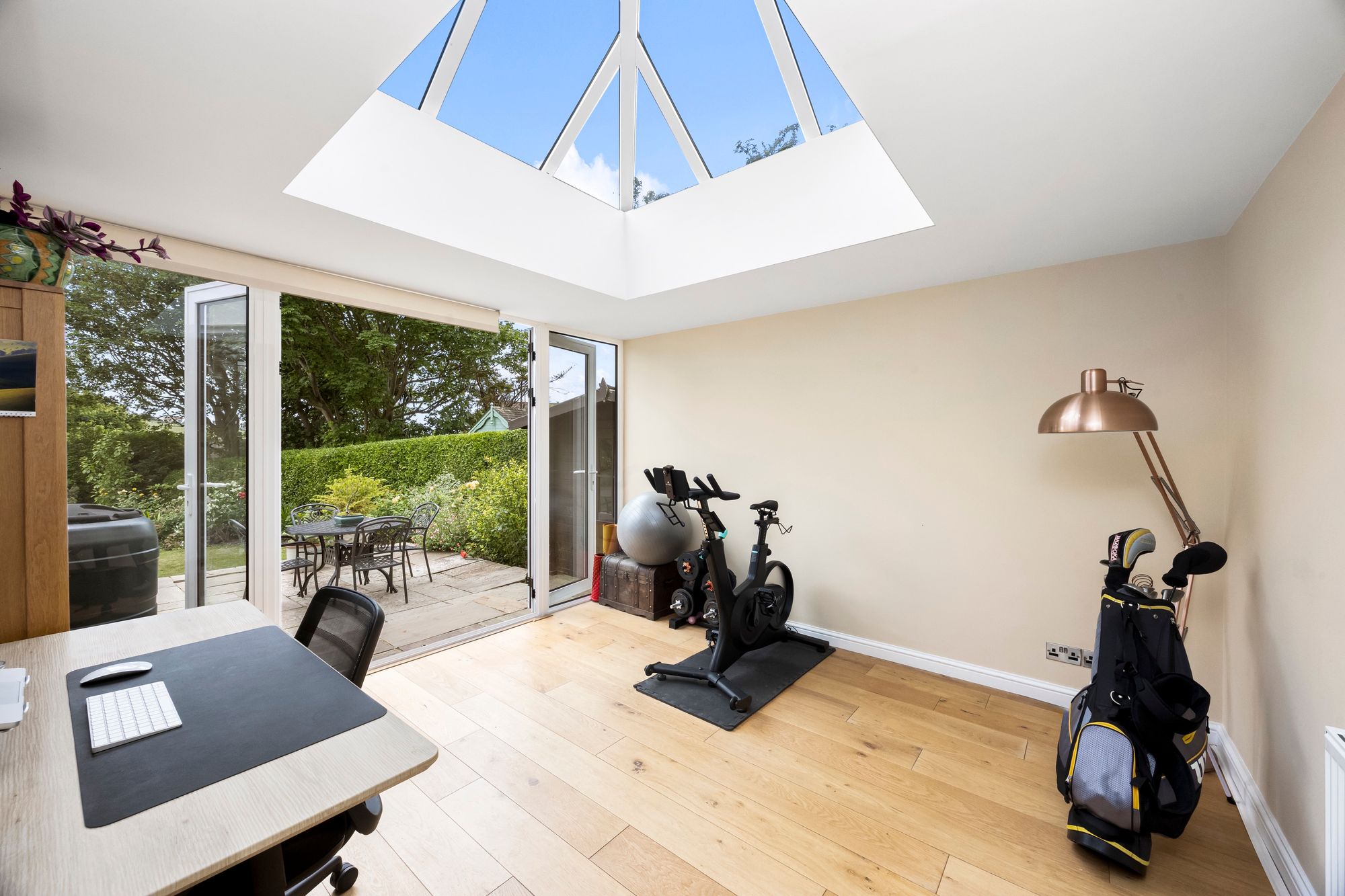 Upon approach, the property offers ample parking for multiple vehicles on the driveway, along with a double garage and an EV charging point—a thoughtful addition for modern living. The property has been vastly extended on the ground and first floor, resulting in an exquisite arrangement of open-plan living and entertaining spaces on the lower level, while the first floor hosts a spectacular principal suite that is sure to impress even the most discerning buyer.