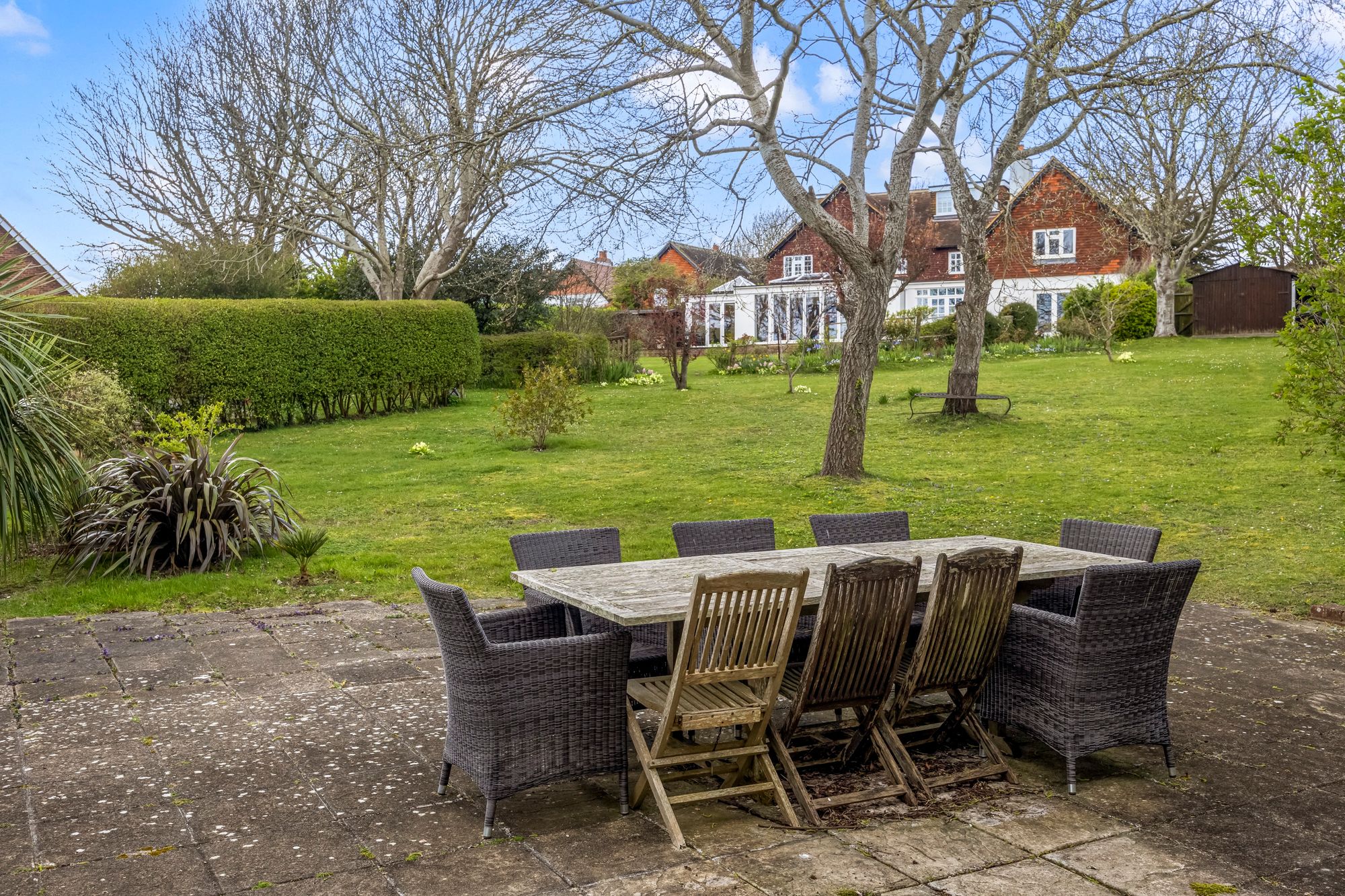 Nestled in a rural setting, yet conveniently well-connected to the charming village of Rottingdean and the vibrant city of Brighton and Hove, this residence strikes the perfect balance between tranquillity and accessibility. In addition to the well-appointed interior, the property also boasts beautifully landscaped grounds, featuring a variety of mature shrubbery and inviting patio areas, ideal for relaxation and al-fresco dining.
