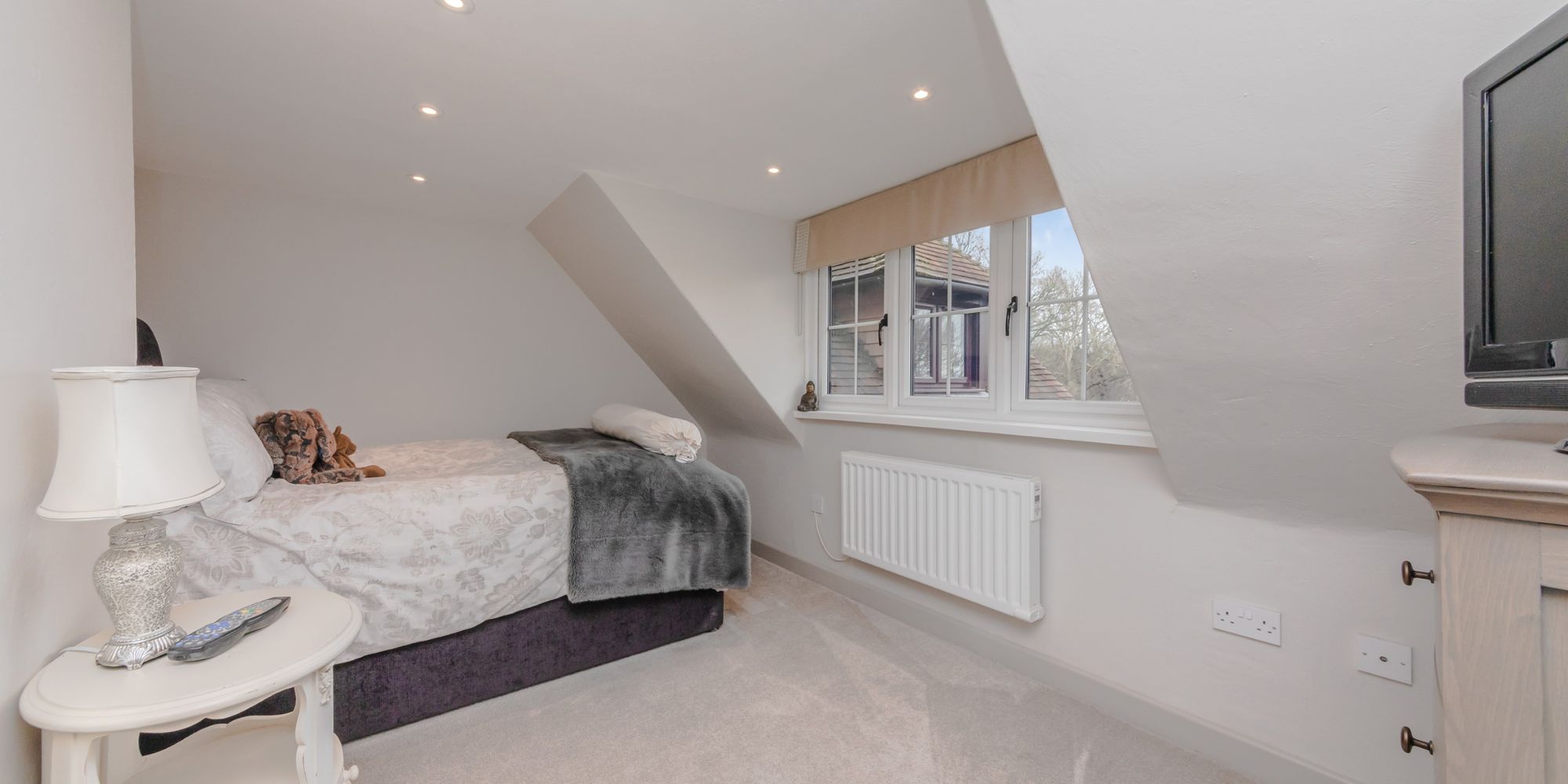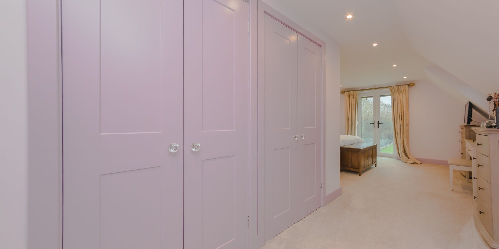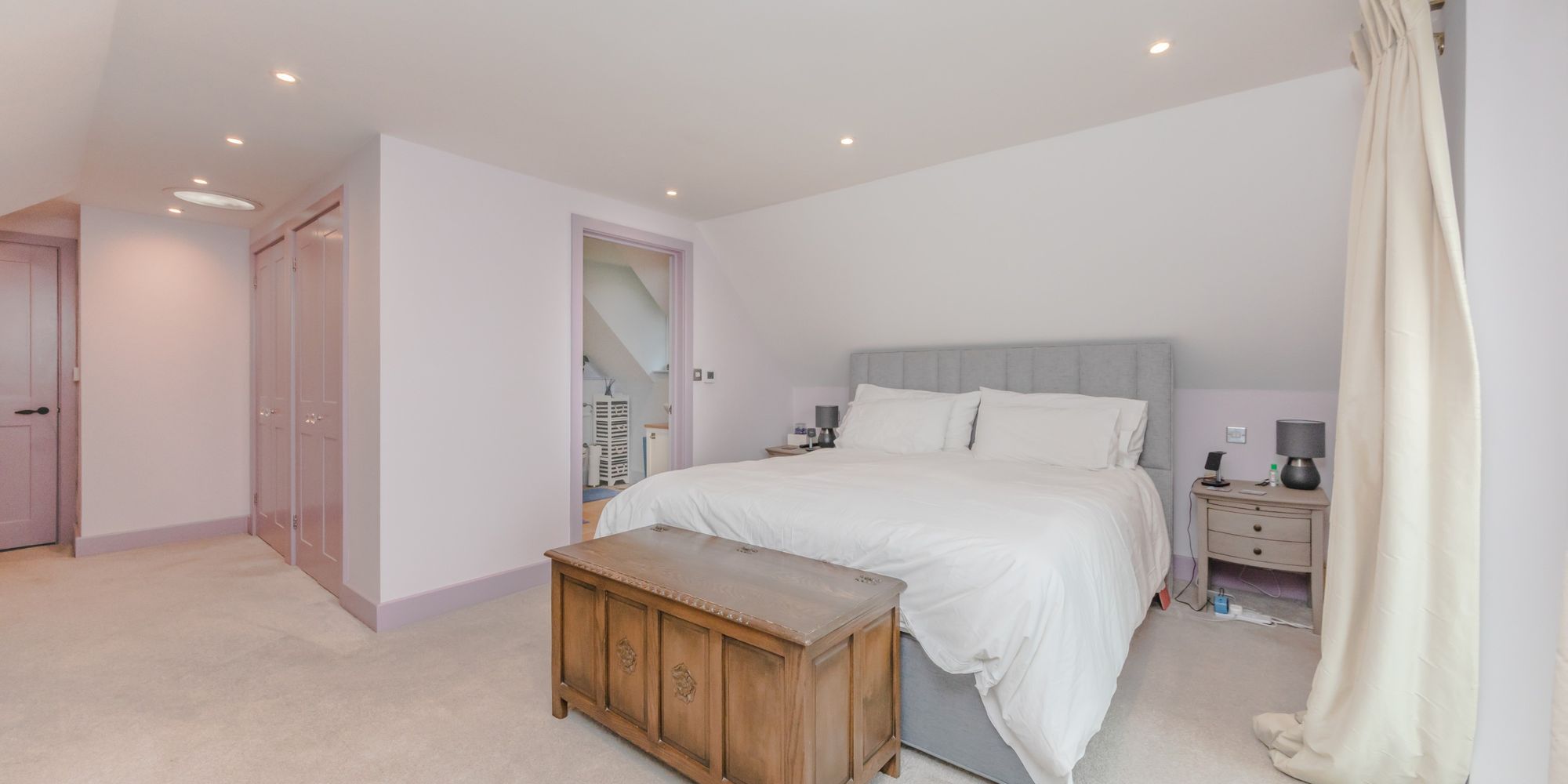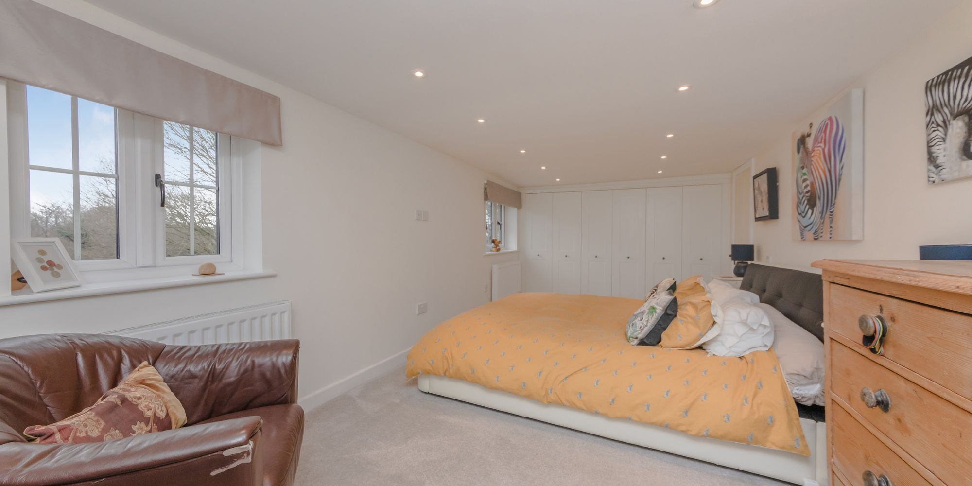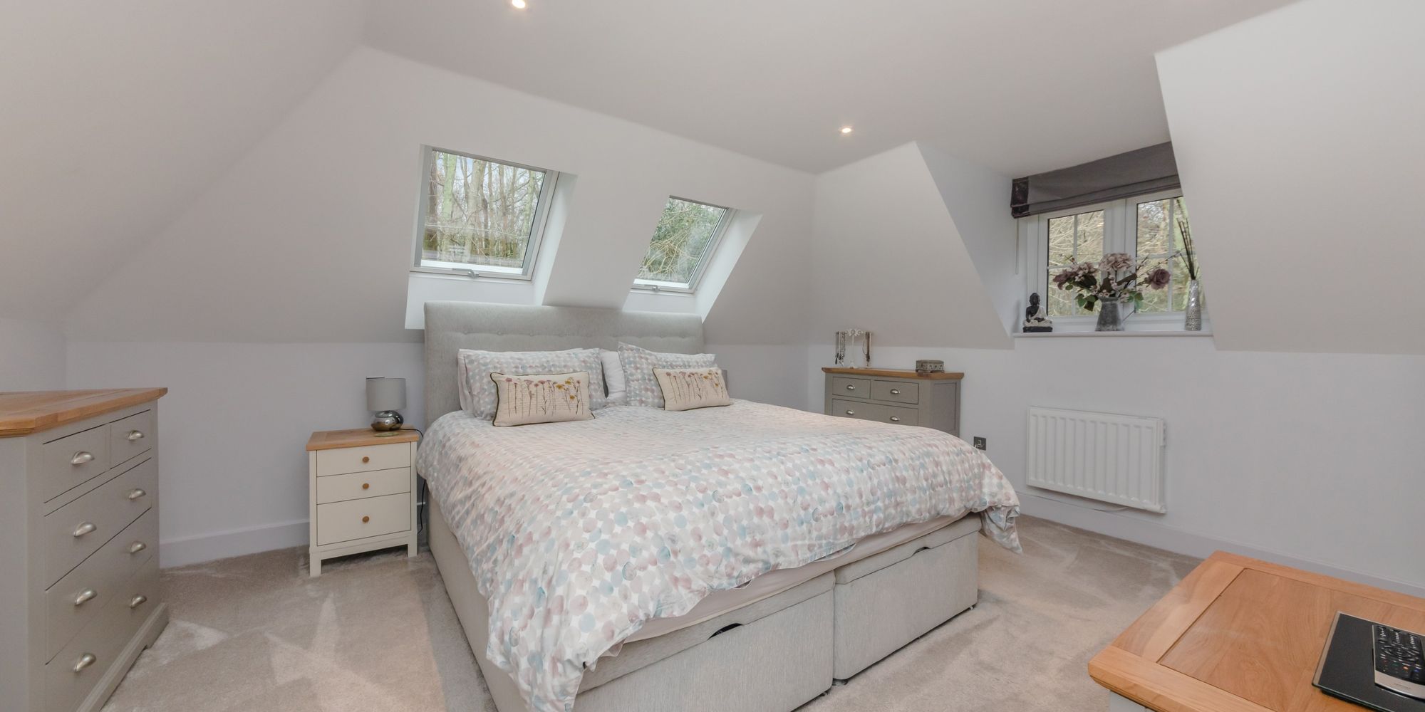 BEDROOM- A super-sized room with built in wardrobes and door to storage in the eaves. Rear aspect windows providing glorious far-reaching views.