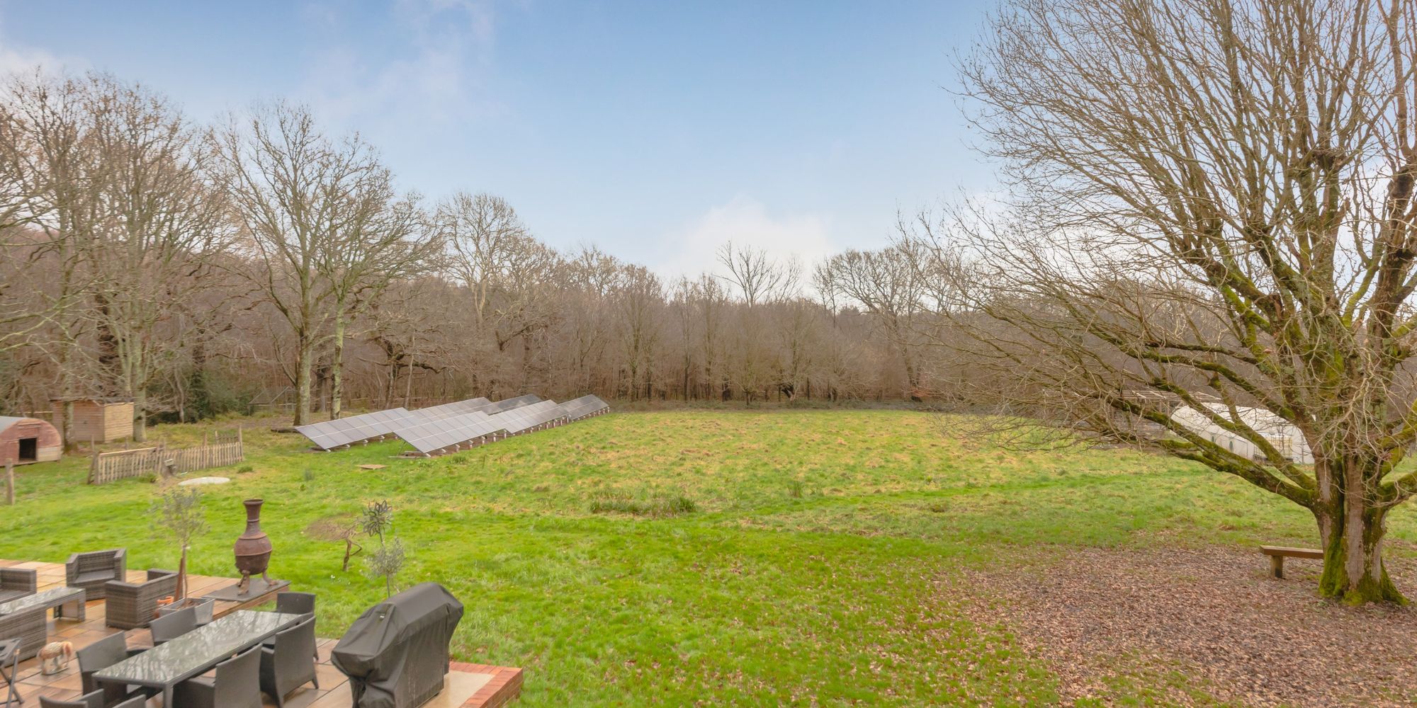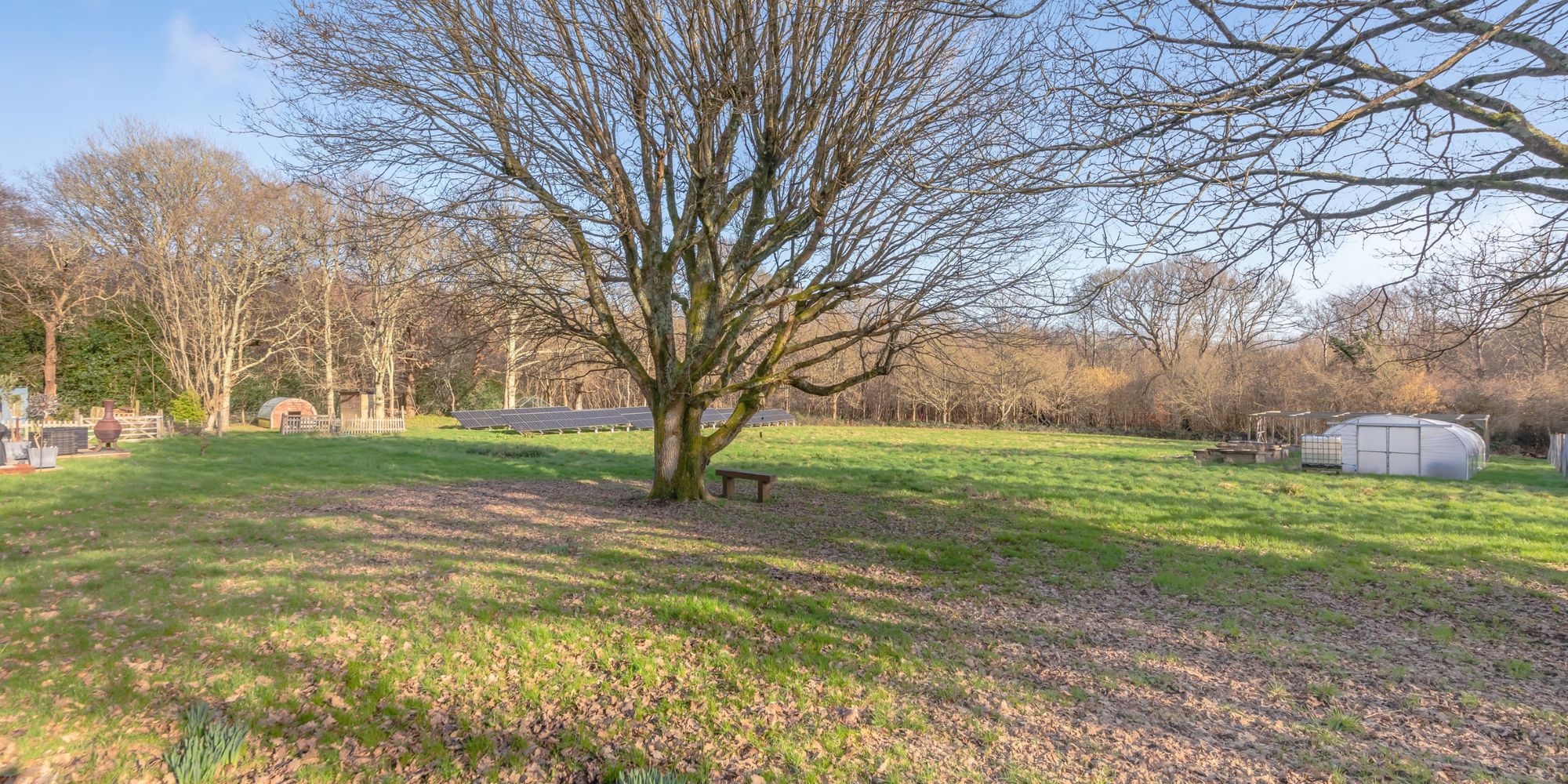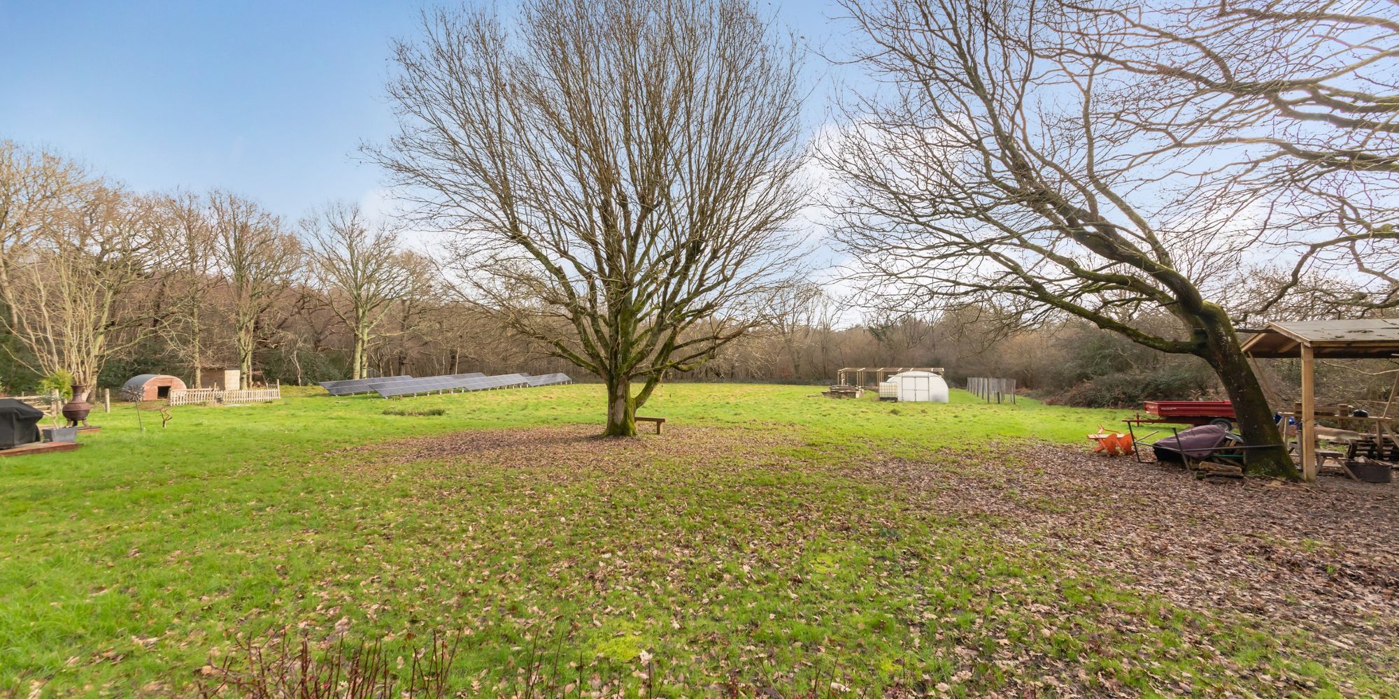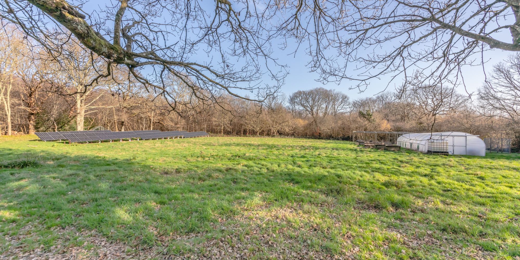 Outside, there is a self-sufficient solar system, various outbuildings with power and one provisioned for water, chicken shed, pig arc, fruit cage and poly tunnel.
