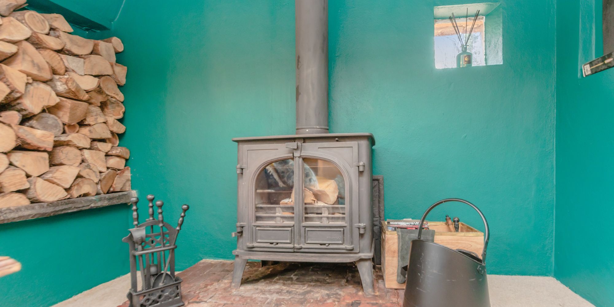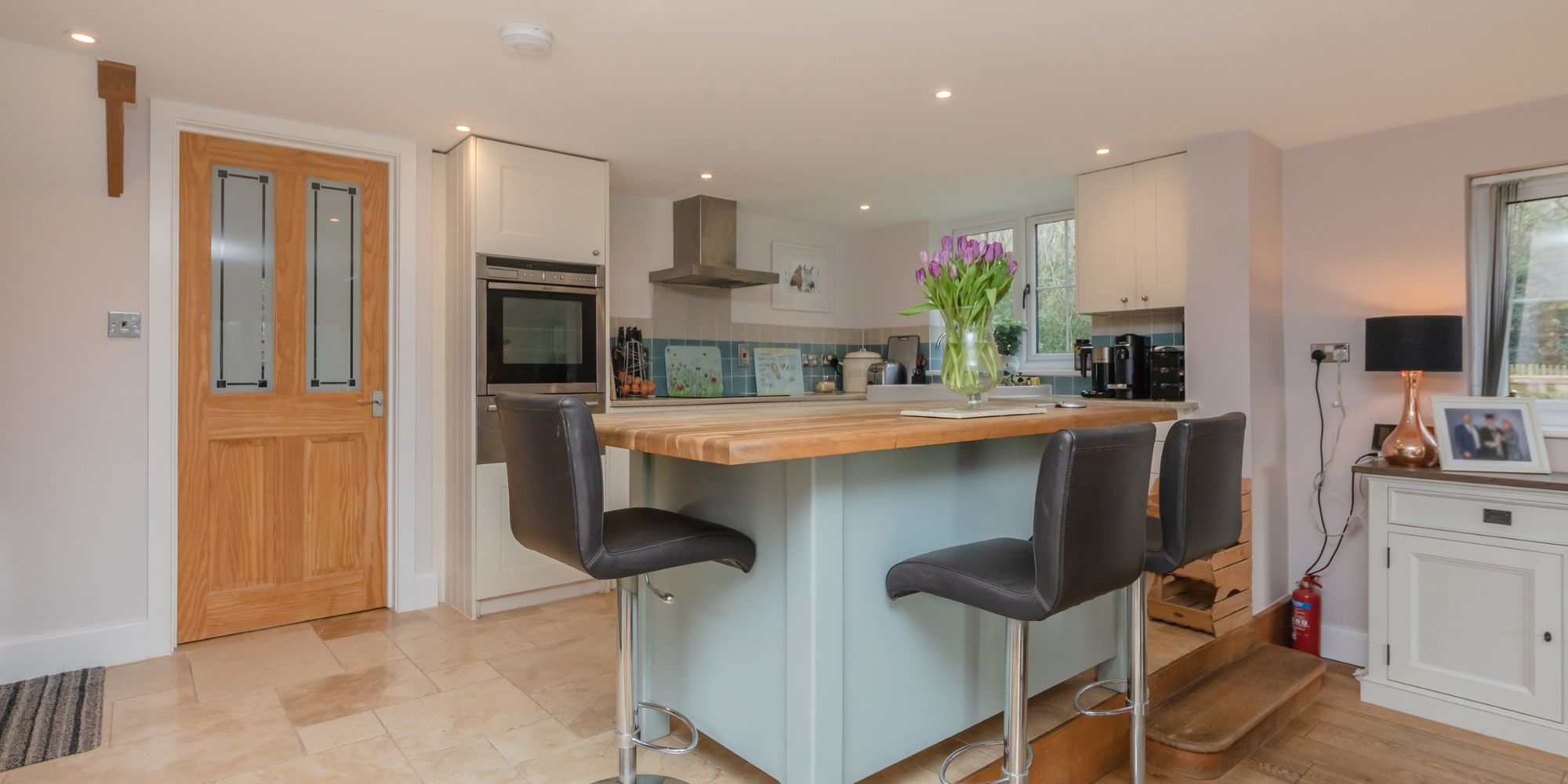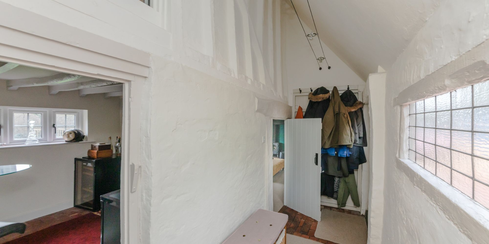 ENTRANCE HALL- A cosy space with cupboard, stairs to first floor, doors to principal rooms, cast-iron log burner with tiled surround and underfloor heating