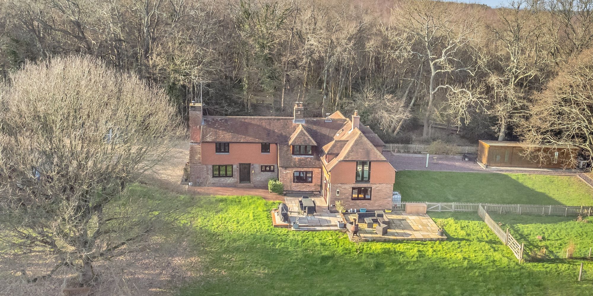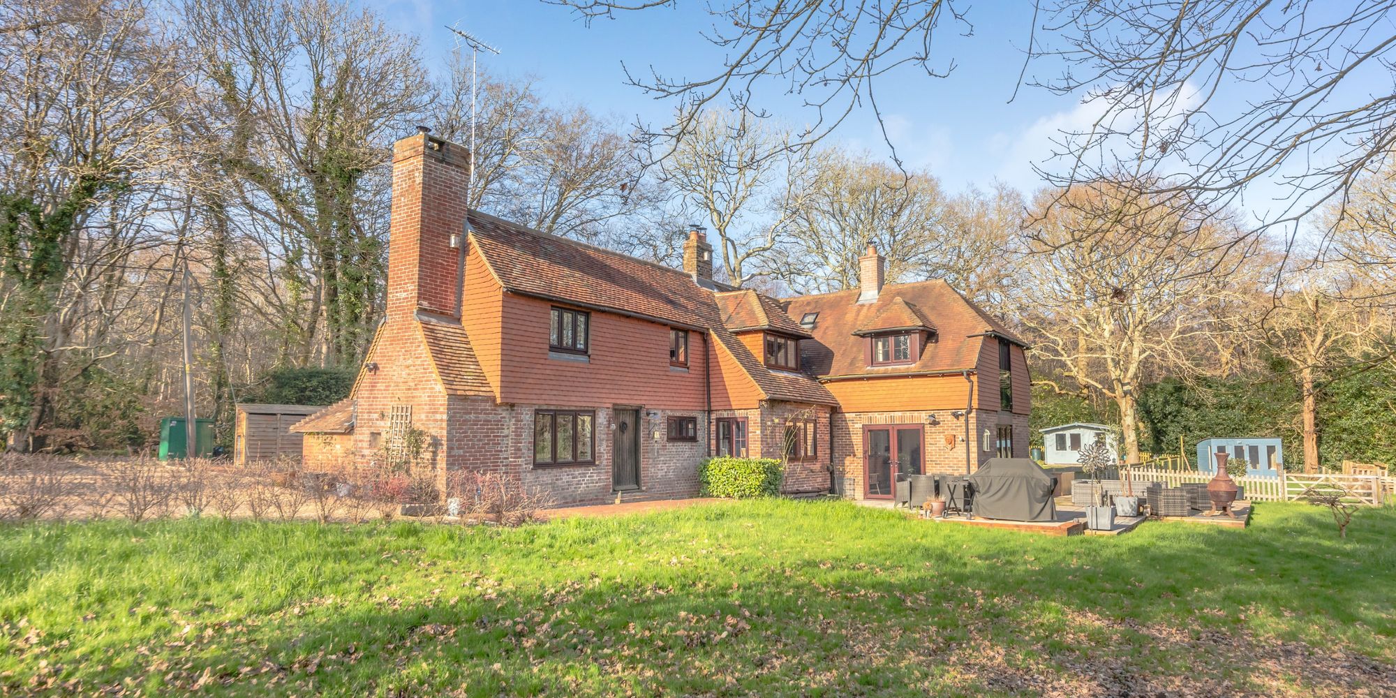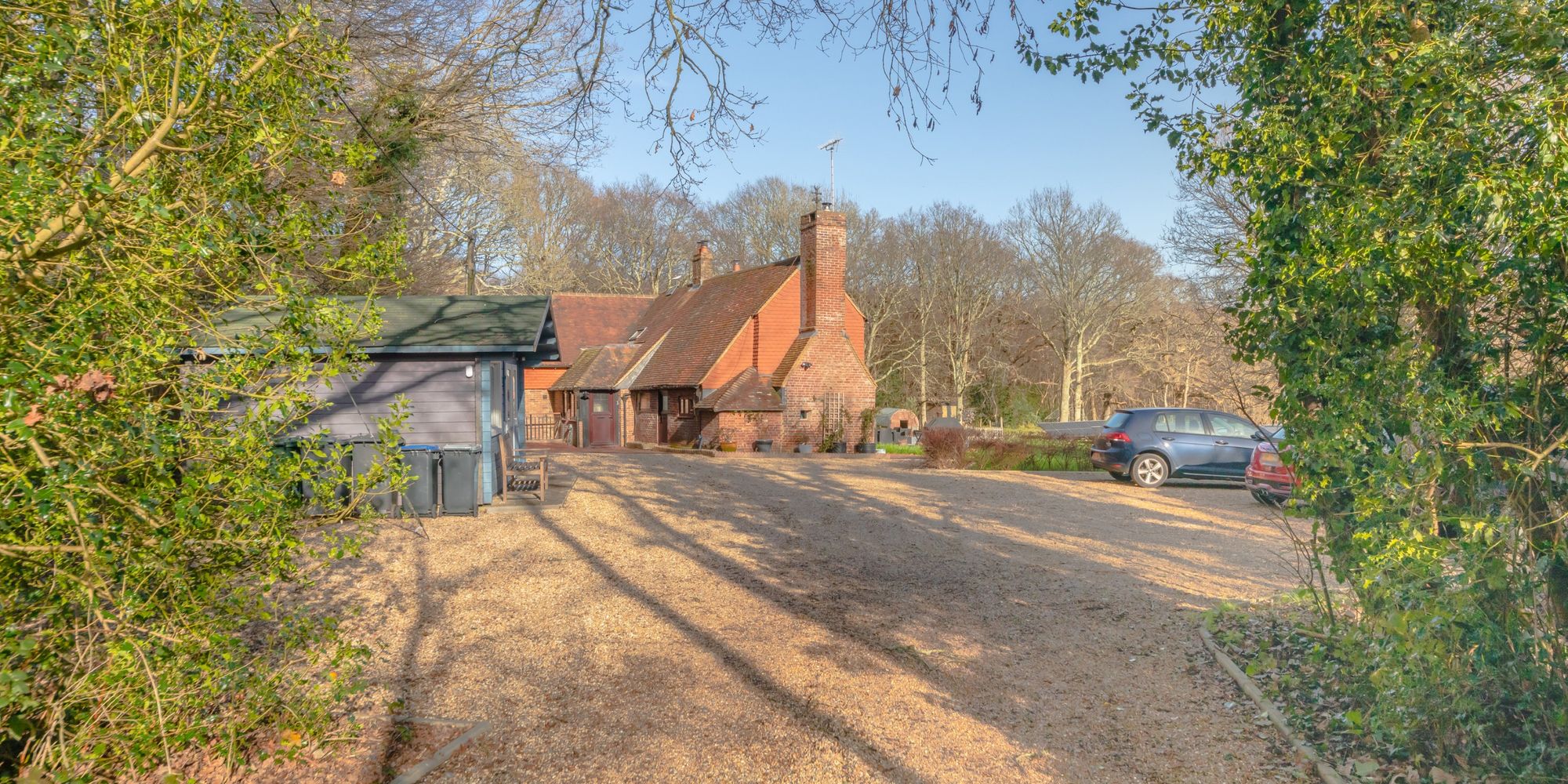 TOLLGATE COTTAGE is situated at the end of Brickhurst Lane on its own secluded 2.4 acre plot flanked by an additional 5.85 acres of private woodland.