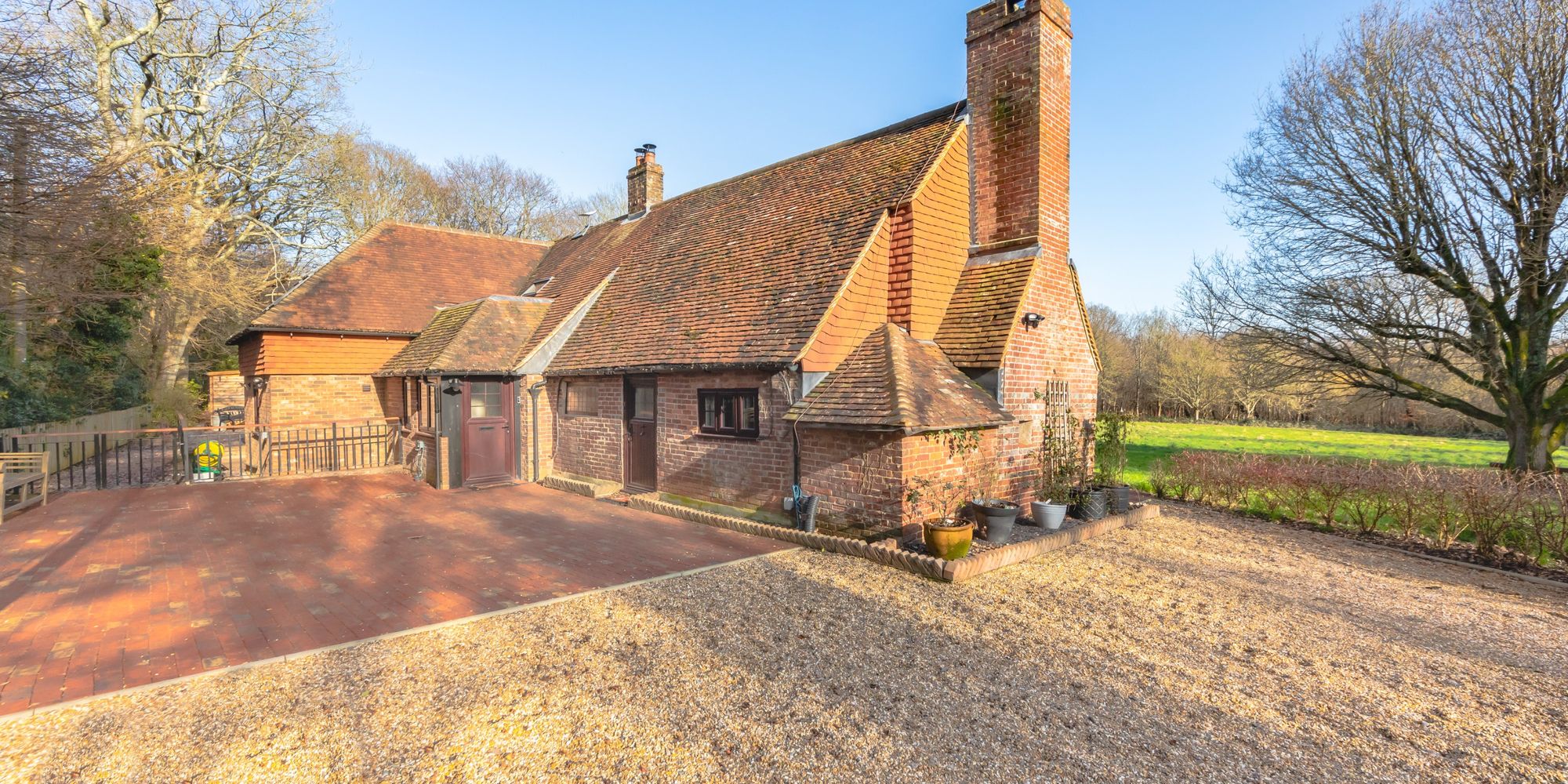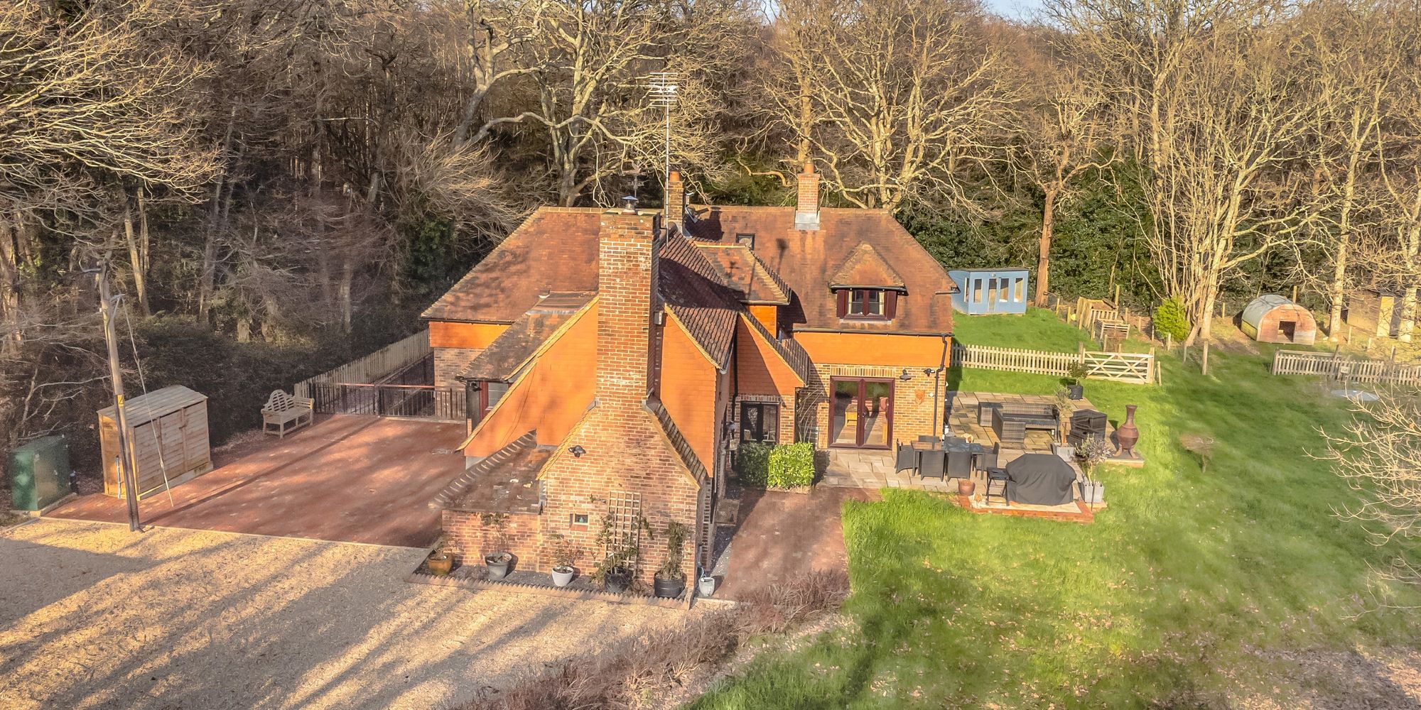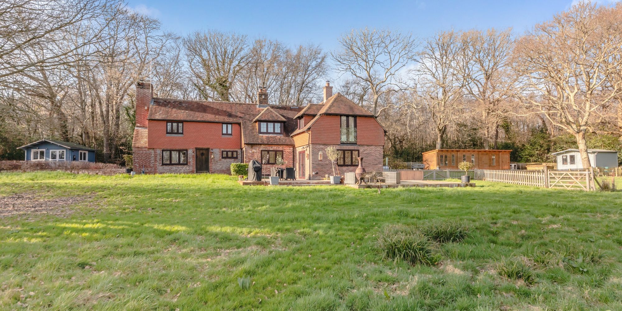 TOLLGATE COTTAGE is situated at the end of Brickhurst Lane on its own secluded 2.4 acre plot flanked by an additional 5.85 acres of private woodland.