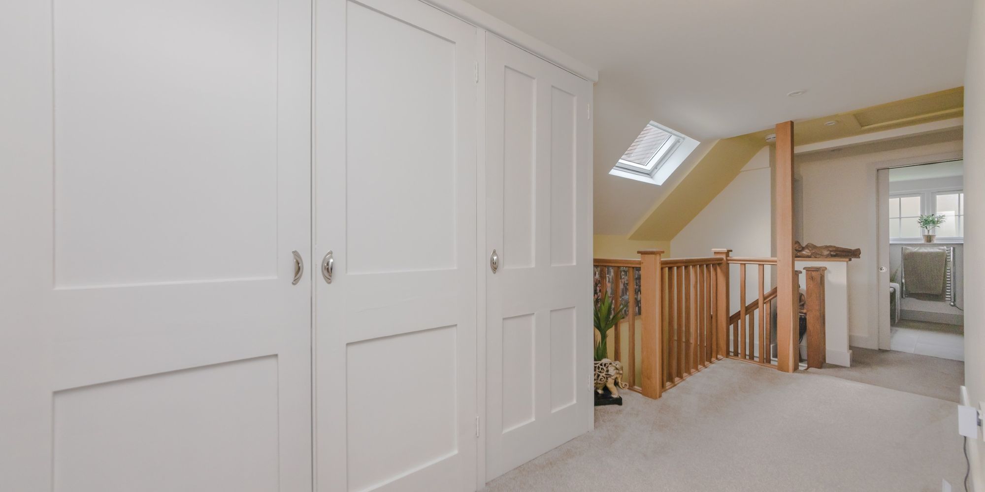 FIRST FLOOR LANDING- A long landing with built in storage cupboards and doors to principal rooms
