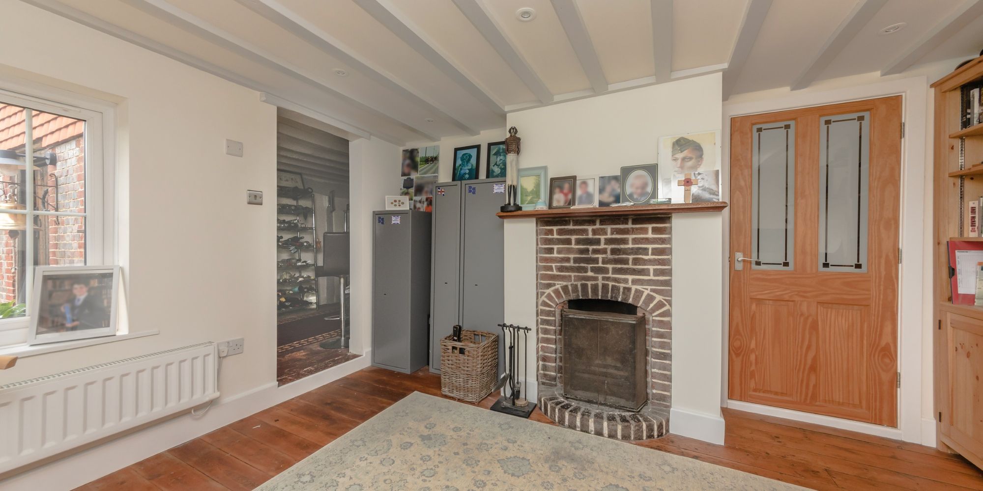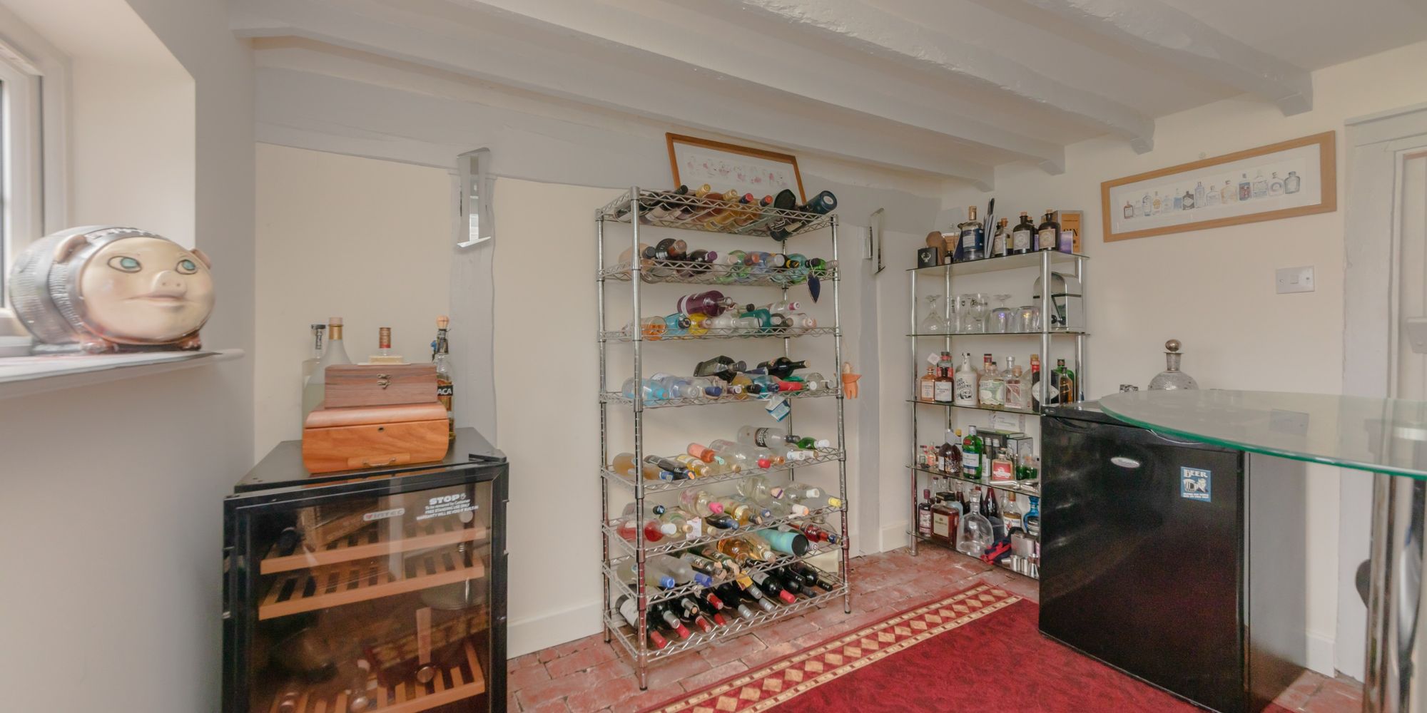 BAR ROOM- A characterful room with painted beams and exposed brick flooring, rear aspect window overlooking the vast garden