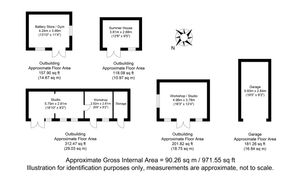 Arranged around the periphery of the garden there are a collection of outbuildings including a timber studio, insulated with power, equipped workshop, gym housing the solar equipment, summer house, chicken coup, pig arc, Tractor shed, polytunnel; also fruit trees.