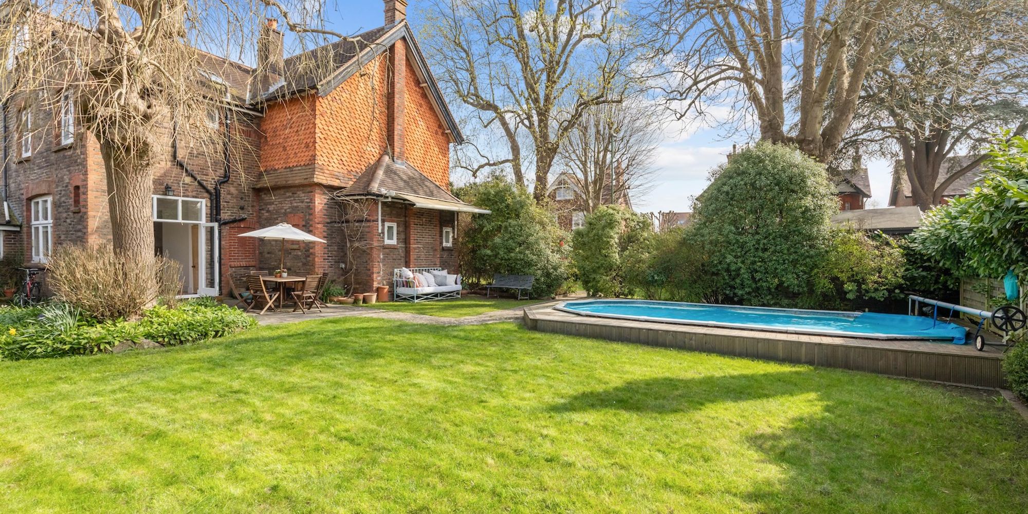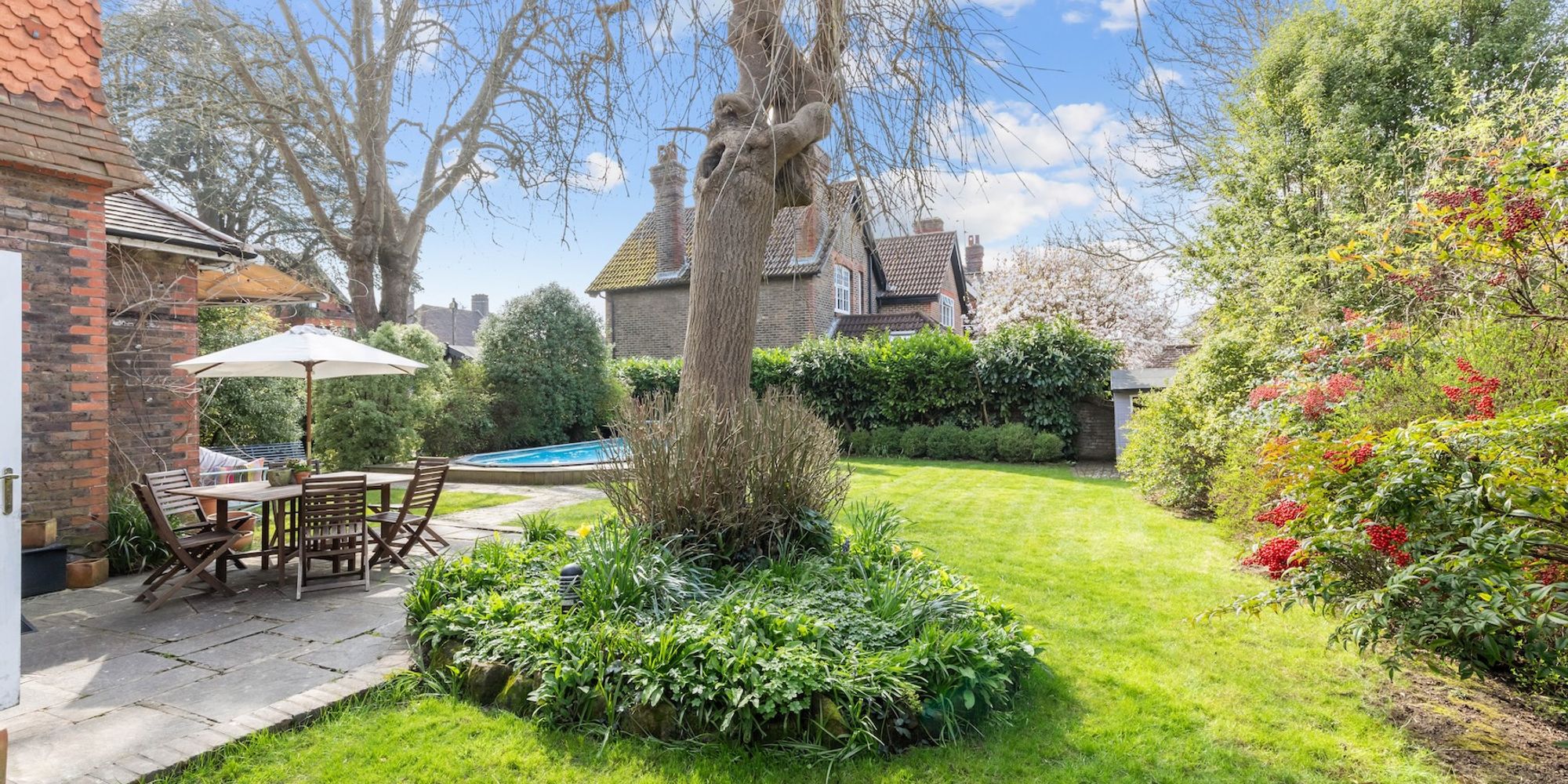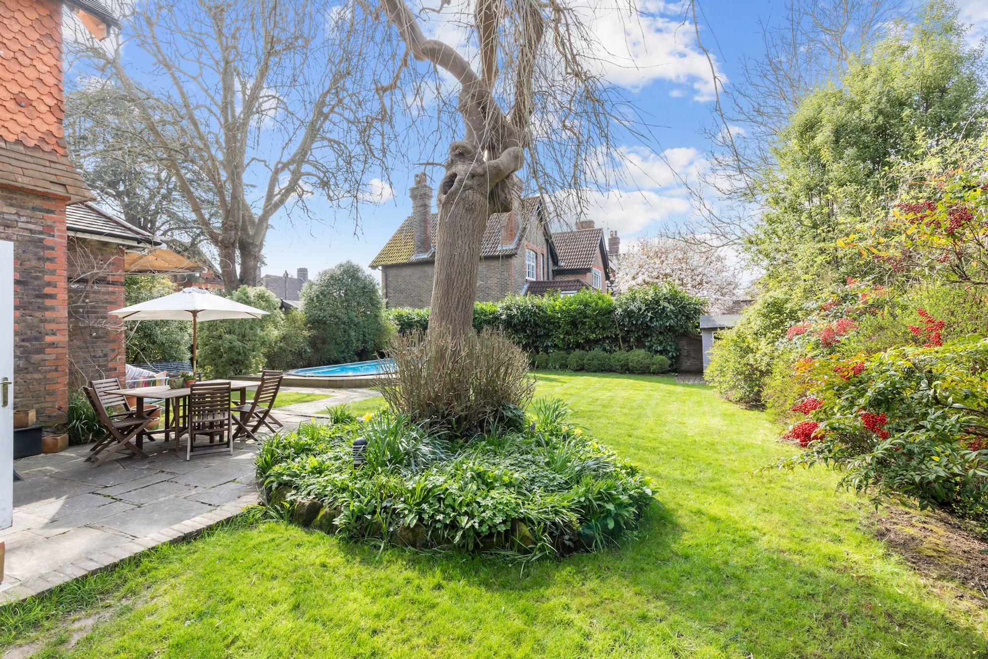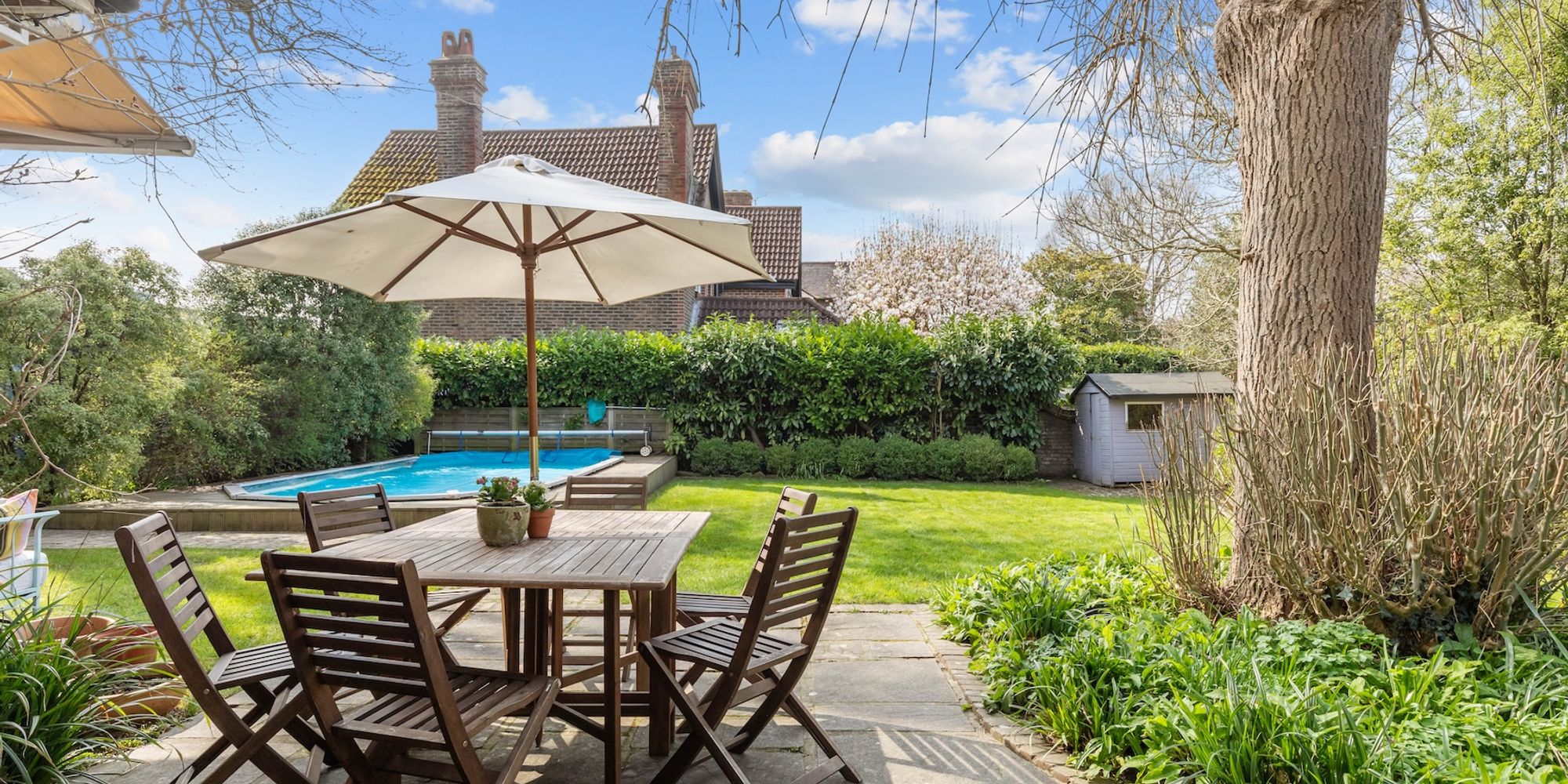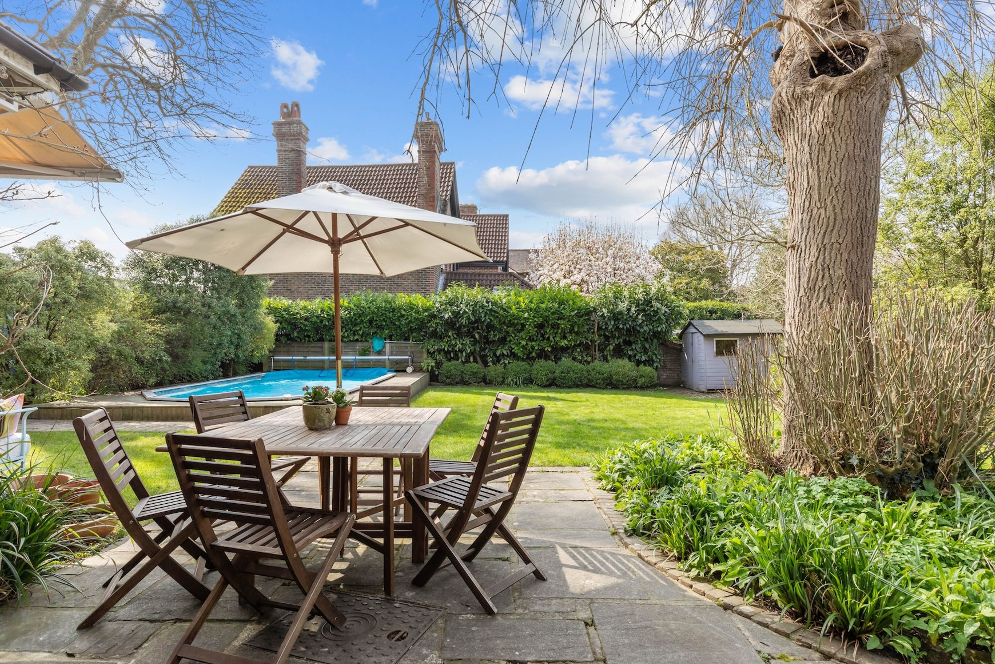 - 0.21 acre secluded corner plot garden and swimming pool
