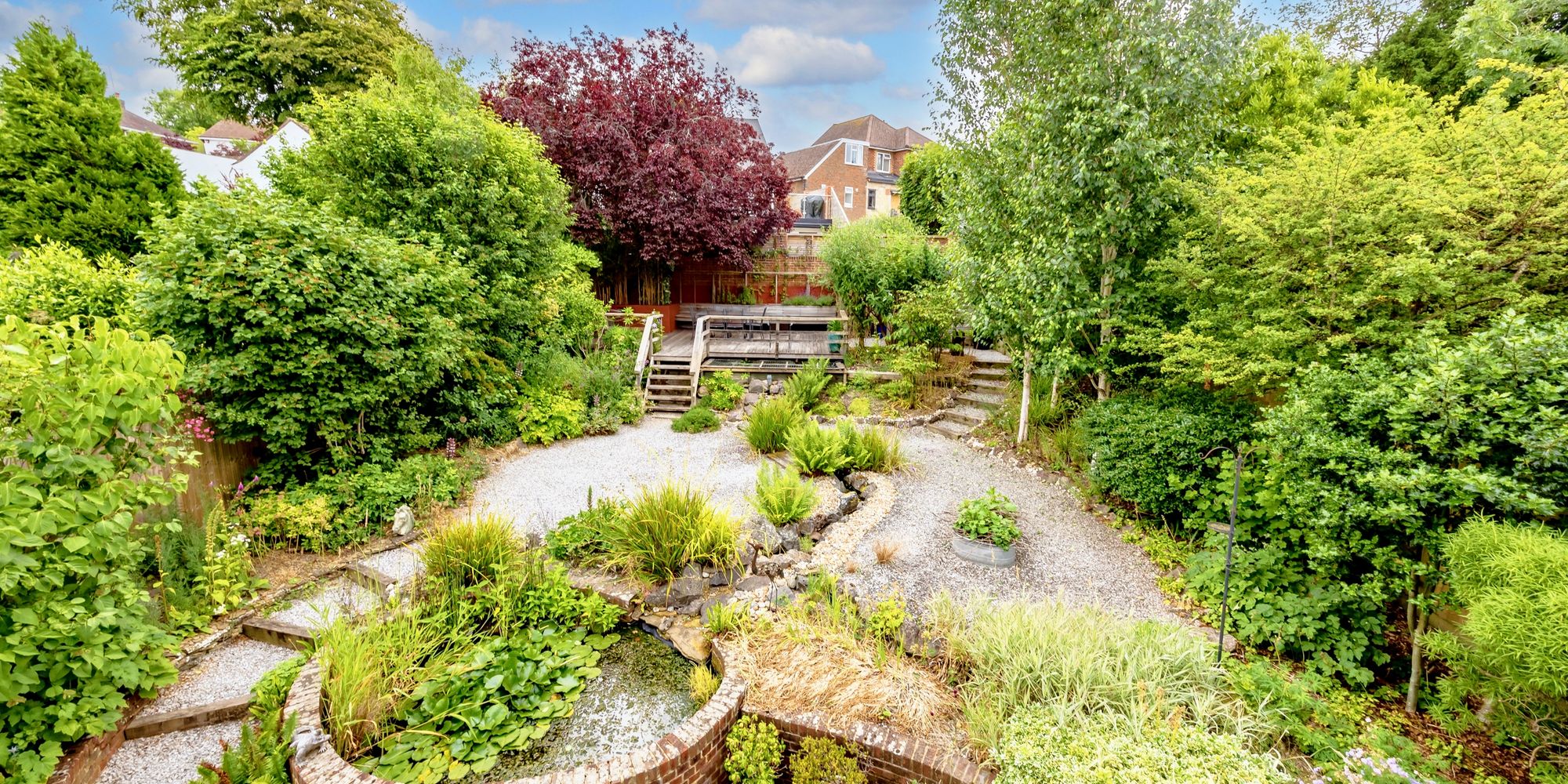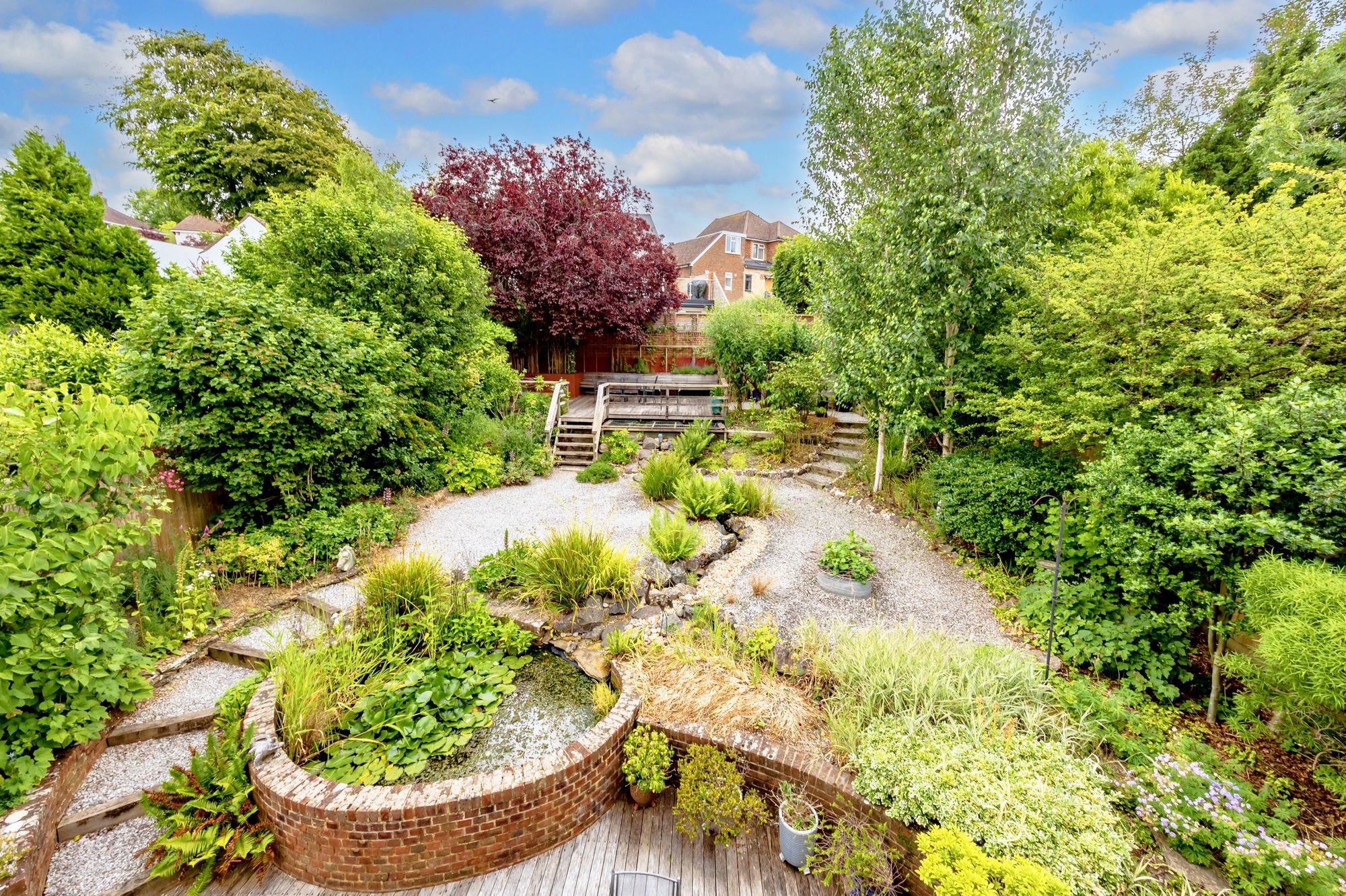 Moving outside, The rear garden is simply stunning having been lovingly designed and landscaped by our clients to make it a real feature of the property, including a stream, two ponds, and decking to the rear which is a perfect suntrap, it also features a large garden shed and access to the rear of the garage along with side access to the front of the home.
