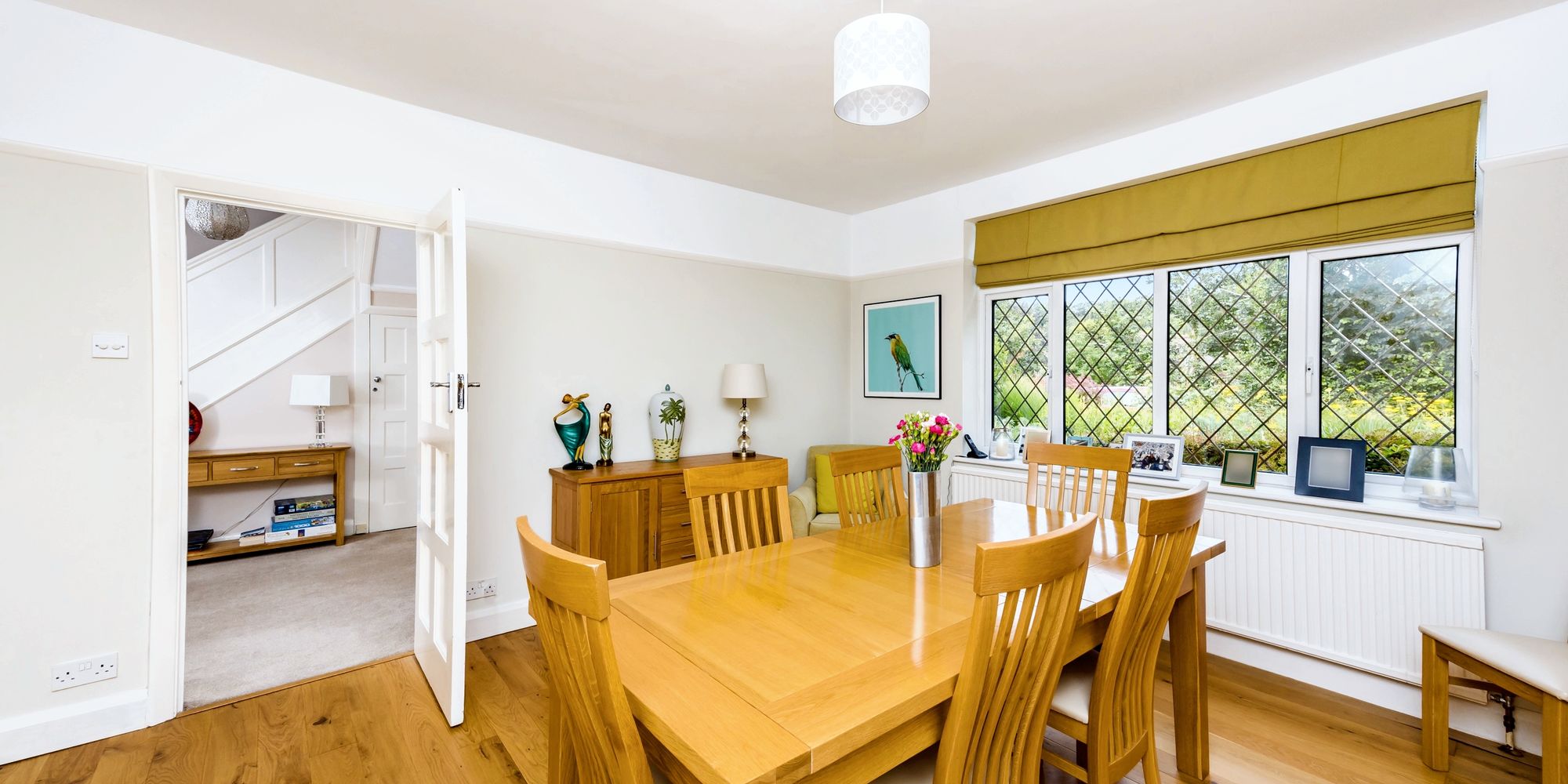 The uber modern kitchen is situated to the rear of the home and has ample preparation space, storage cupboards and integrated appliances, a door takes you outside where you find a handy utility room with space for further white goods, the formal dining room is a wonderful space to entertain guests with space for a large dining table and window overlooking the front aspect.