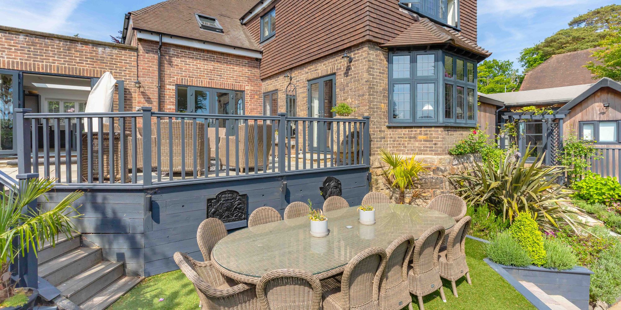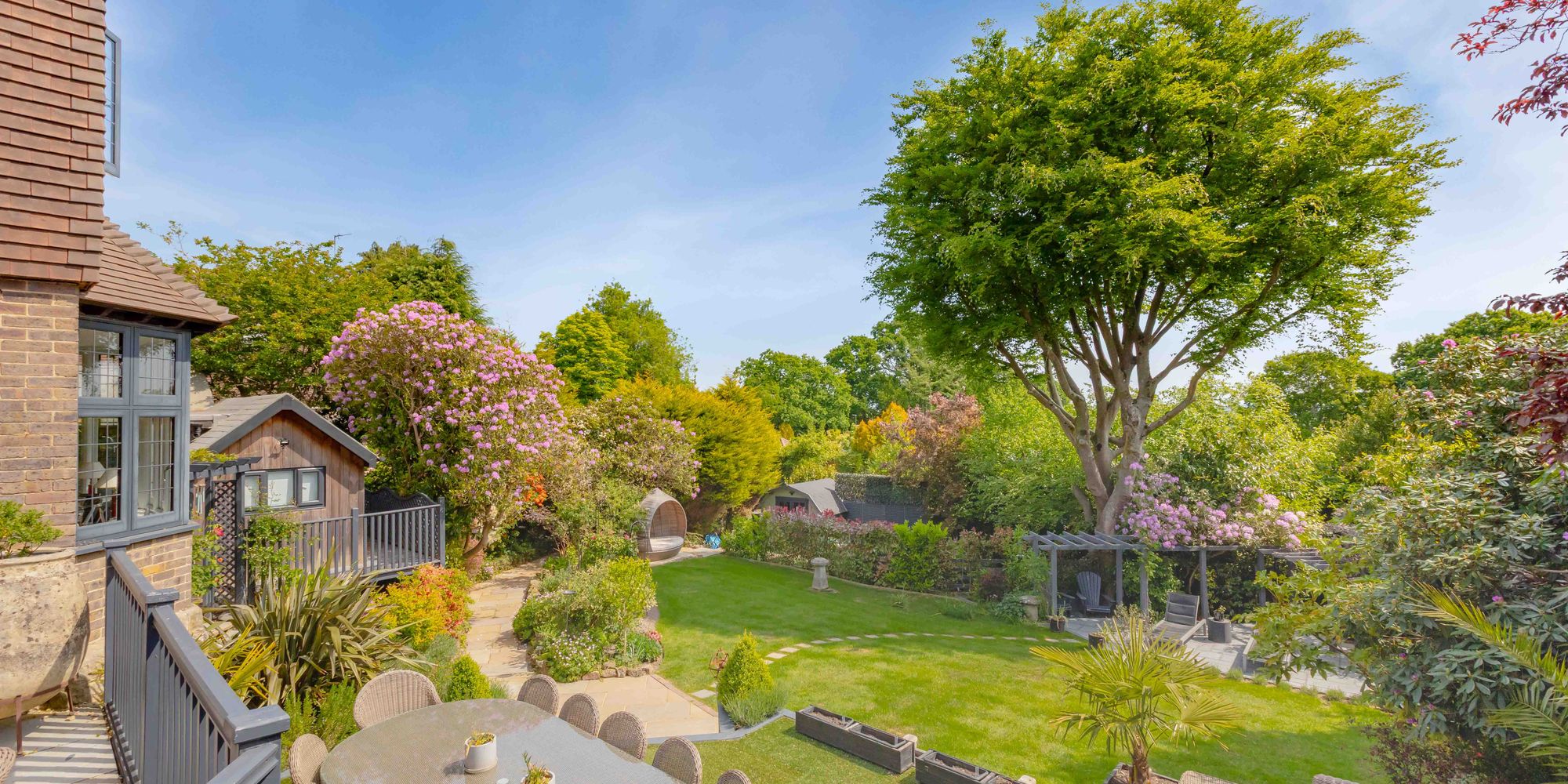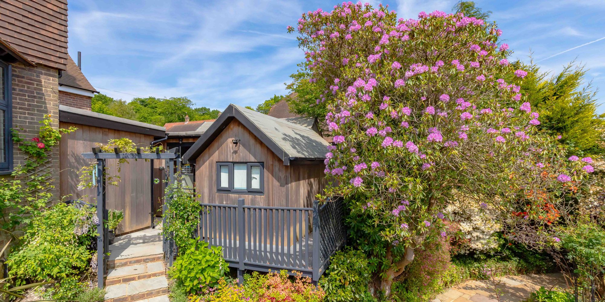 - Beautifully landscaped rear gardens offering total seclusion with several outbuildings/home ofiice and studio