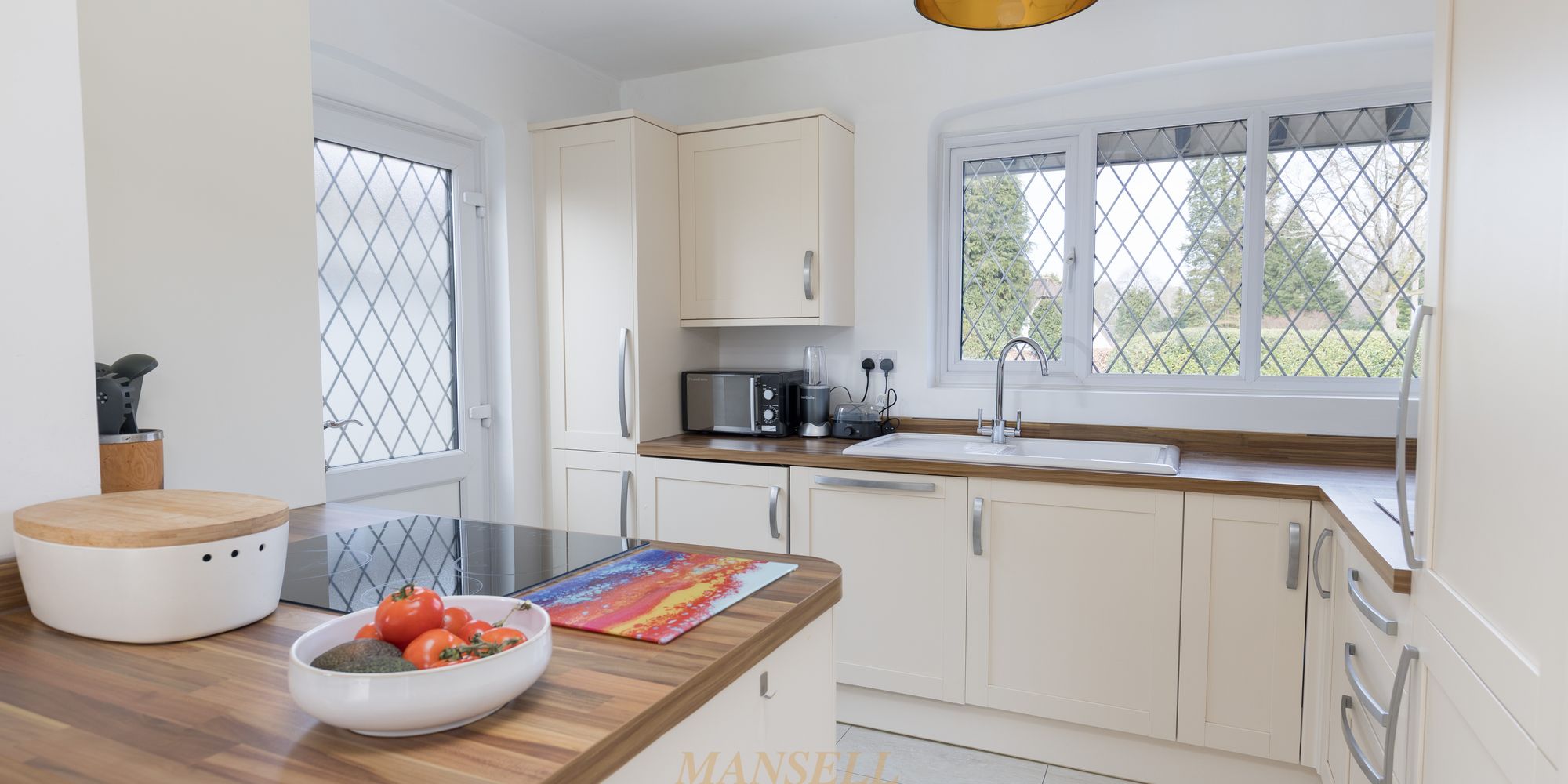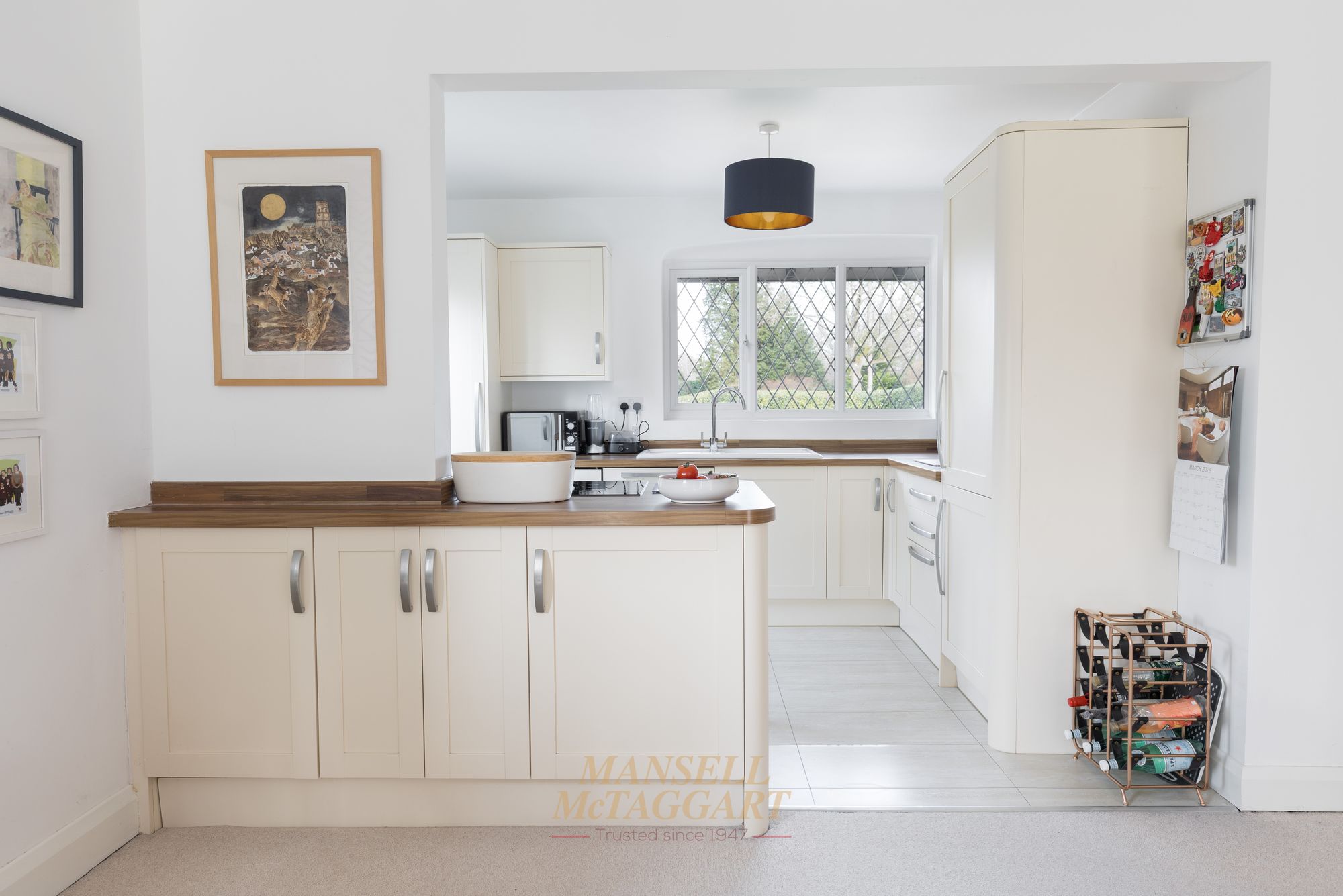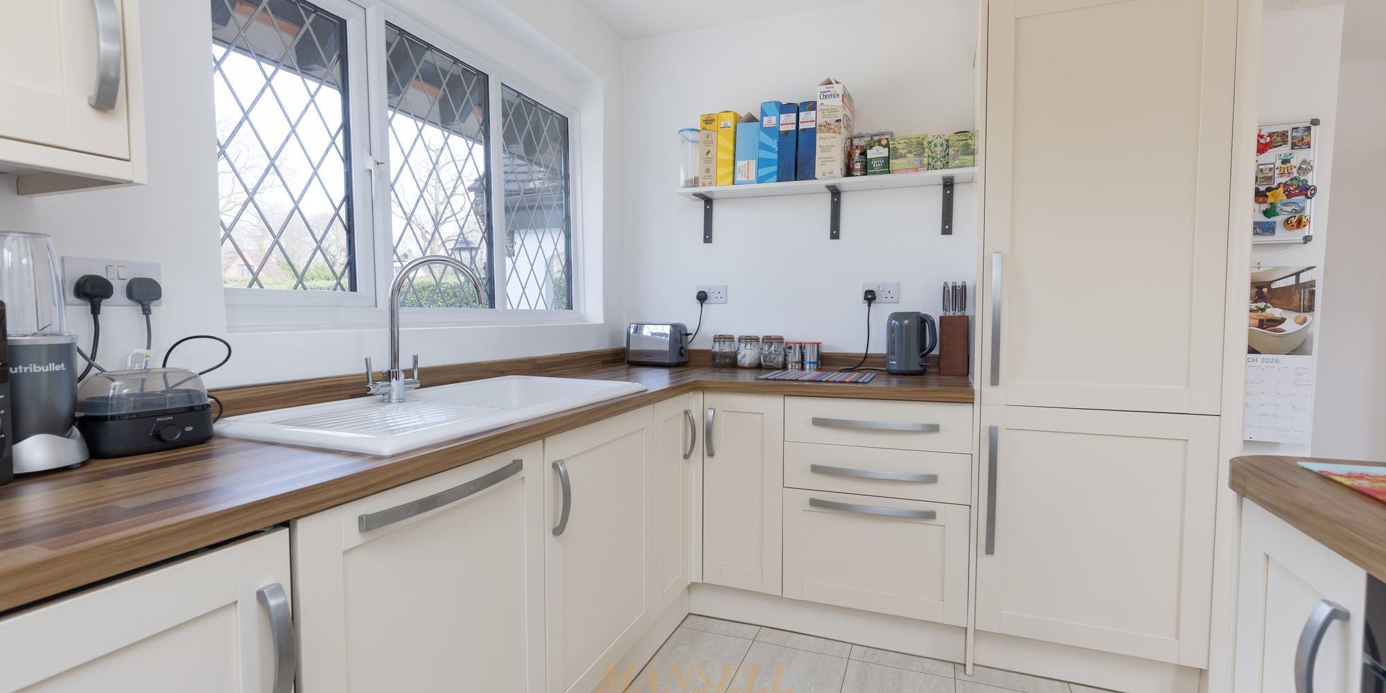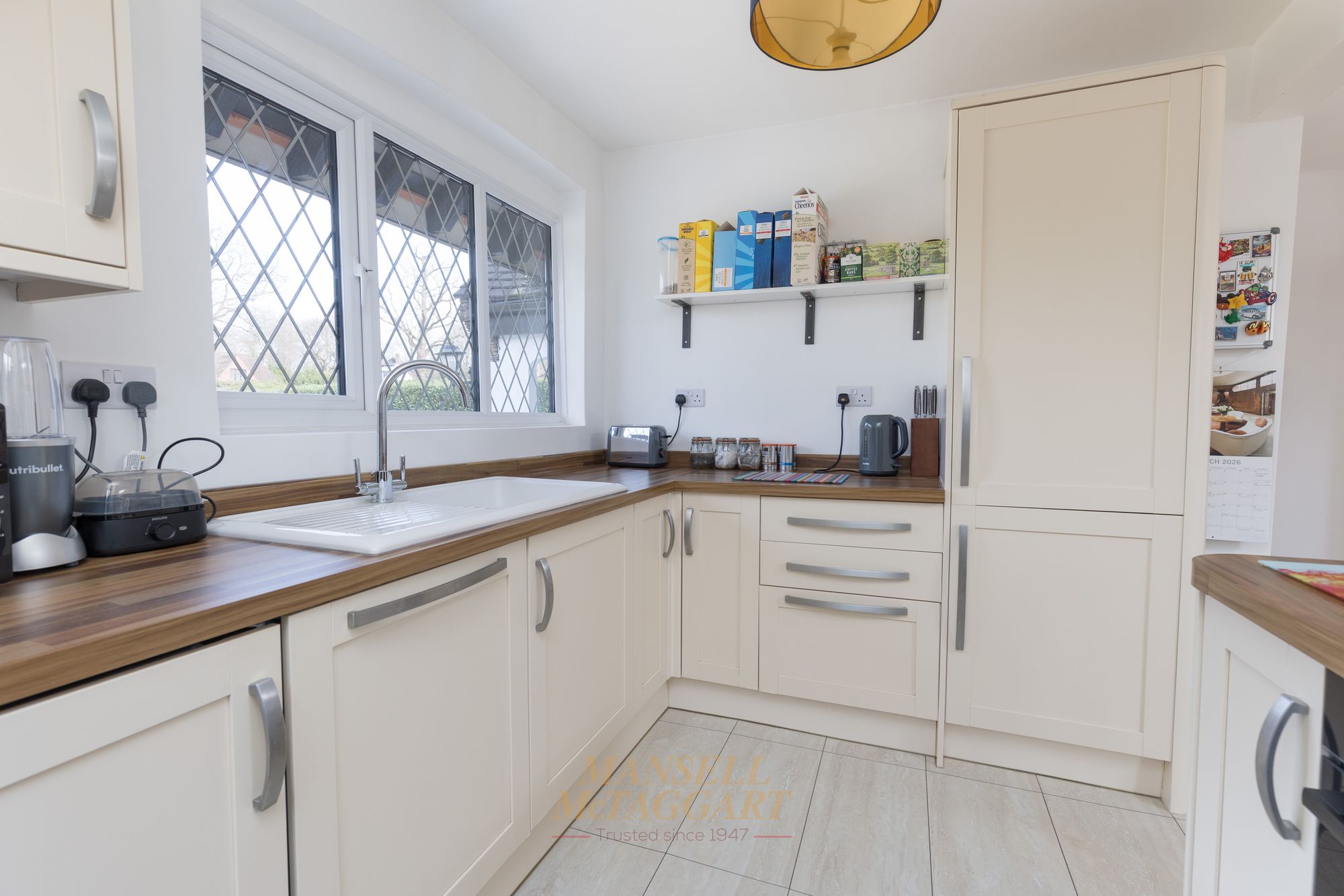 To the right of the house is a kitchen with a view over the front garden, which has been fitted with a range of wall and base units incorporating cupboards and drawers with plenty of work surfaces available. The kitchen benefits from integrated appliances and has a door leading to the side garden.