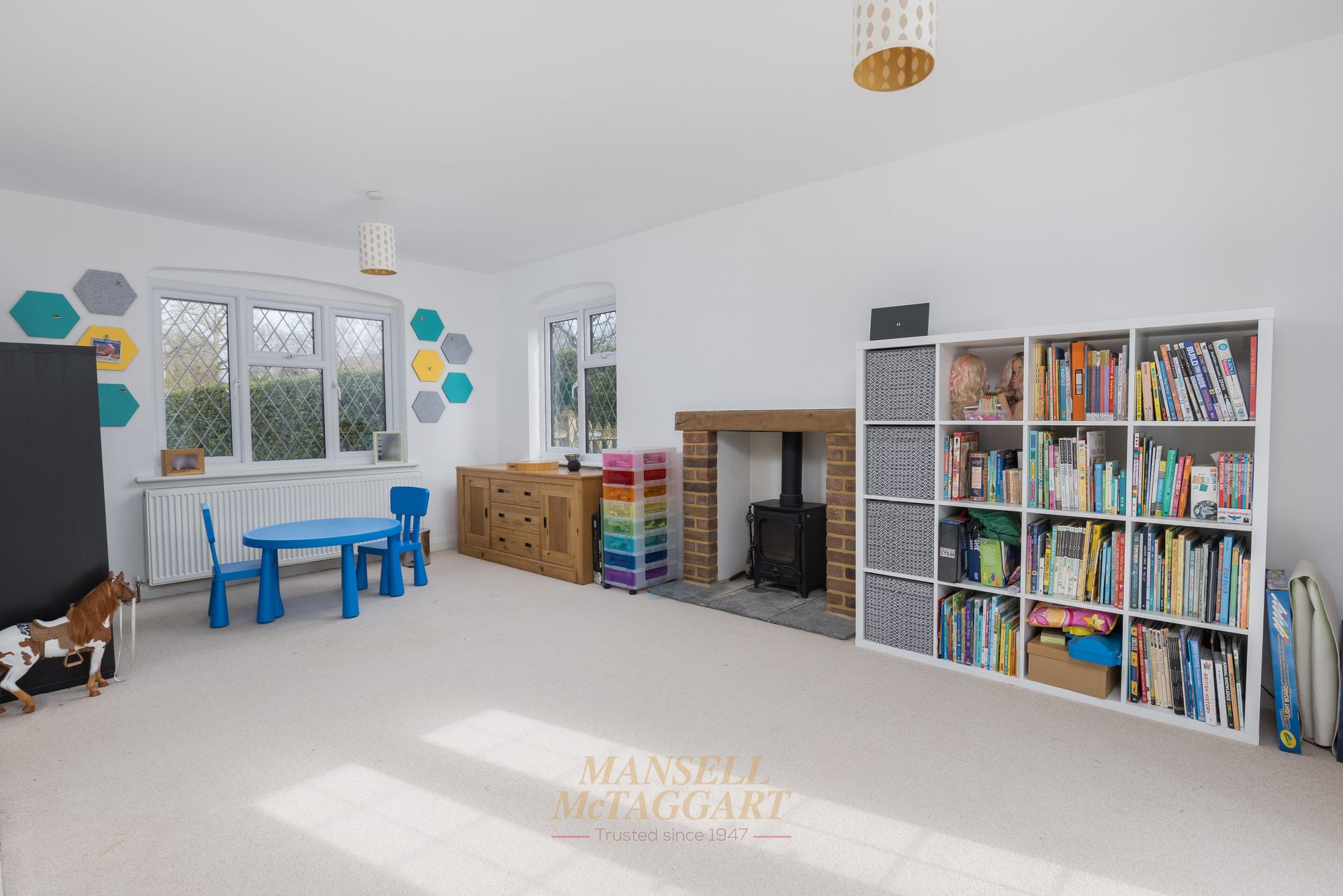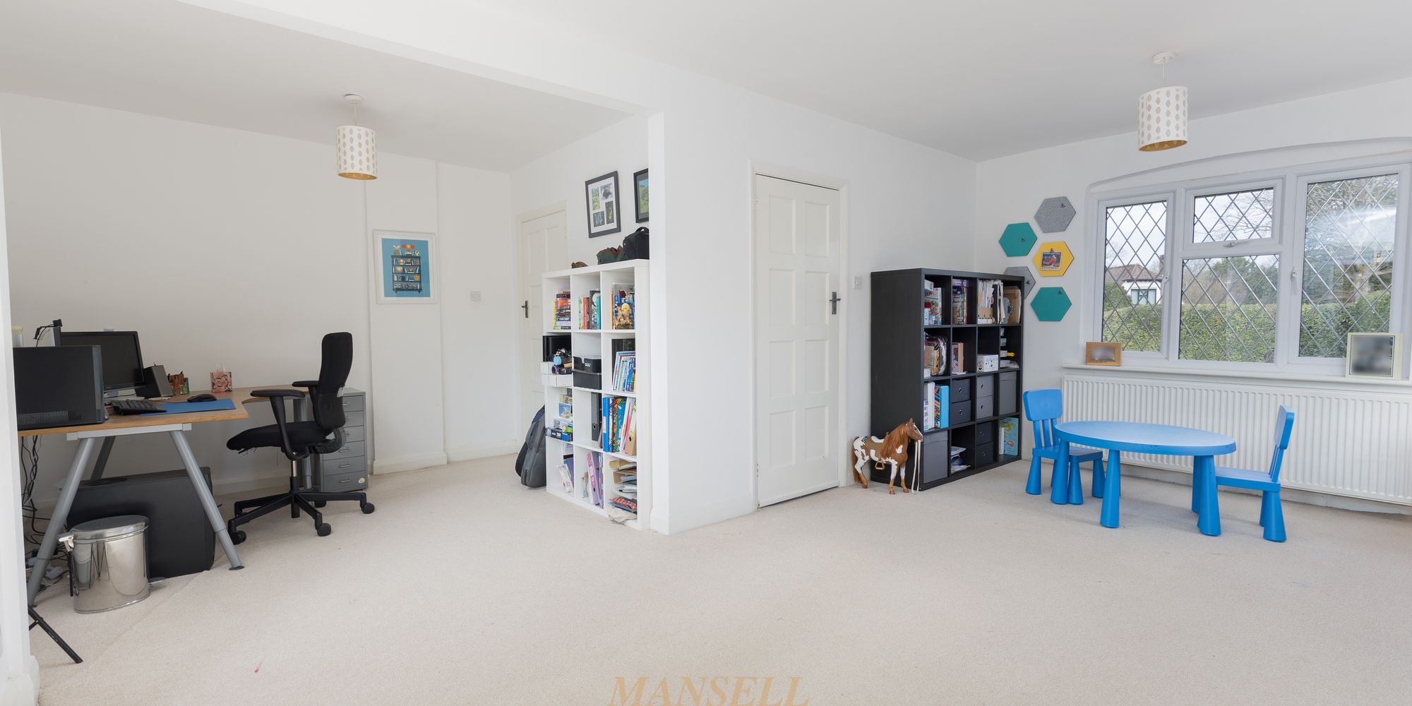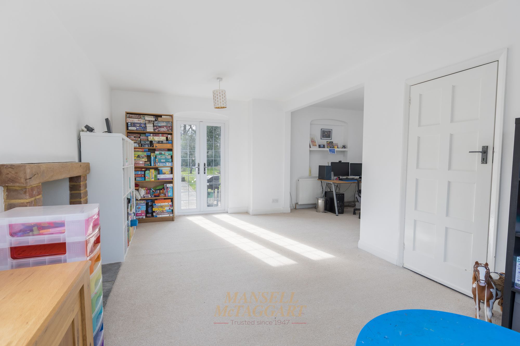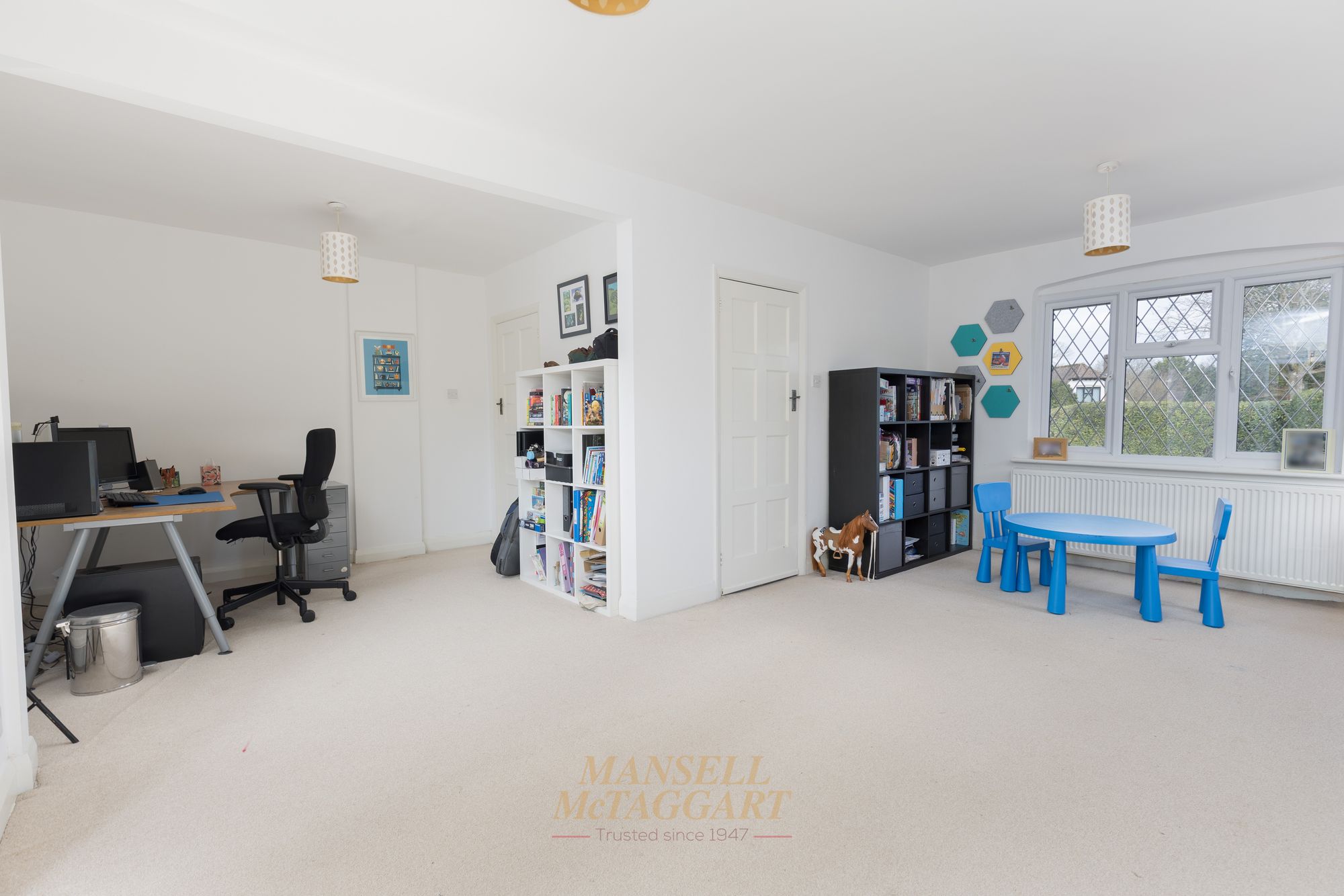 On your left is a triple aspect family room with windows to front and side along with French doors providing direct access to the rear garden. This room opens up nicely to a designated study/office, and whilst this is currently open plan, you could separate it to create a more private space should you wish to do so.