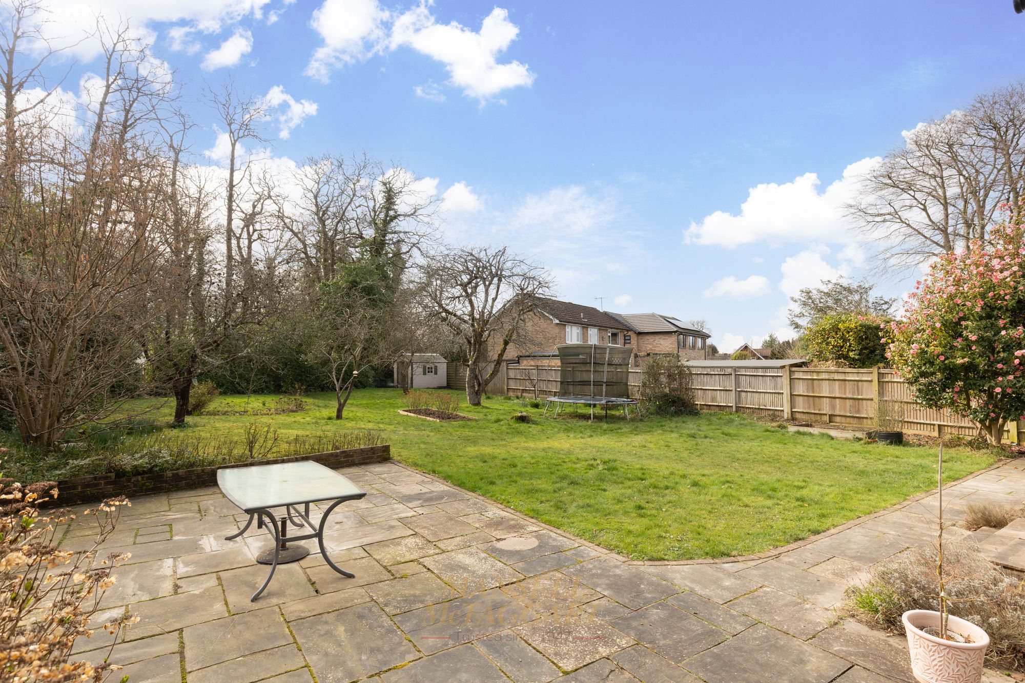 The southerly facing rear garden is a fantastic space with the majority being laid to a levelled lawn with a substantial patio abutting the foot of the house. The whole area is enclosed by wooden panel fencing and mature trees/hedging providing further privacy. There is access to Crawley Lane via a back gate at the rear of the garden.